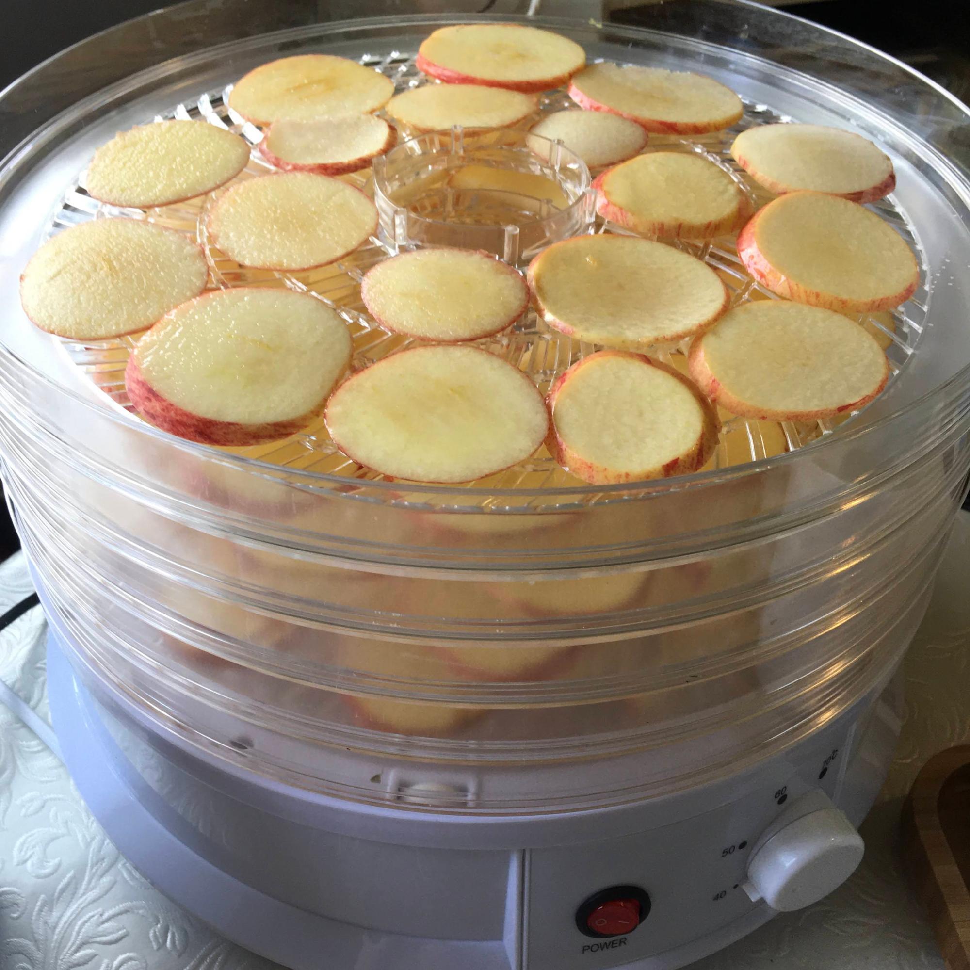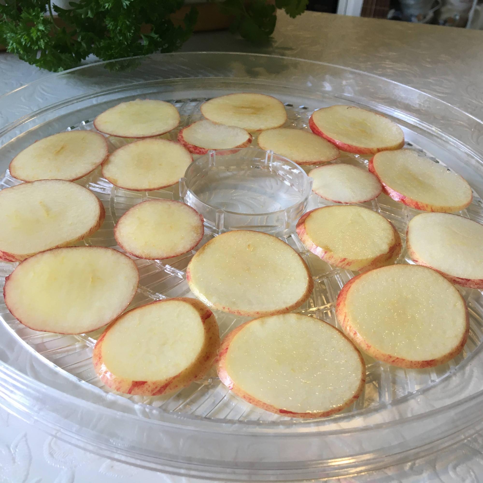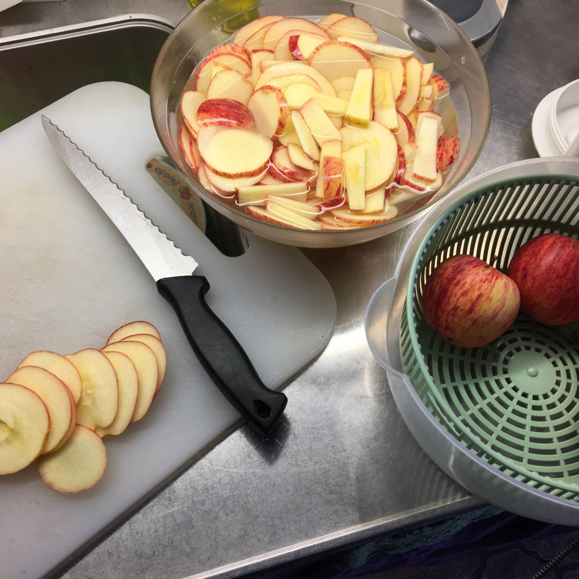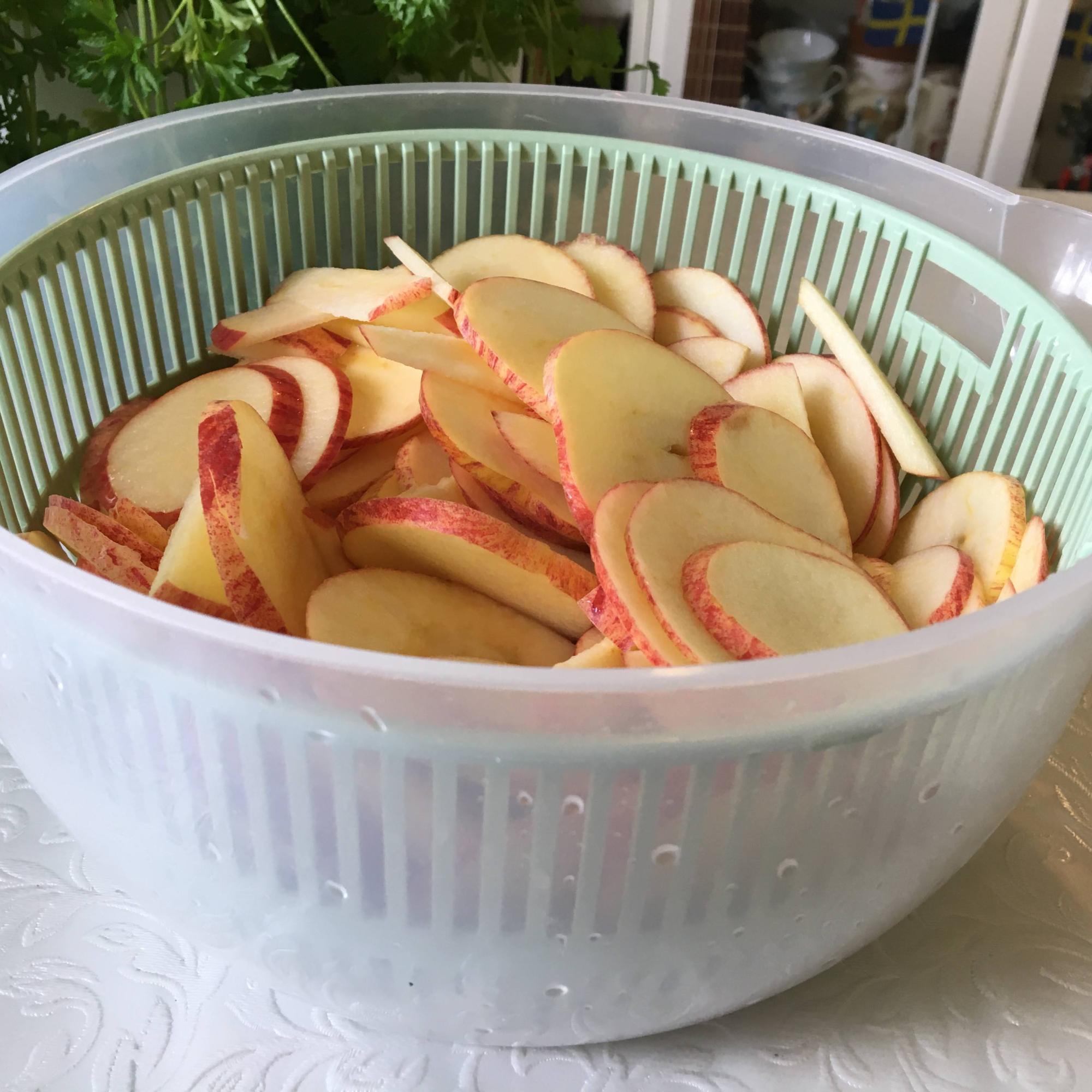 I made different kinds of apple-snacks. Some I cut to rings and some I just cut in small pieces that can be added into a breakfast bowl with yoghurt and muesli.
