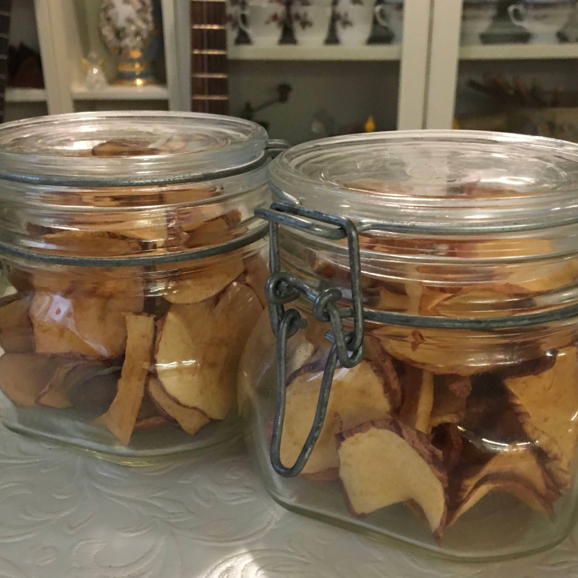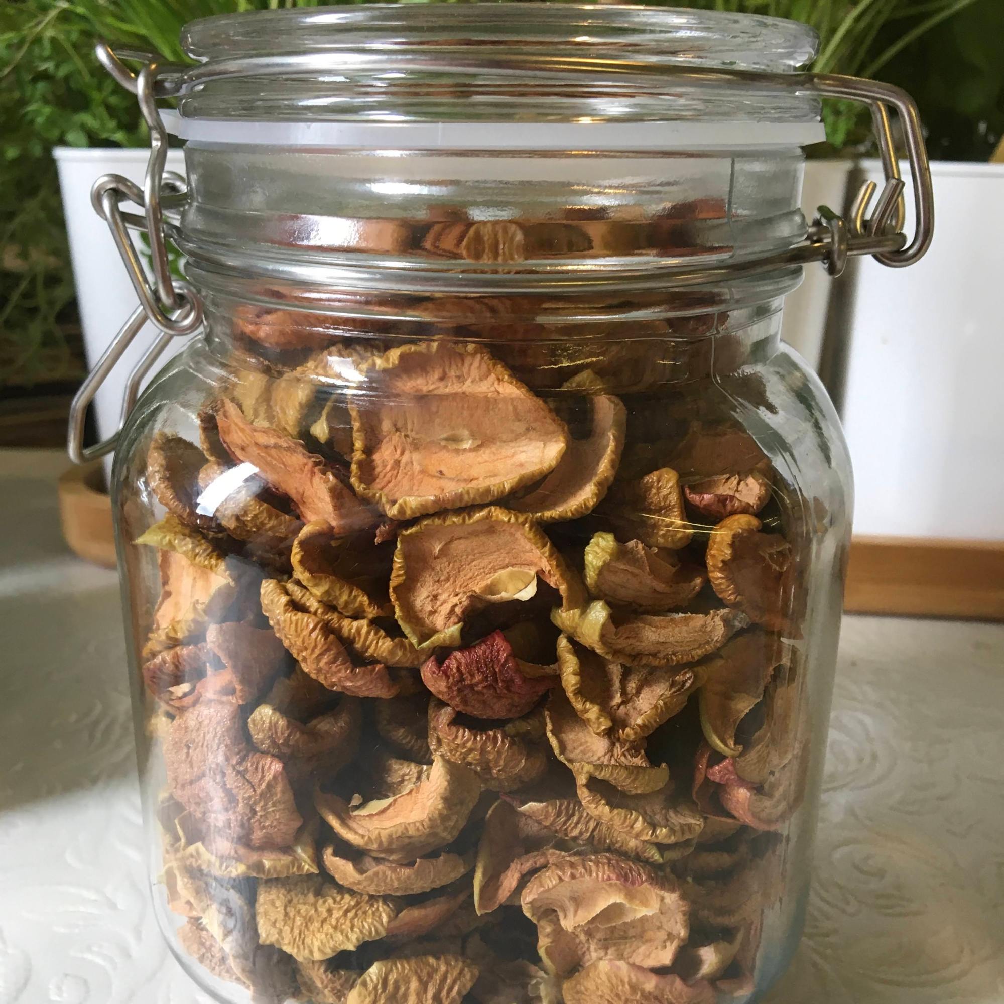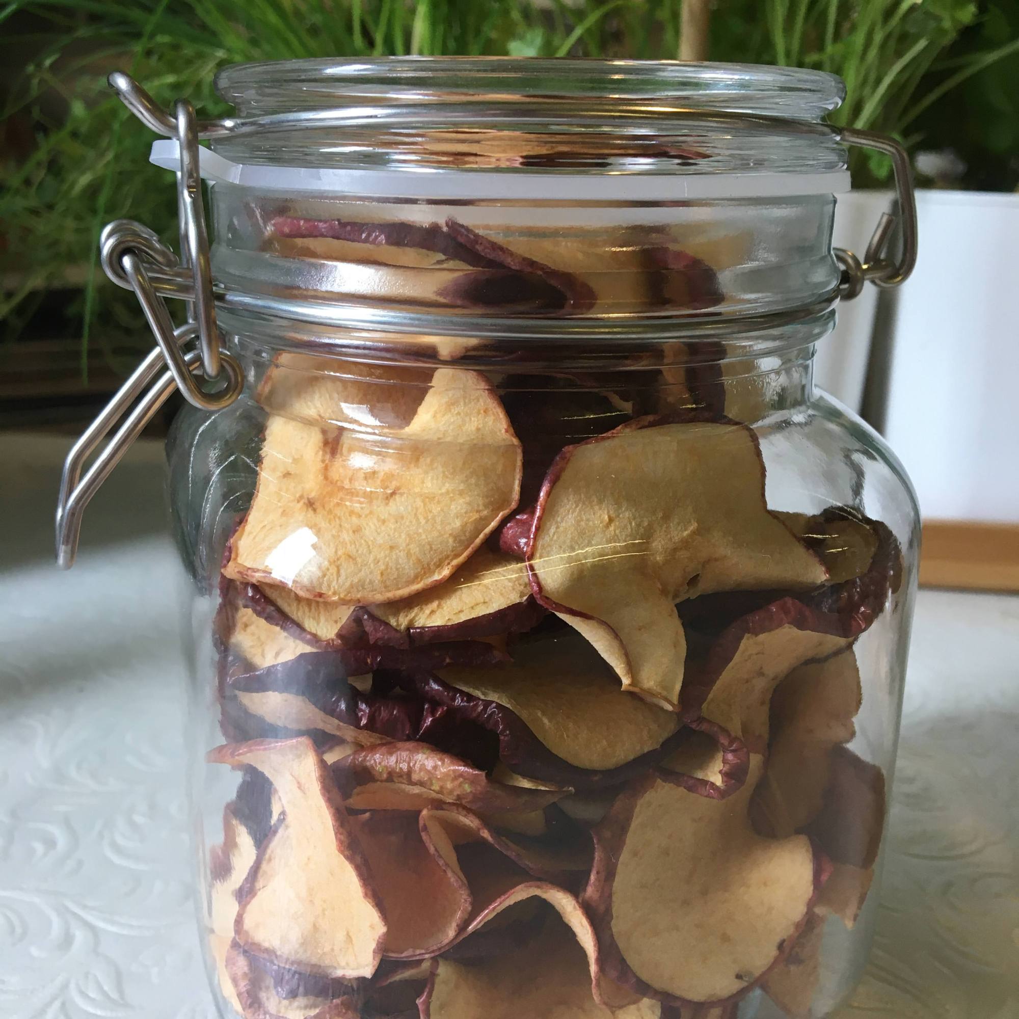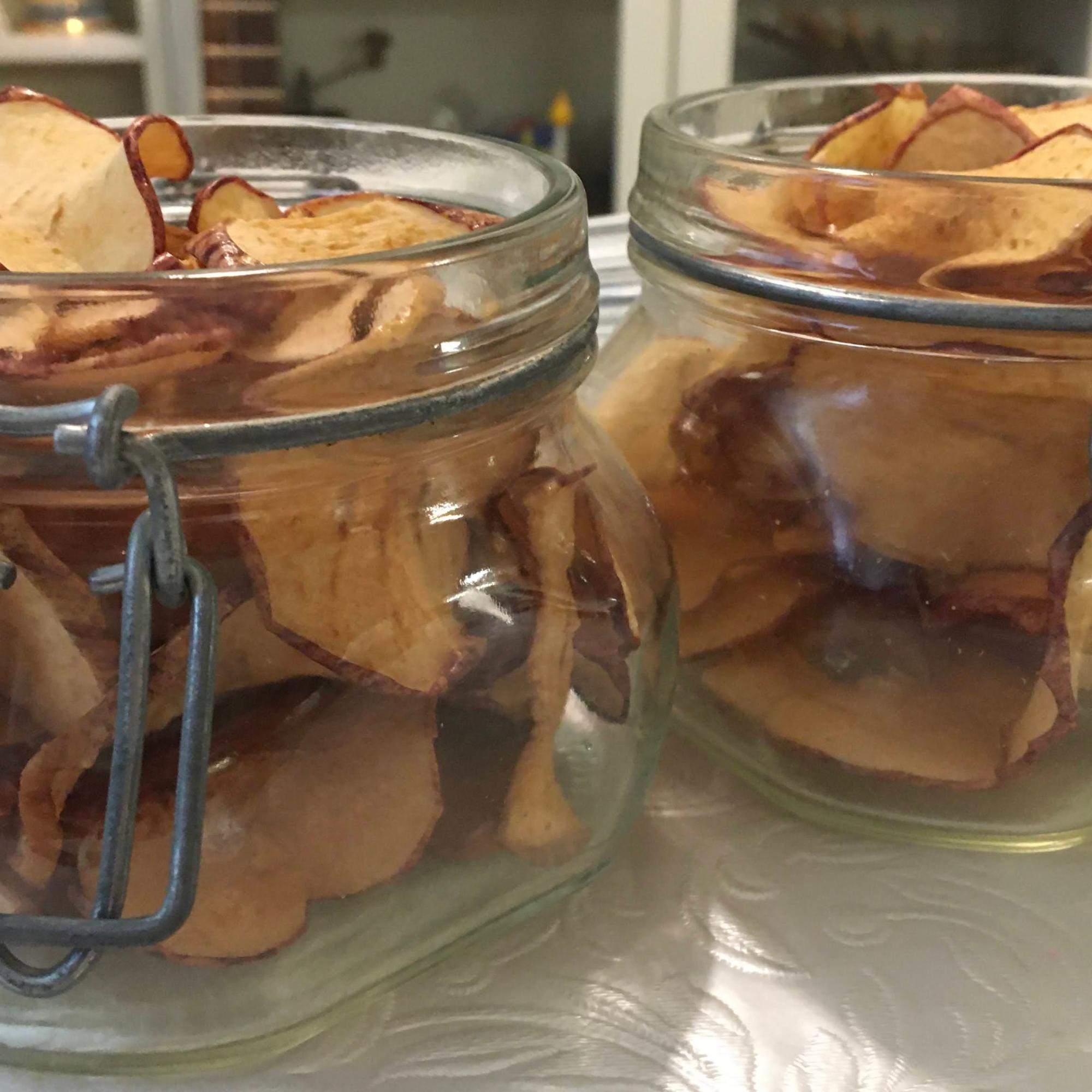 The apple snacks can be stored in a glass-jar or a plastic container.