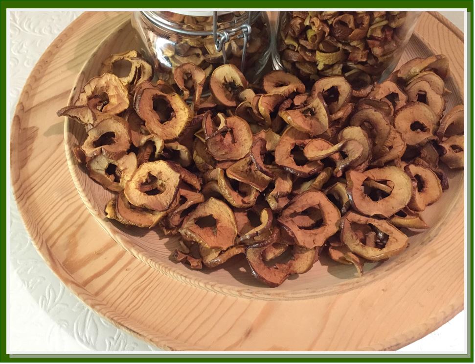 I made different kinds of apple-snacks. Some I cut to rings and some I just cut in small pieces that can be added into a breakfast bowl with yoghurt and muesli.