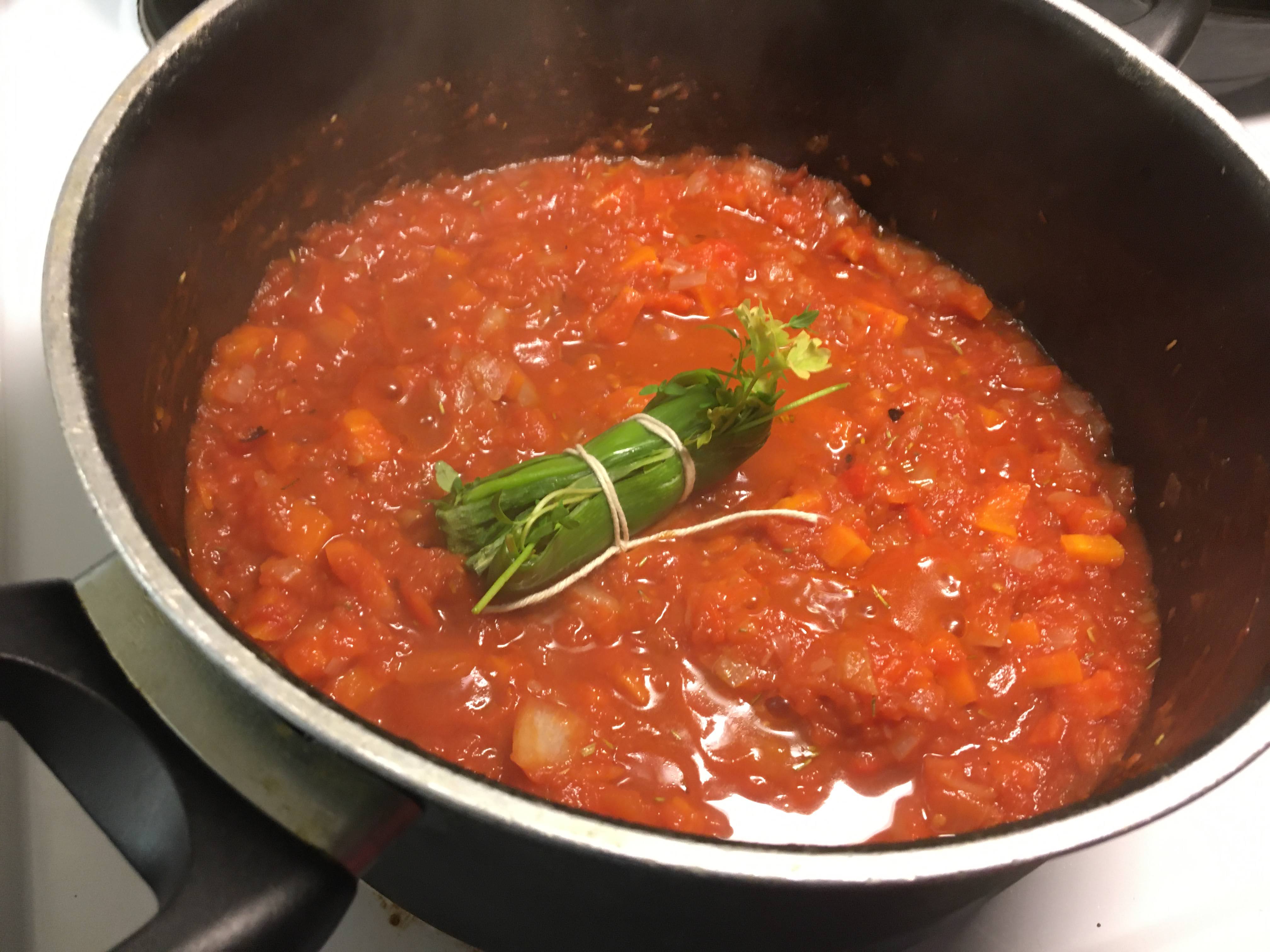 If you want to make it really authentic make a Bouquet garni with the herbs before adding in the sauce and zimmering.