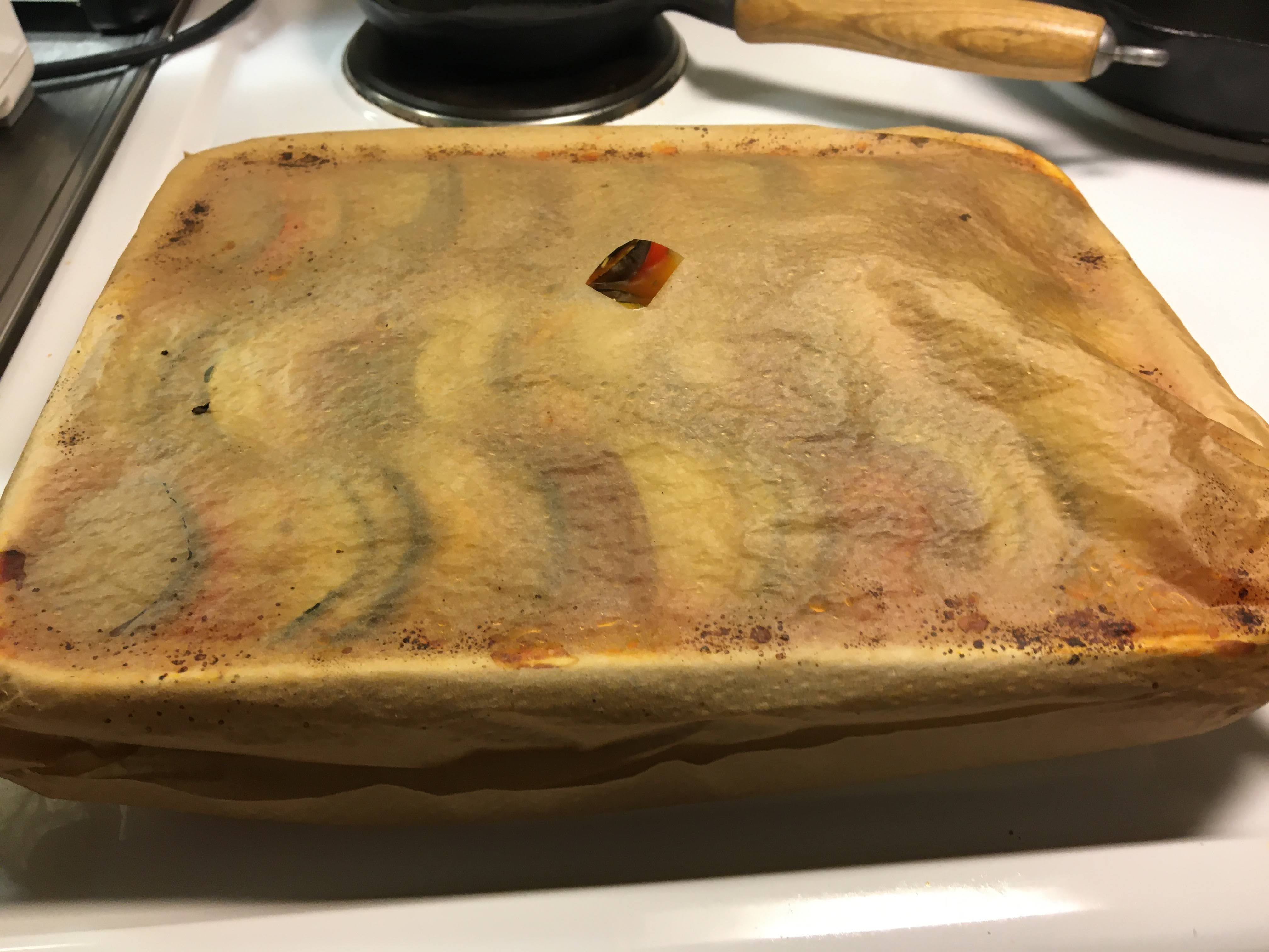 Cover the pan with foil or parchment paper (make a small hole in the middle for steam to go out and bake for 40 minutes. Uncover, than bake for another 20 minutes, until the vegetables are softened.