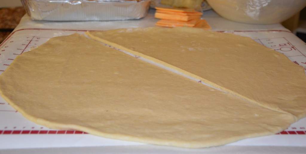 Place the wedges a bit on top of each other all around to make a circle to place the filling on.
