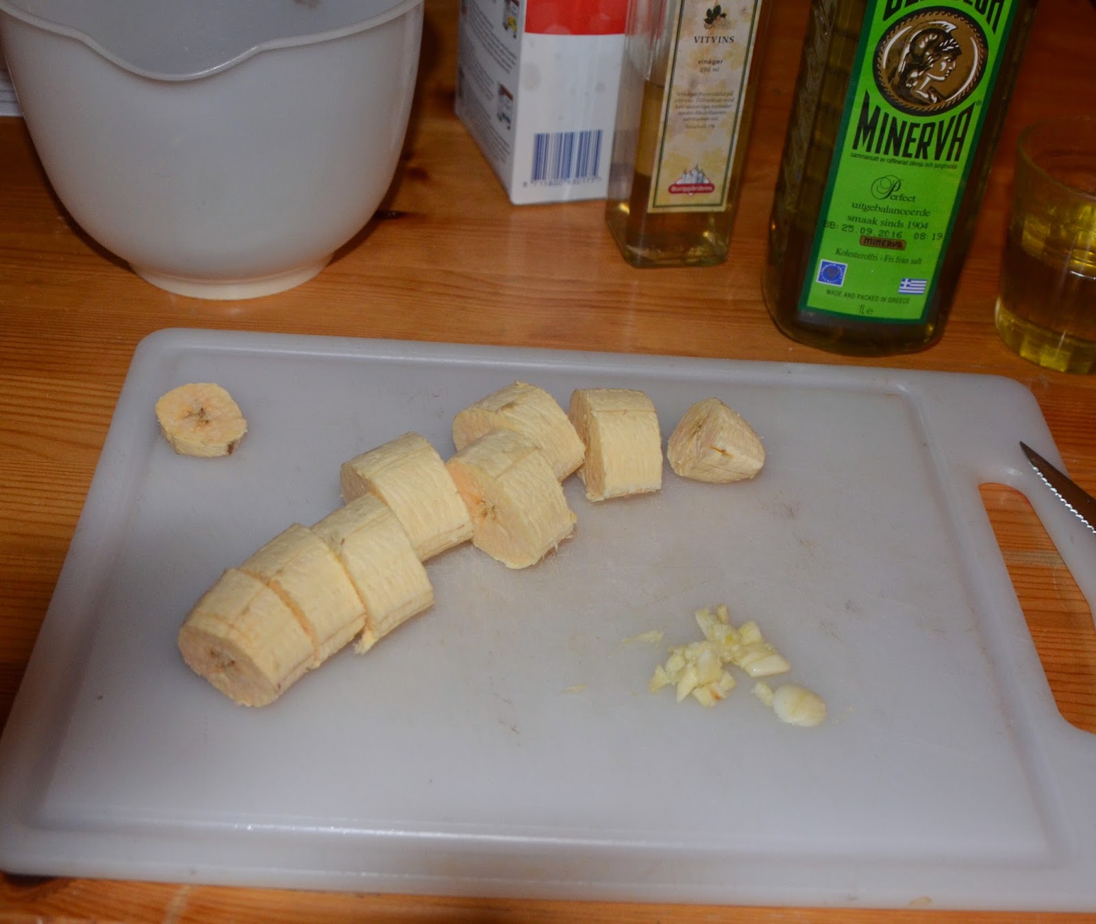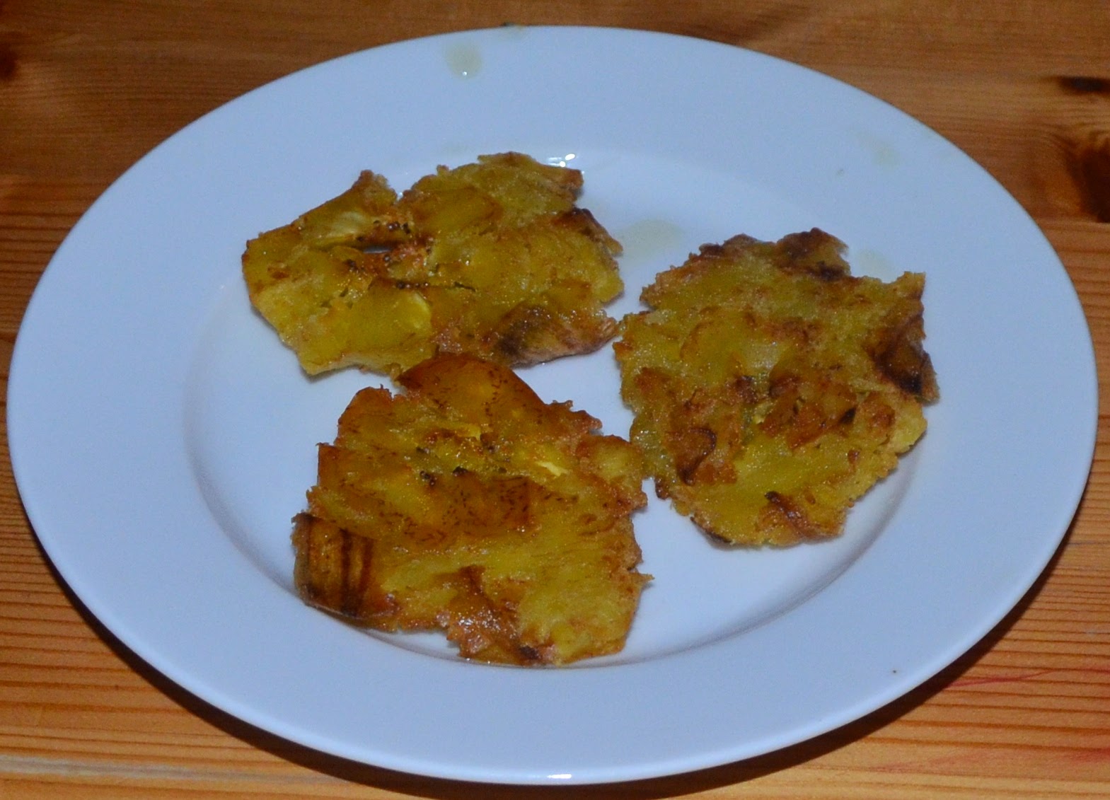 I didn´t have a plantain press so I just used a plate to press the plantains flat.