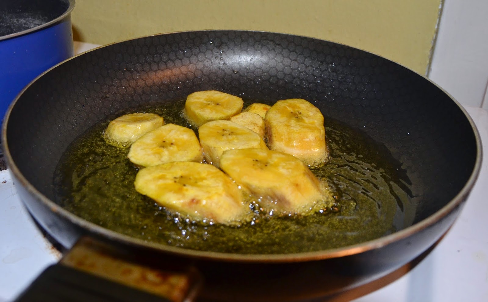 Fried plantains are usually served with other fried meats such as pork, chicken and goat. Here is a basic recipe.