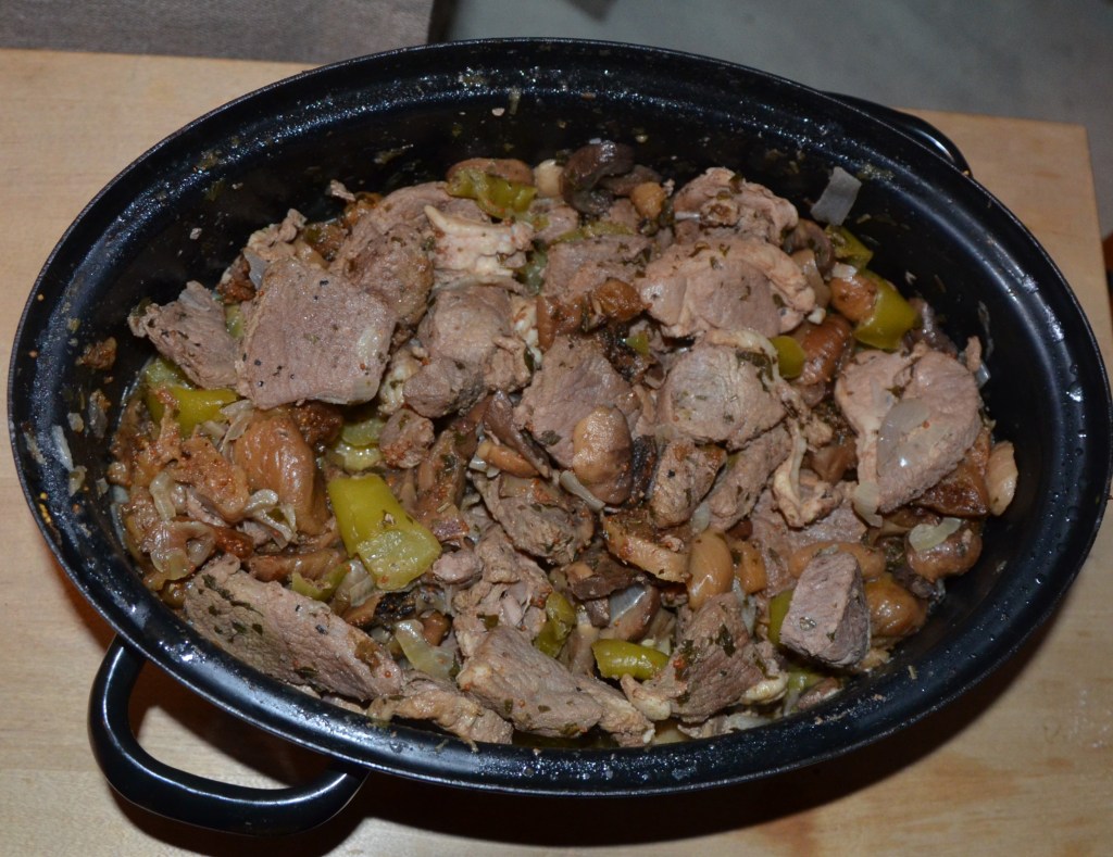Bake in the oven in a clay pot with lid for 40 minutes at 225 Celsius Degrees