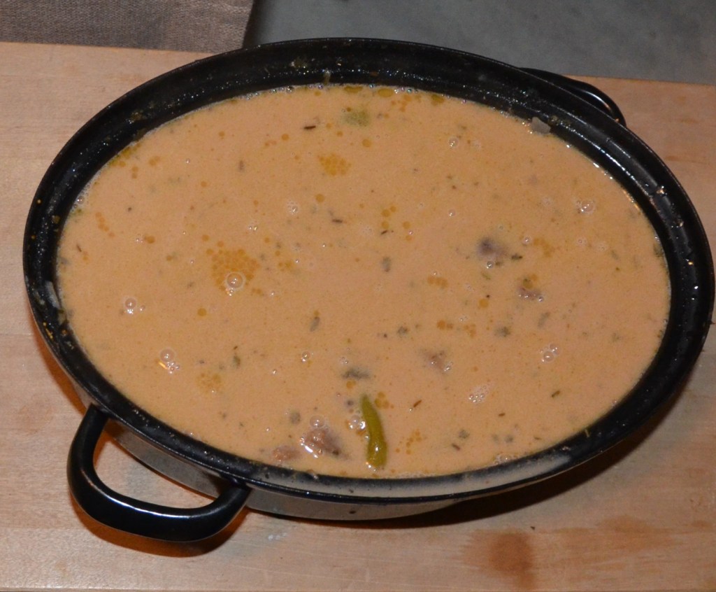 Pour the sauce over the lamb stew and let it cook a few minutes before serving. Serve with potato and vegetables baked in a claypot.