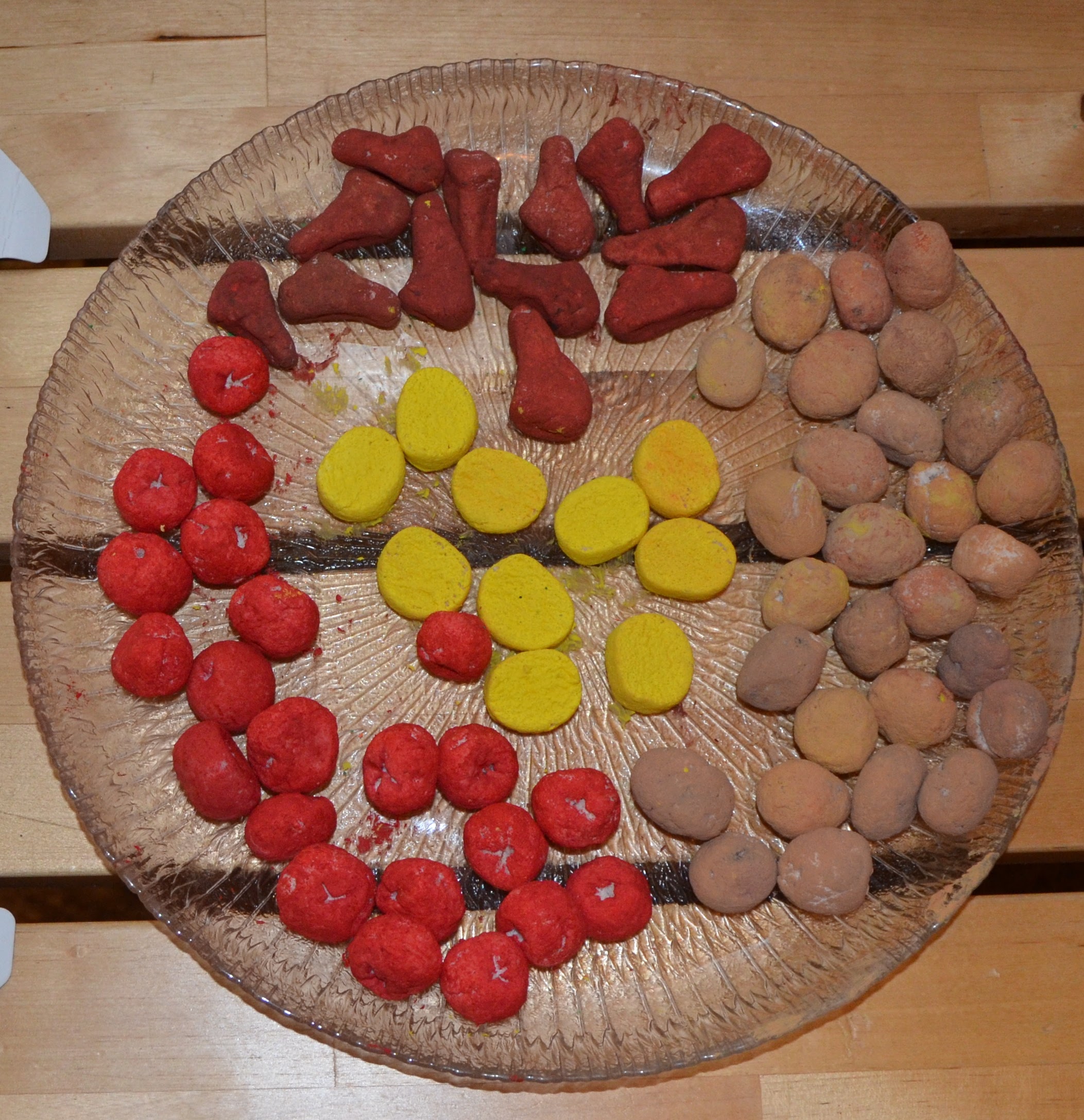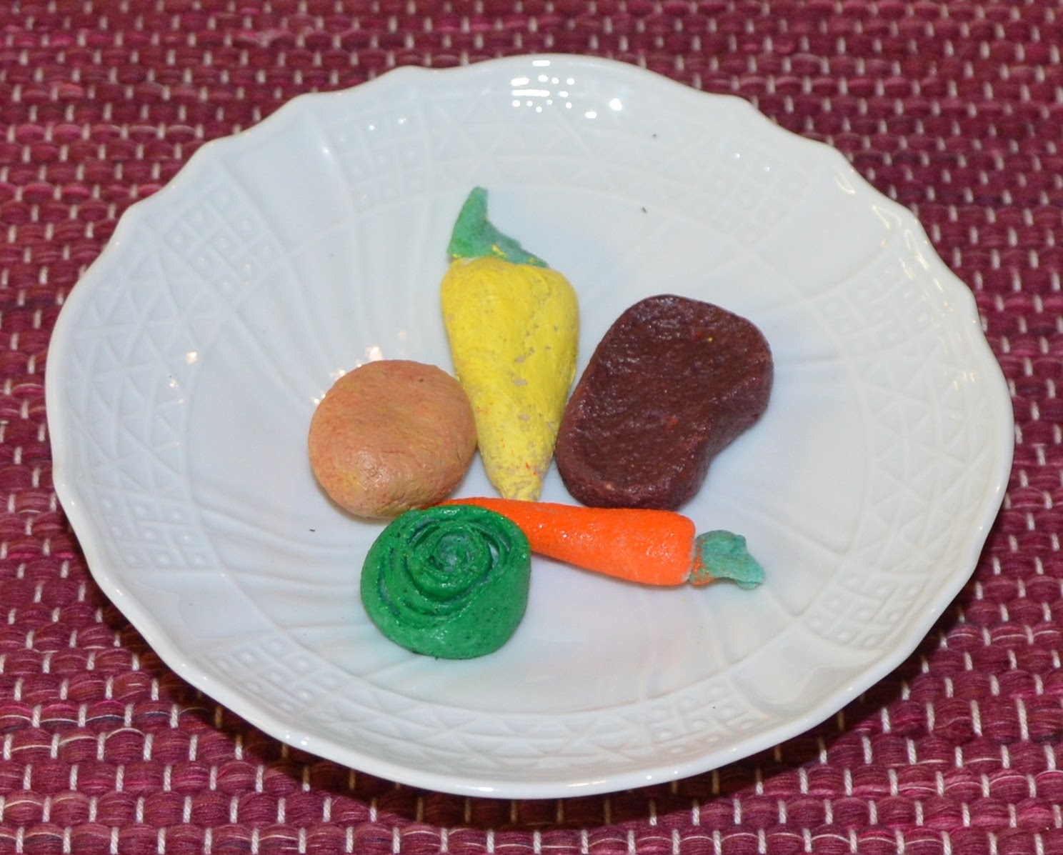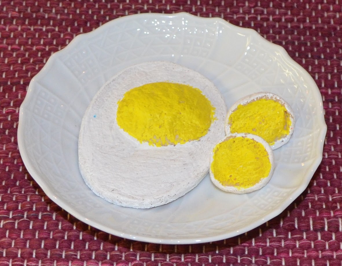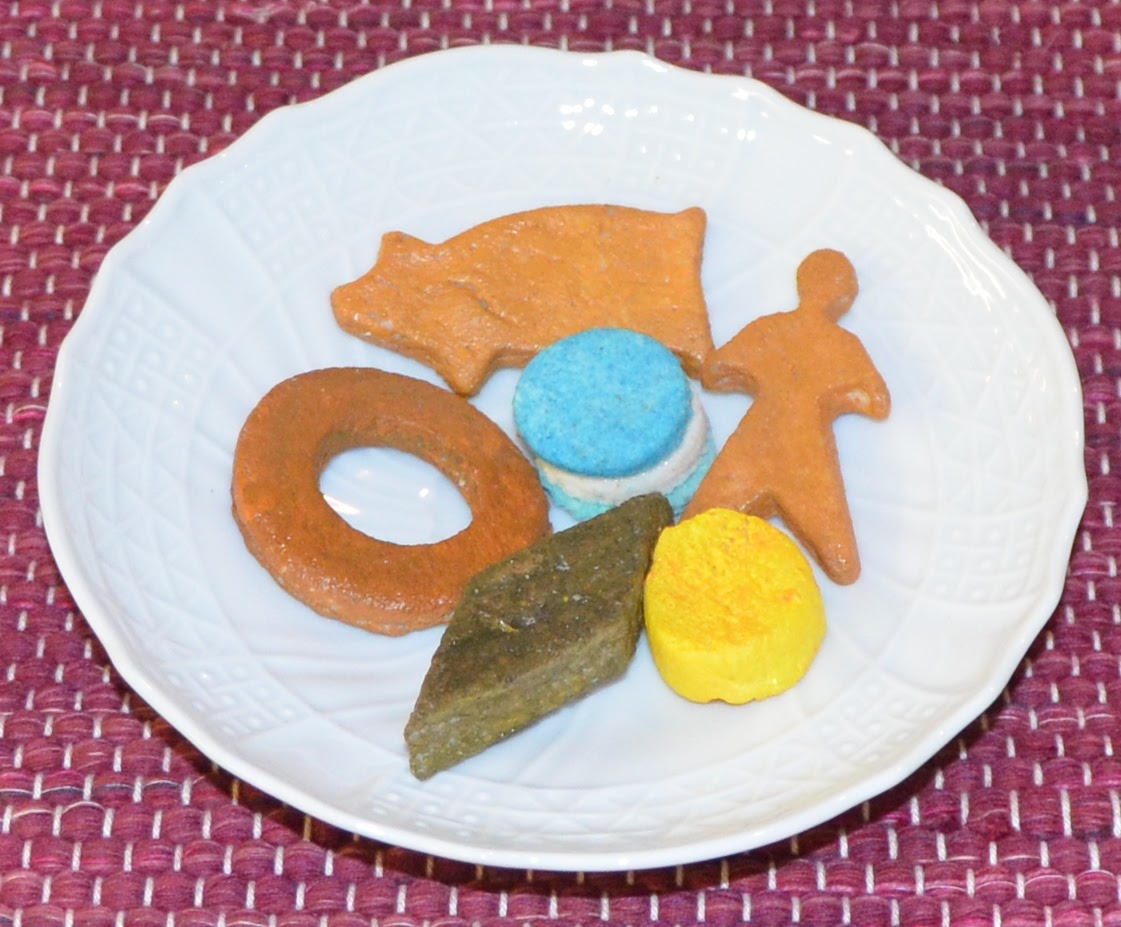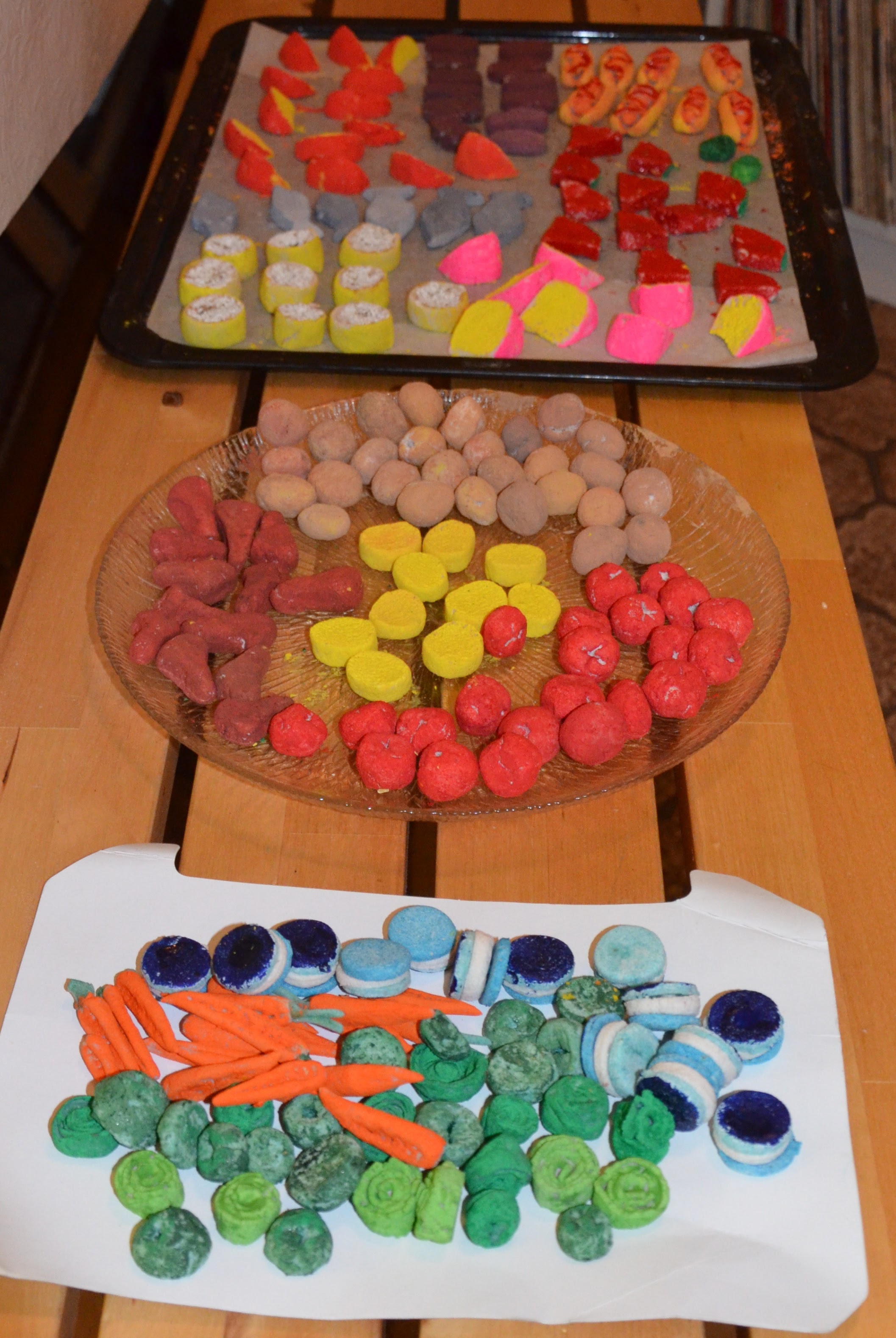 If you want to dry the figures you can put them in the oven and bake them on 100 degrees Celsius for at least 2-3 hours. The figures are then dry. Keep them spread out to dry more in room temperature for at least one day. For my play food I have been drying them in room temperature for weeks since they are all different thickness and I wanted to make sure they are really dry all the way through.