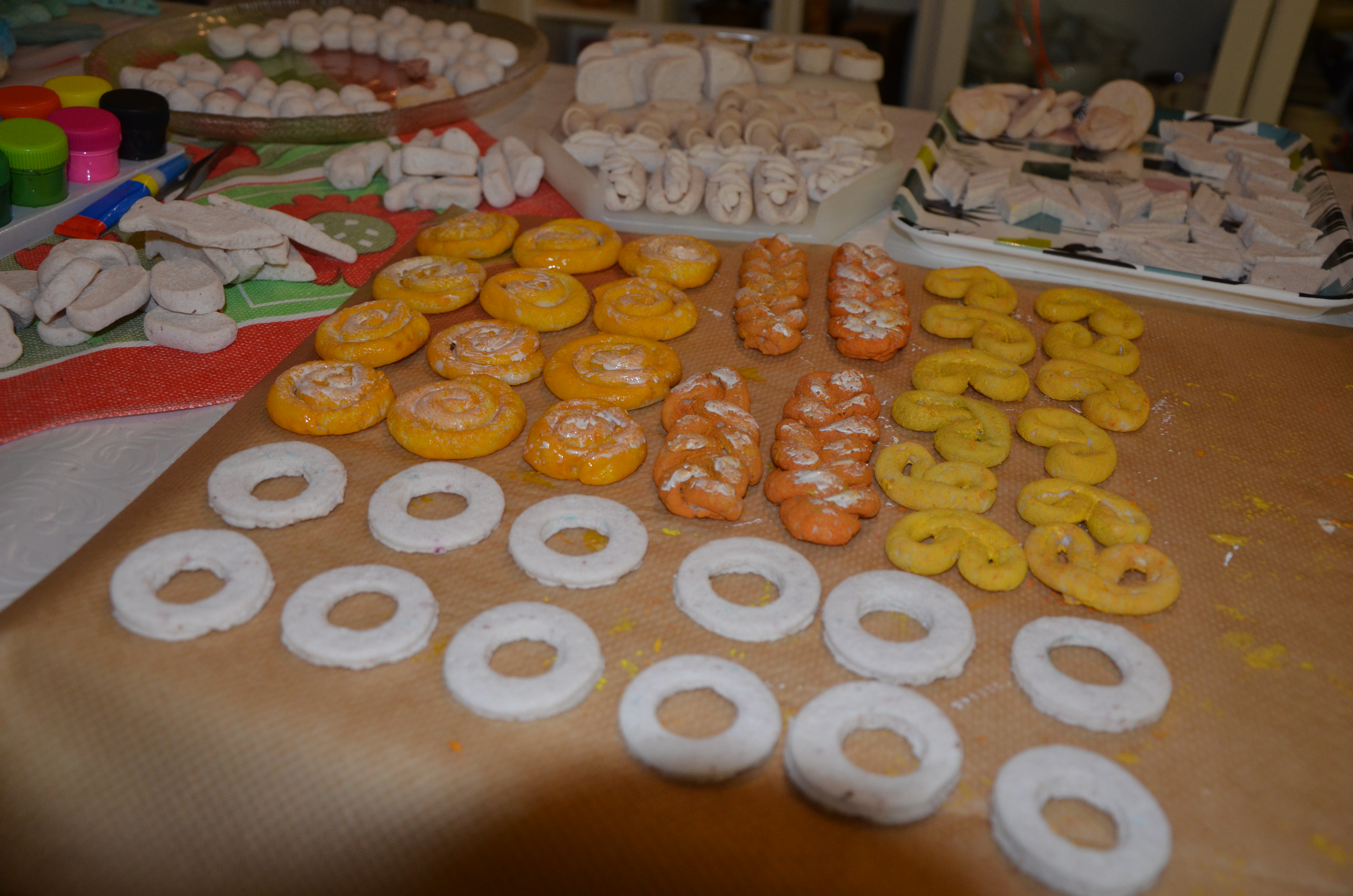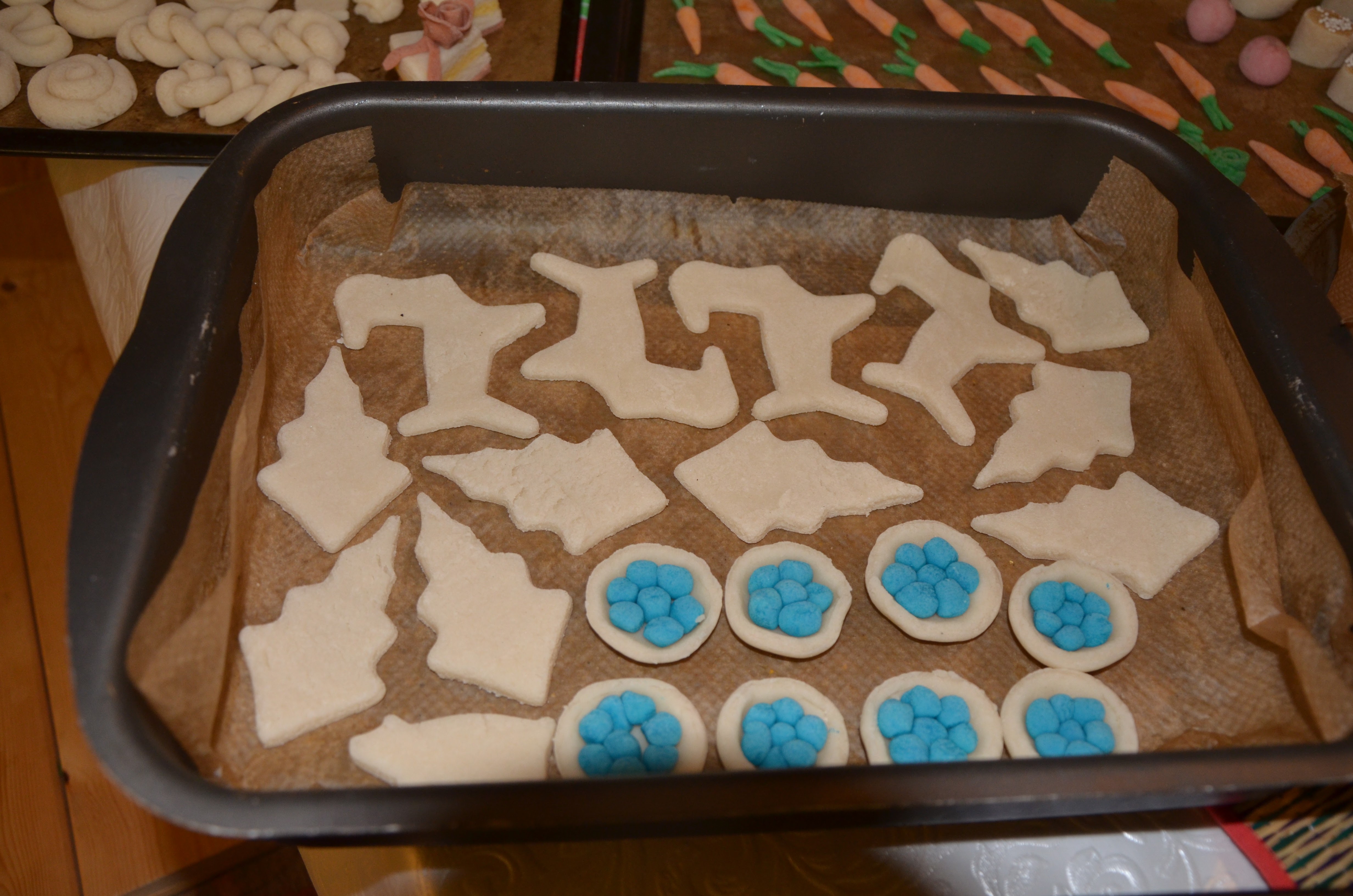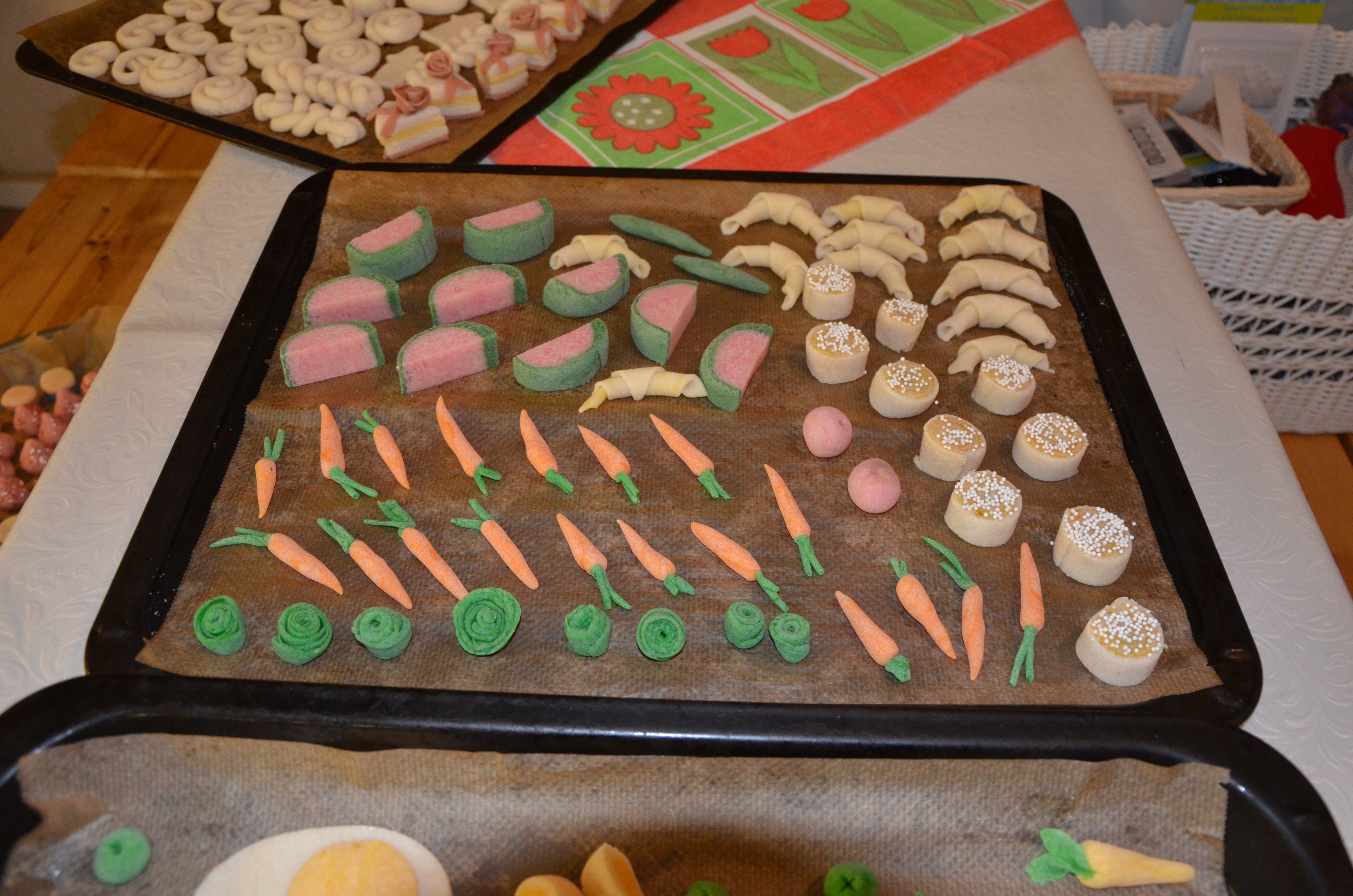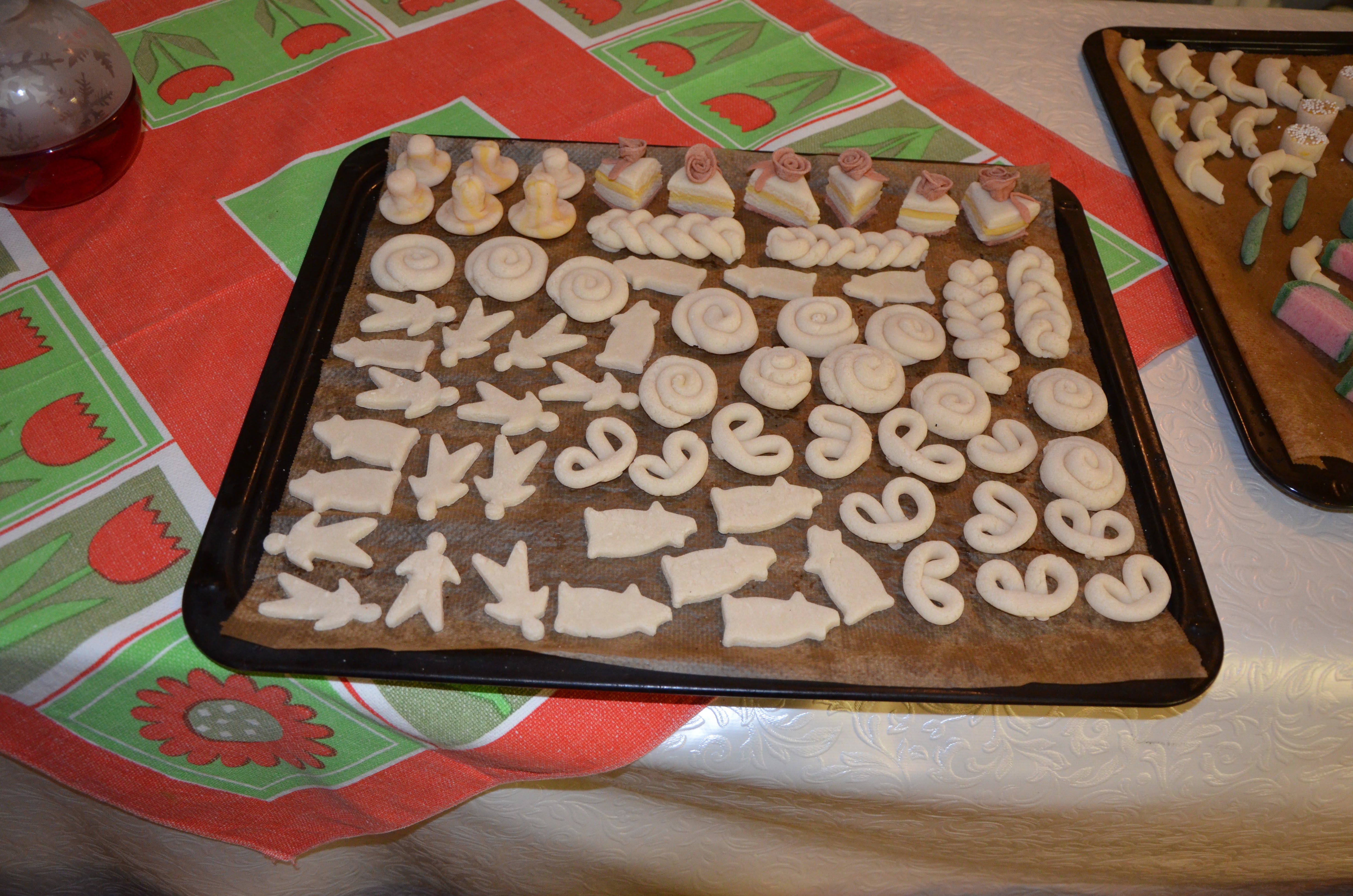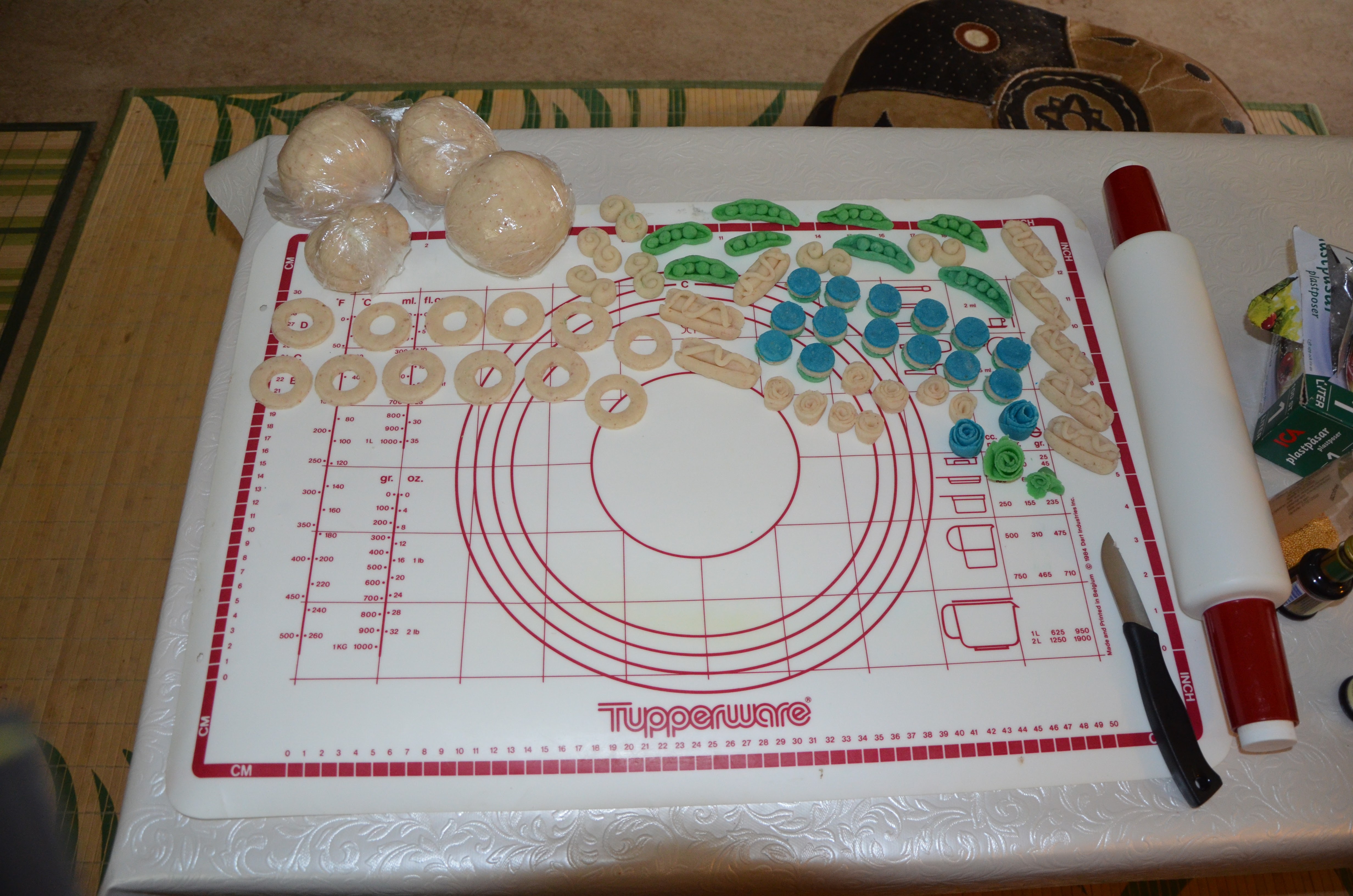 Allow salt and citric acid to dissolve in warm water. Then add the flour and work it all together to a smooth dough. Roll the dough with a rolling pin and cut out figures or create with free hand the figures you want.