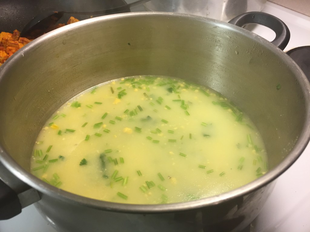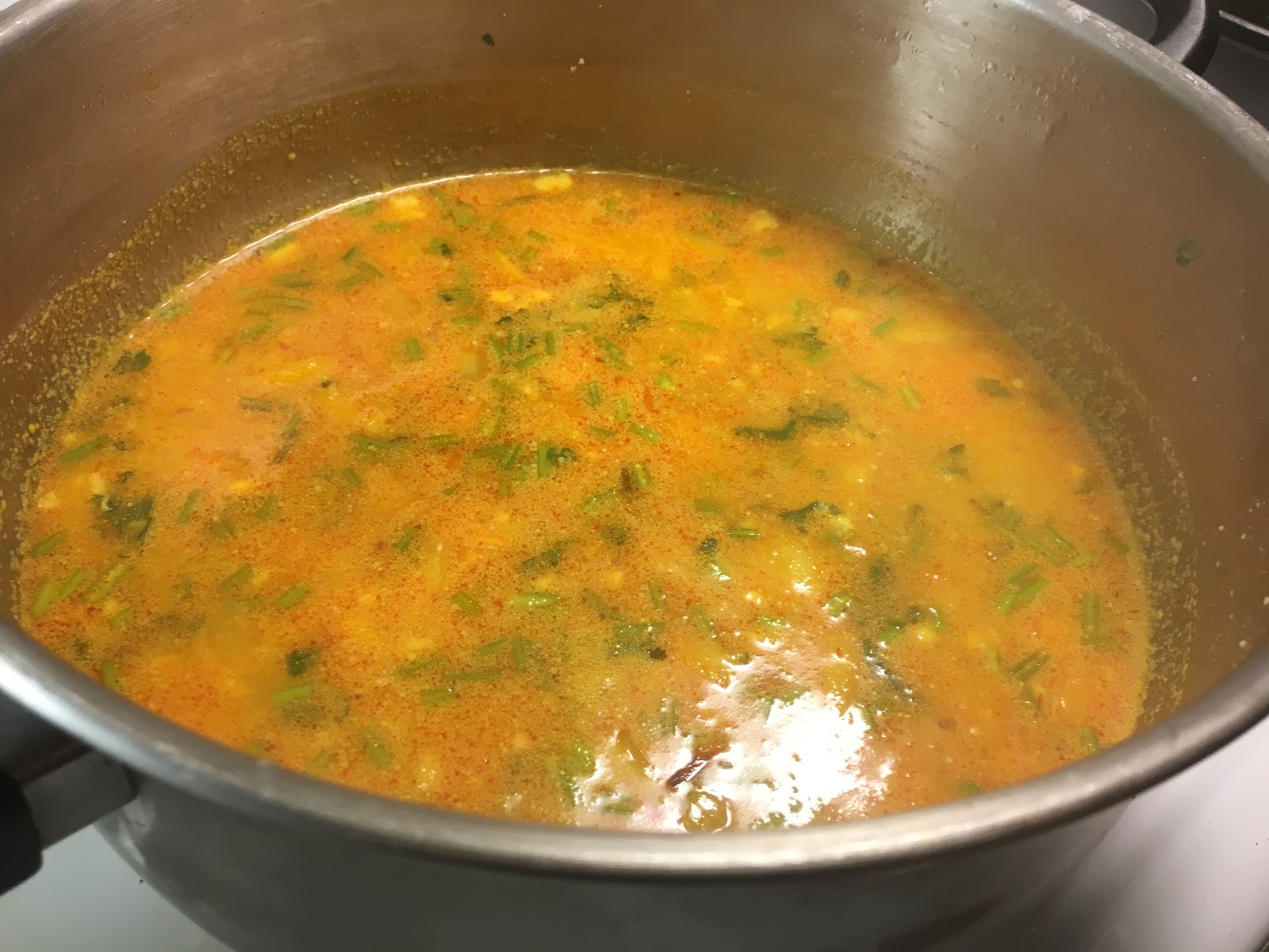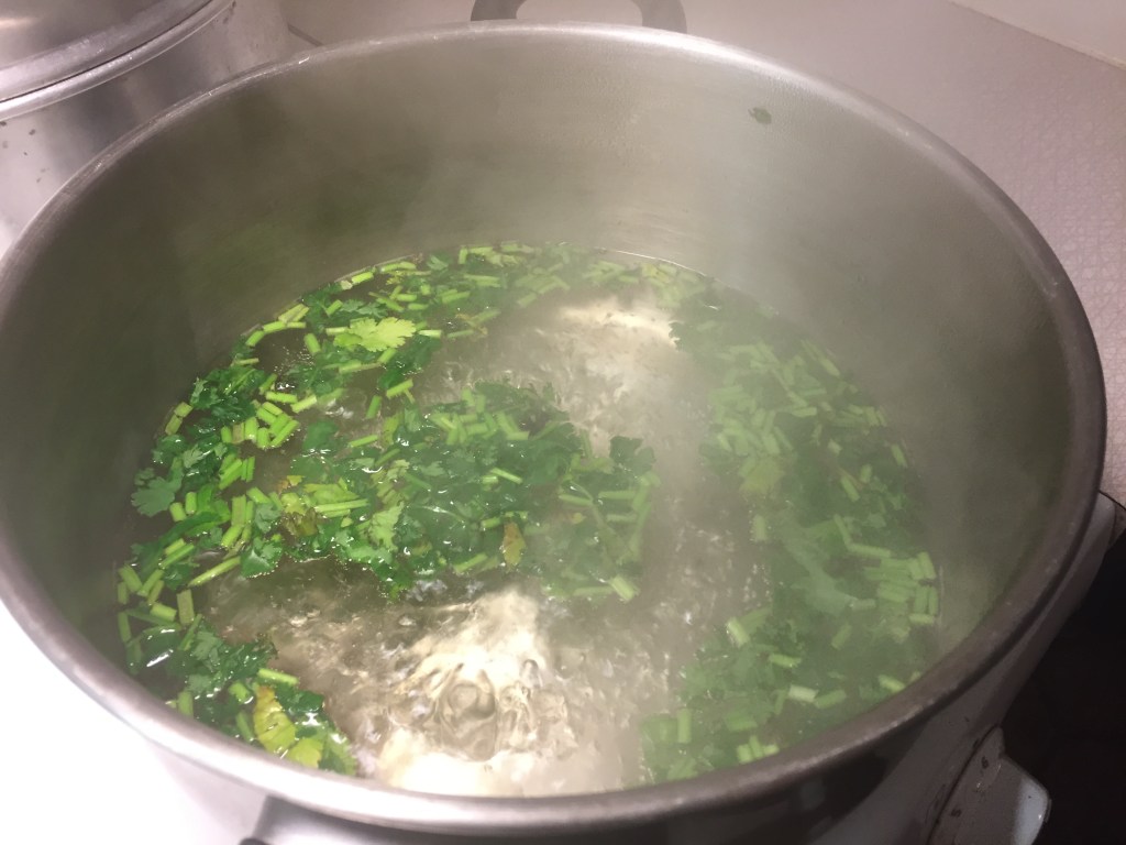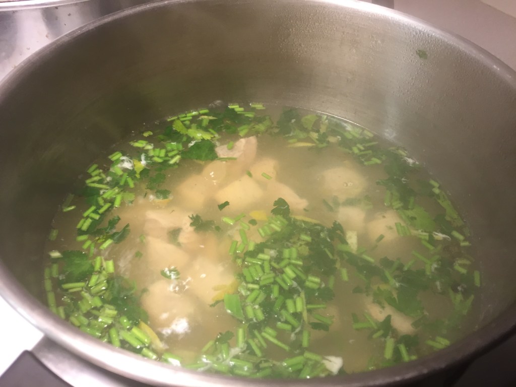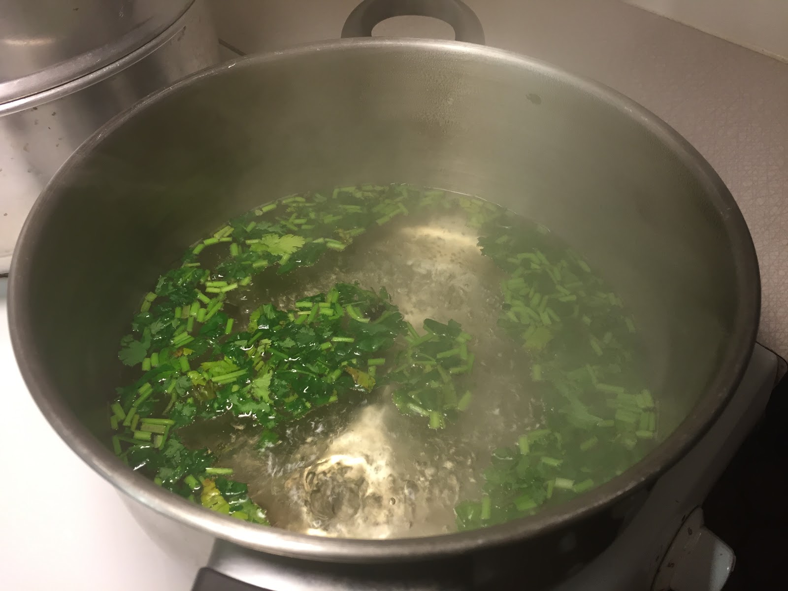 Let the broth rest on the side while preparing the rest of the ingredients.