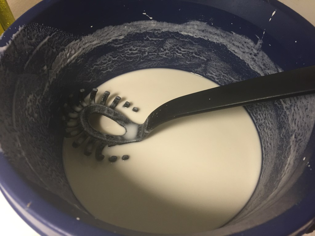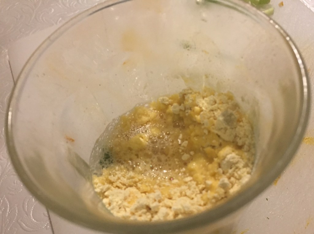 Whisk the sieved flours with 500 ml water from the cooled down broth in a bowl or jug till smooth. Set this flour solution to one side.