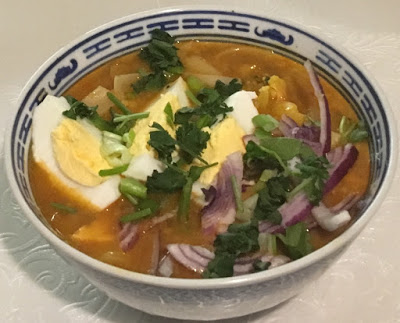 Mohinga is considered one of the national dishes of Burma/Myanmar. It is actually eaten for breakfast. But for me it could be lunch or supper.