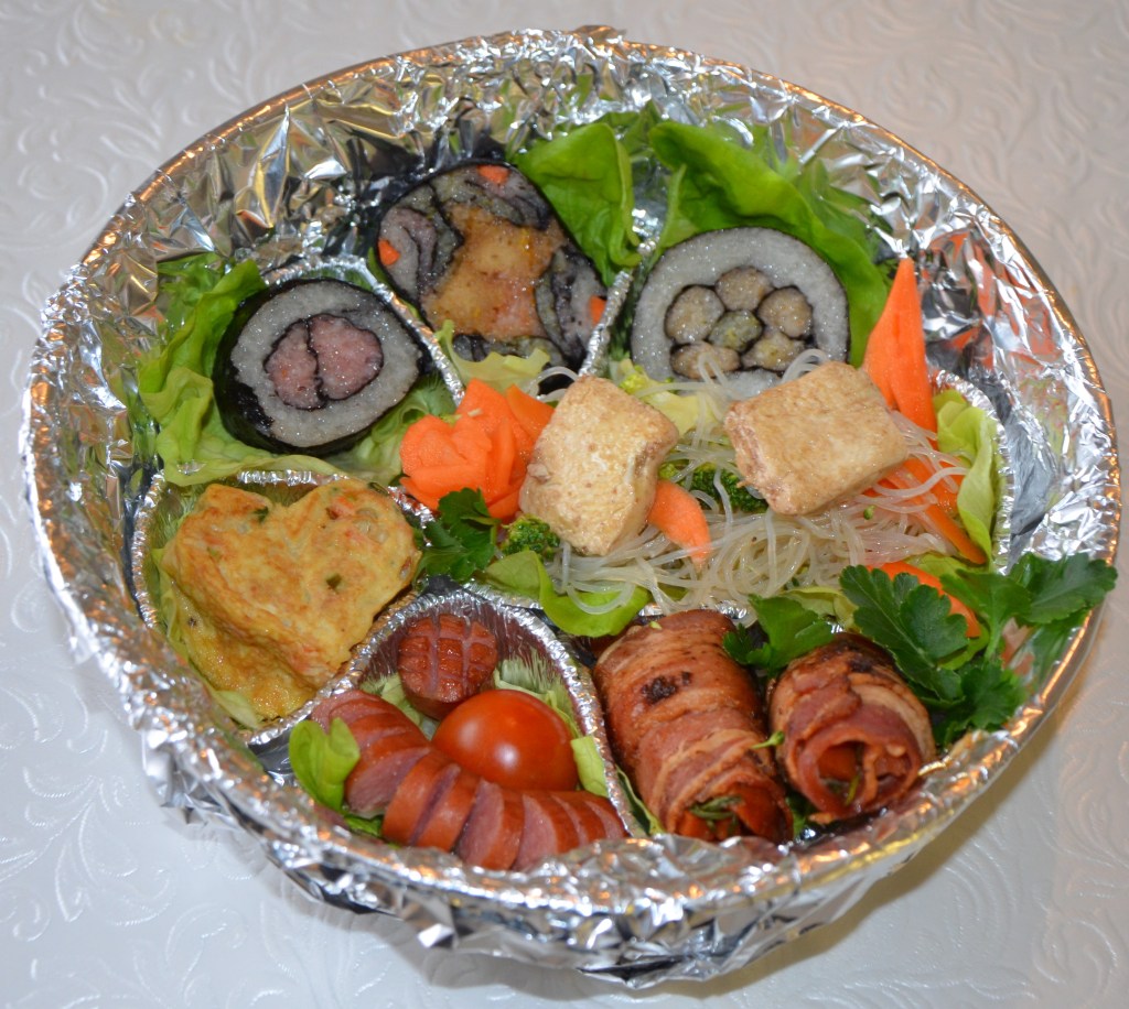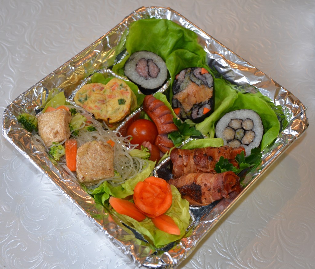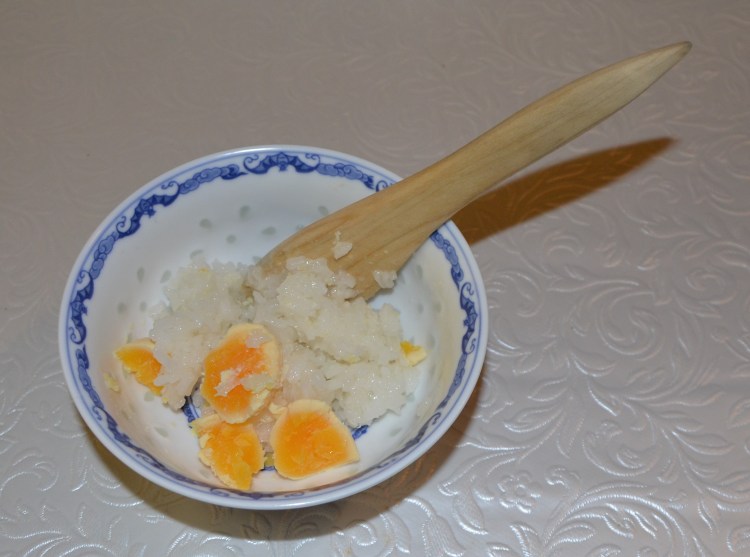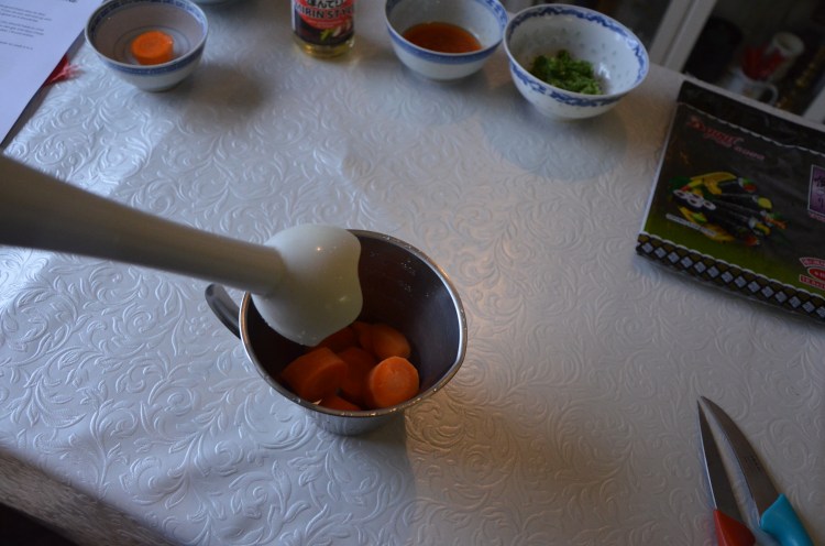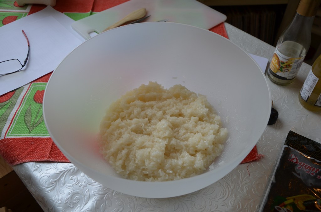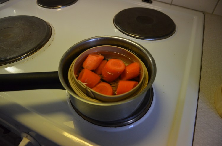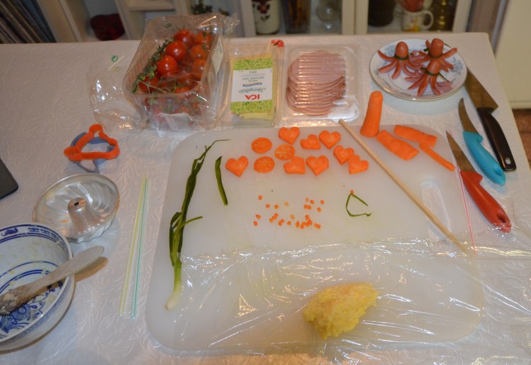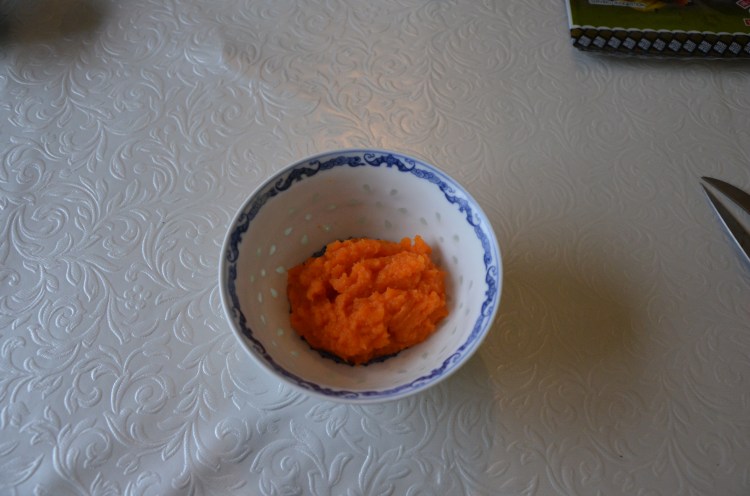 For the childrens Bento Box boil sticky rice according to the instructions on the package. To color, boil carrots and mash for the orange. To make the yellow rice hardboil an egg and mix the yolk with the rice.