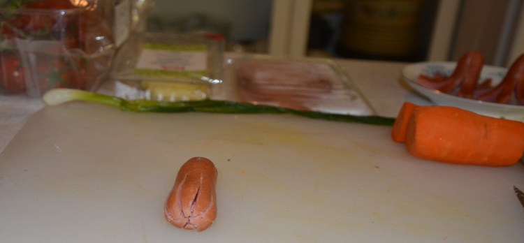 To make curly sausage cut the sausage with small cuts but not all the way through. Heat the sausages in the frying pan or hot boiling water and they will curl up.