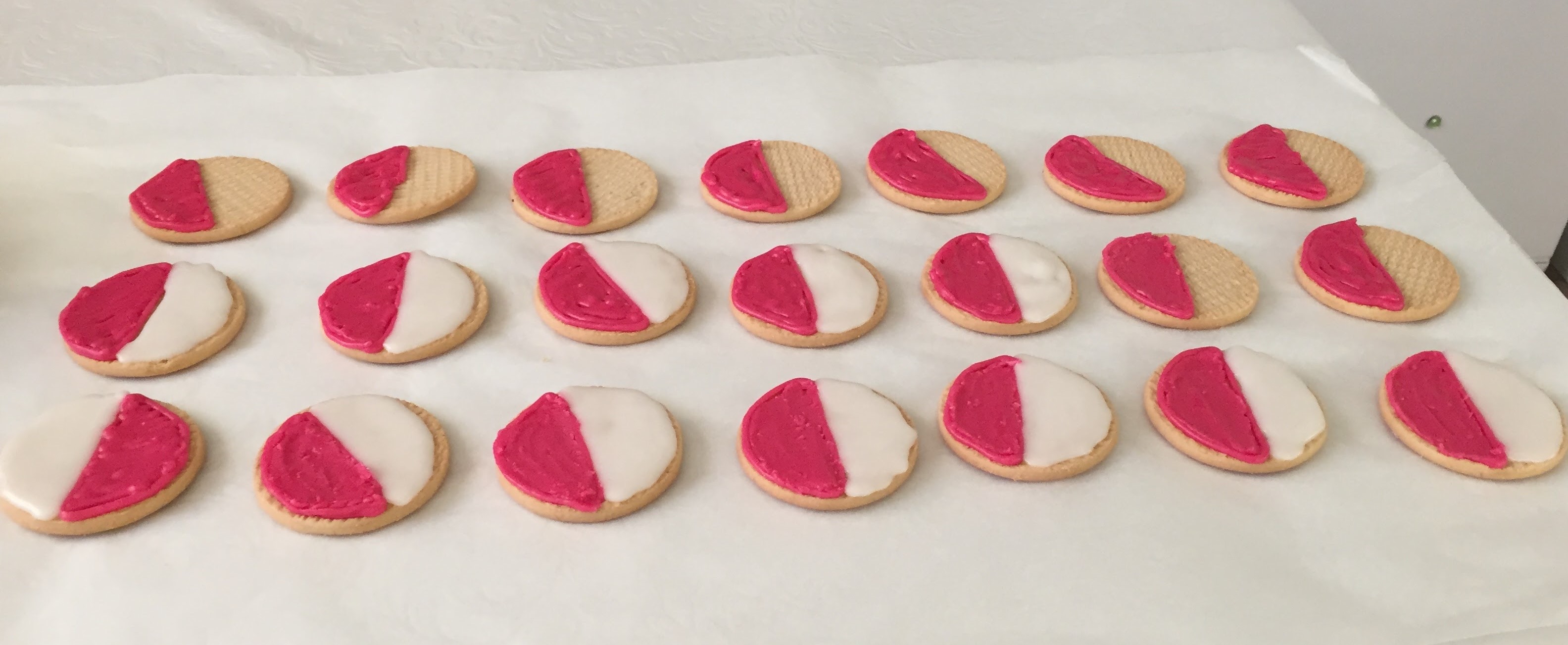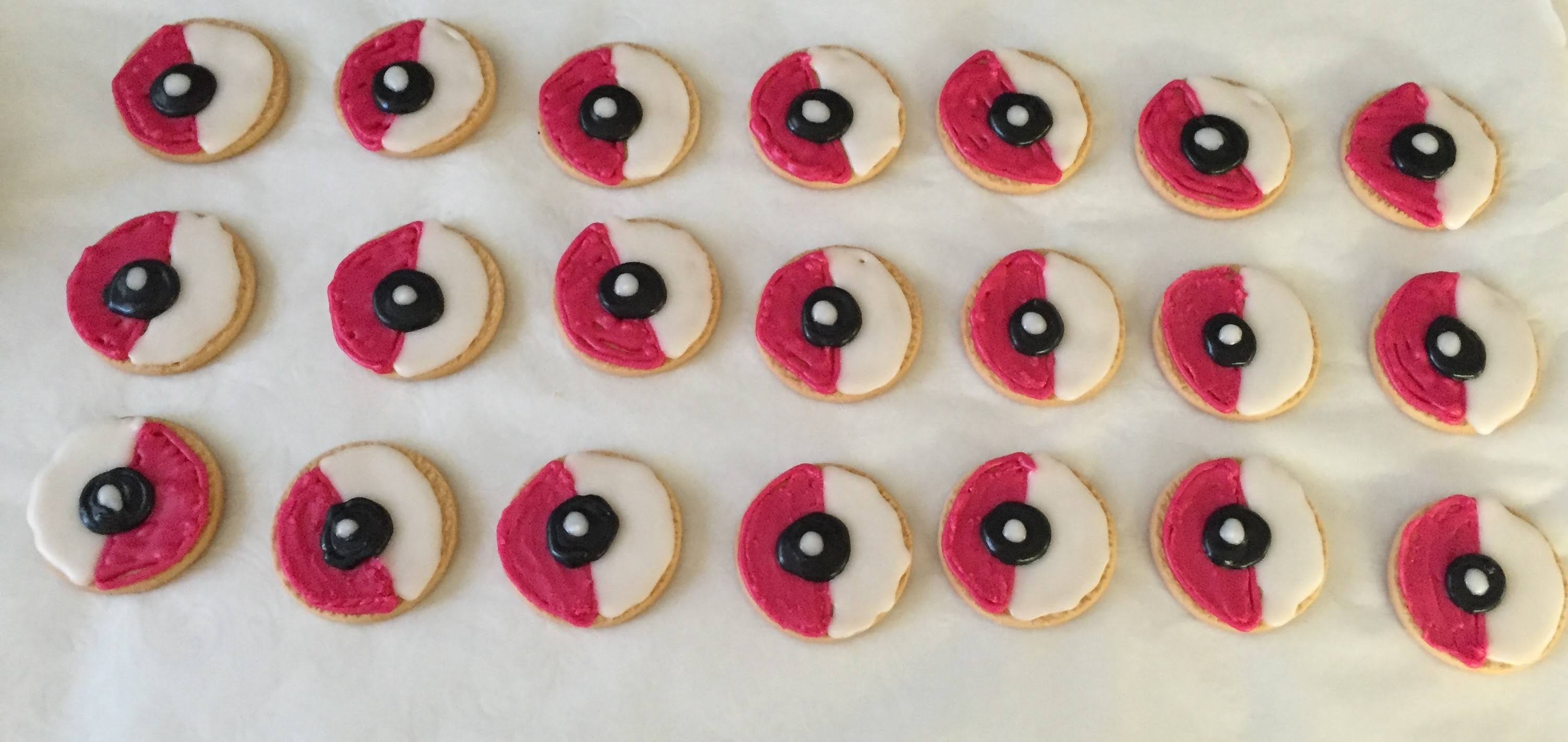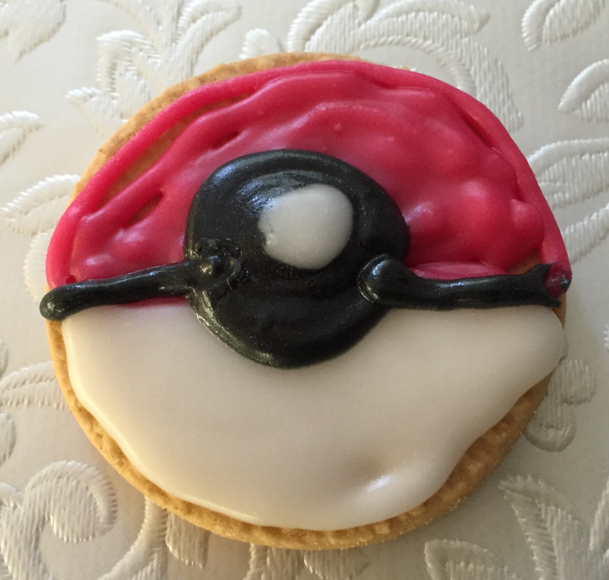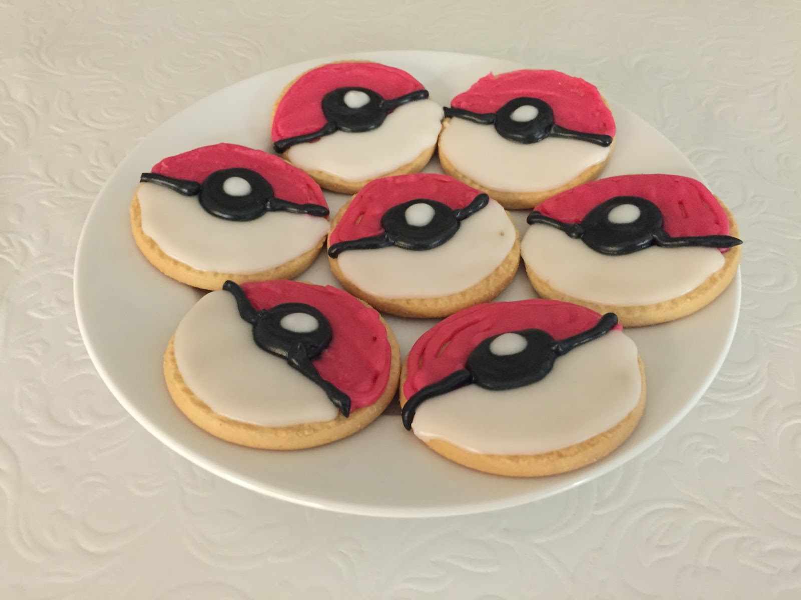 To make the Pokémon Cookies you first make cookies from the receipt of sugar cookies. You can make them in any shape or form you like and than decorate with Icing. I have here made Pokémon Pokeball Cookies.