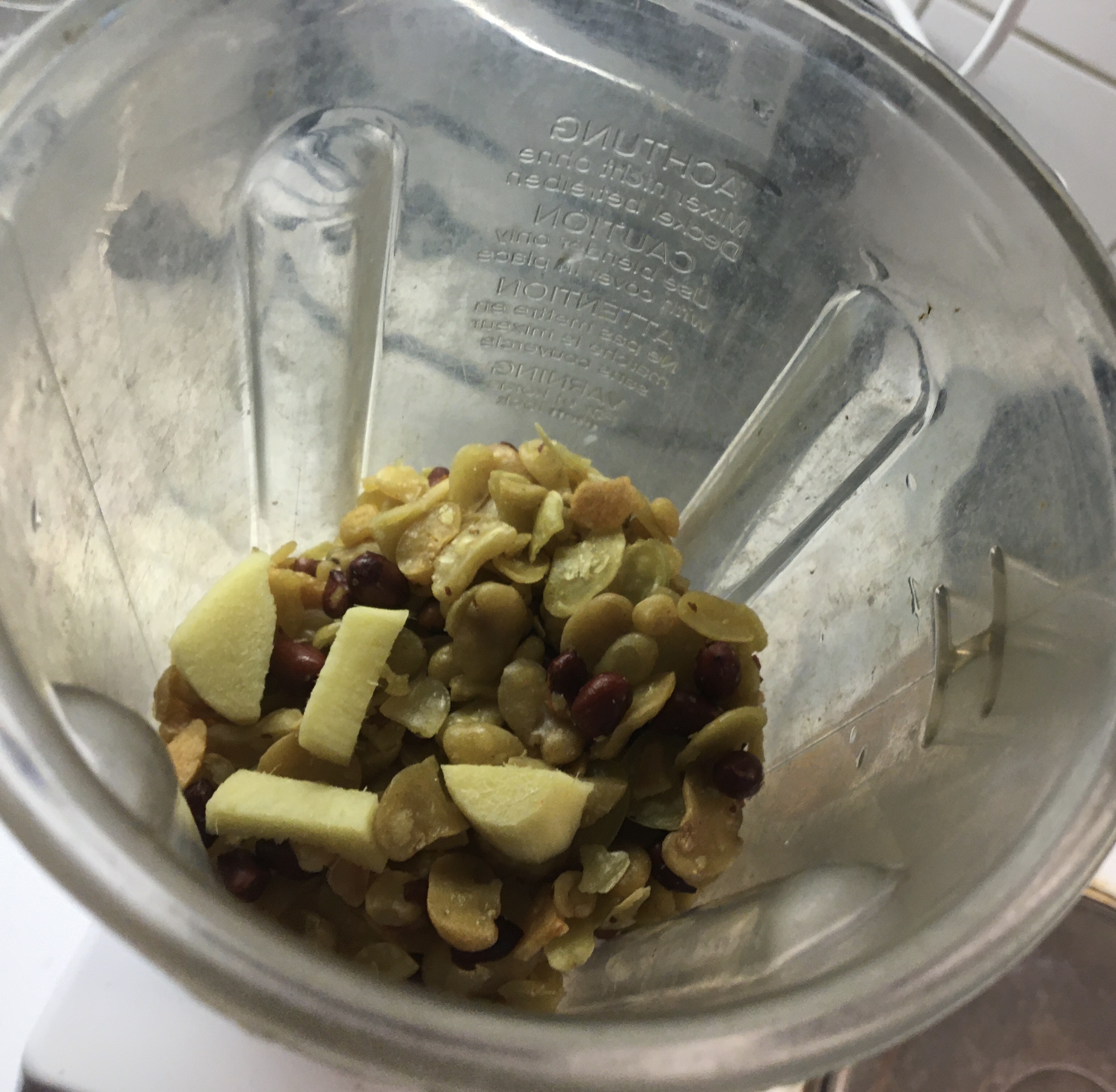 Firstly, in a blender take 1 cup coconut, 3 green chilli, small ball sized tamarind and ½ tsp salt. Add in ¼-½ cup water as required depending on variety of coconut used. Blend to smooth paste adding more water if required.
