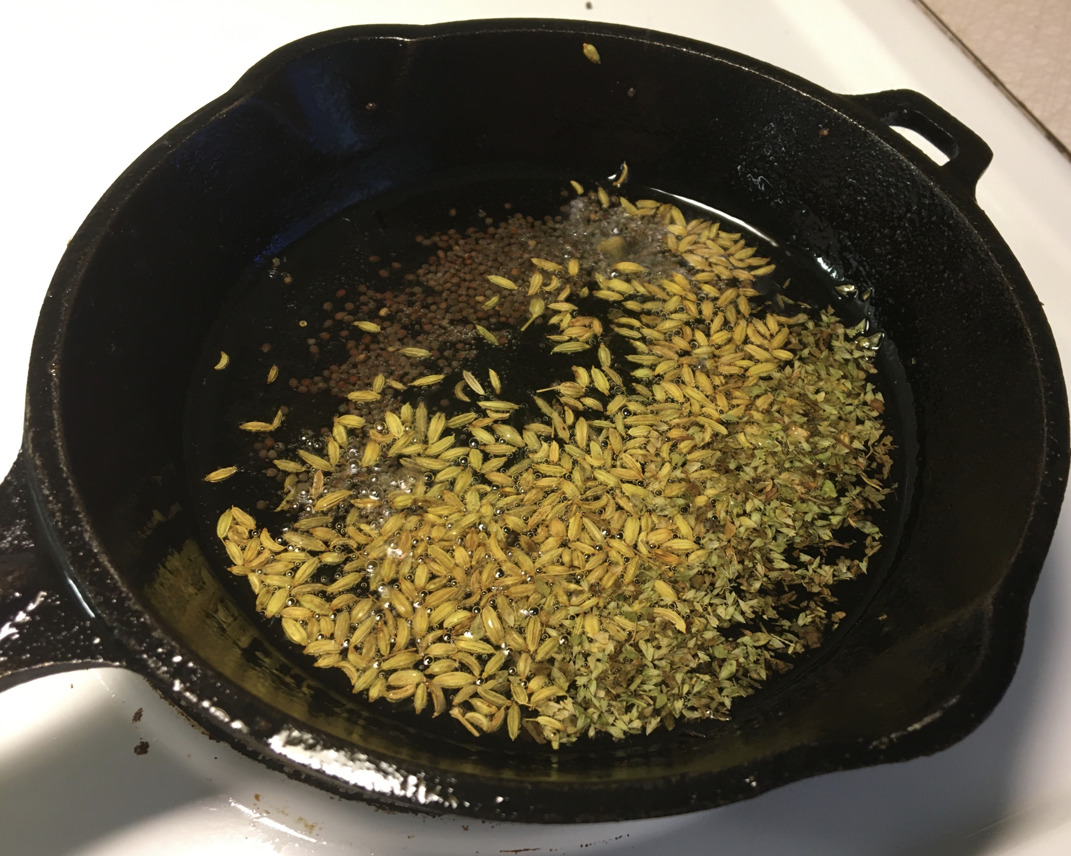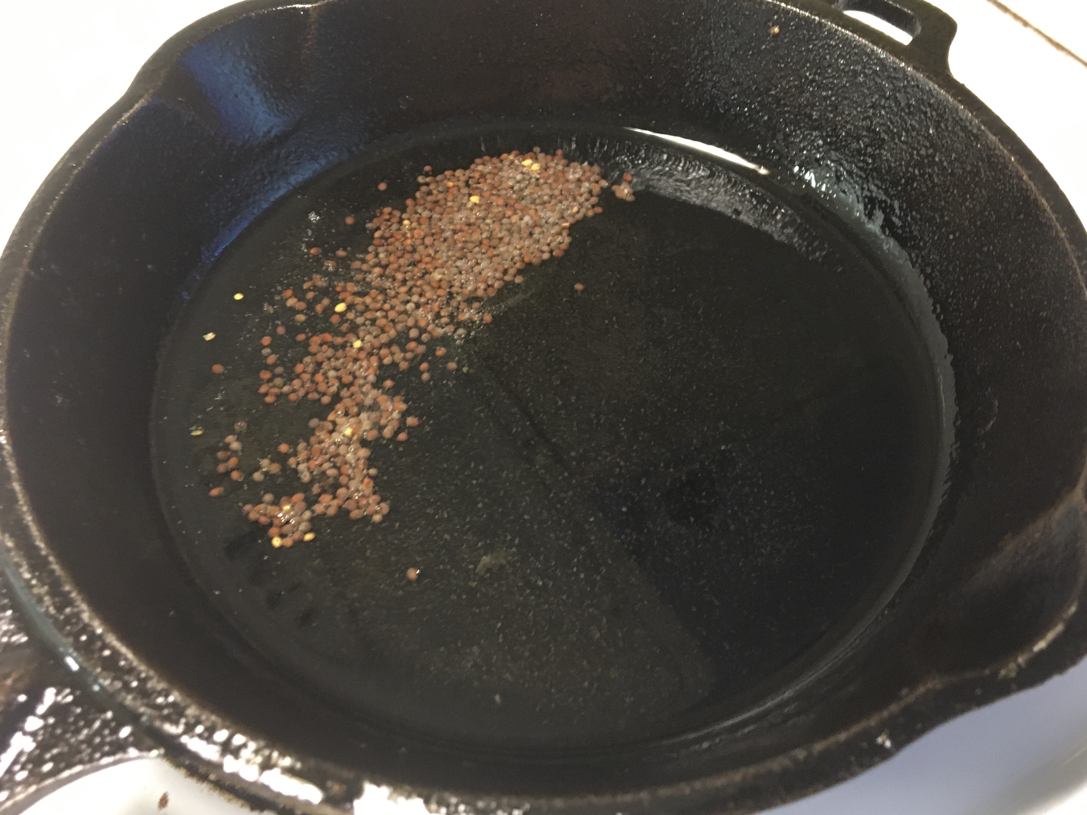 Now prepare the tempering by heating 2 tsp oil, add in 1 tsp mustard seeds, ½ tsp urad dal, 2 dried red chilli and few curry leaves. Allow to splutter. Finally, pour the tempering over the coconut chutney and serve for instance with rosti.