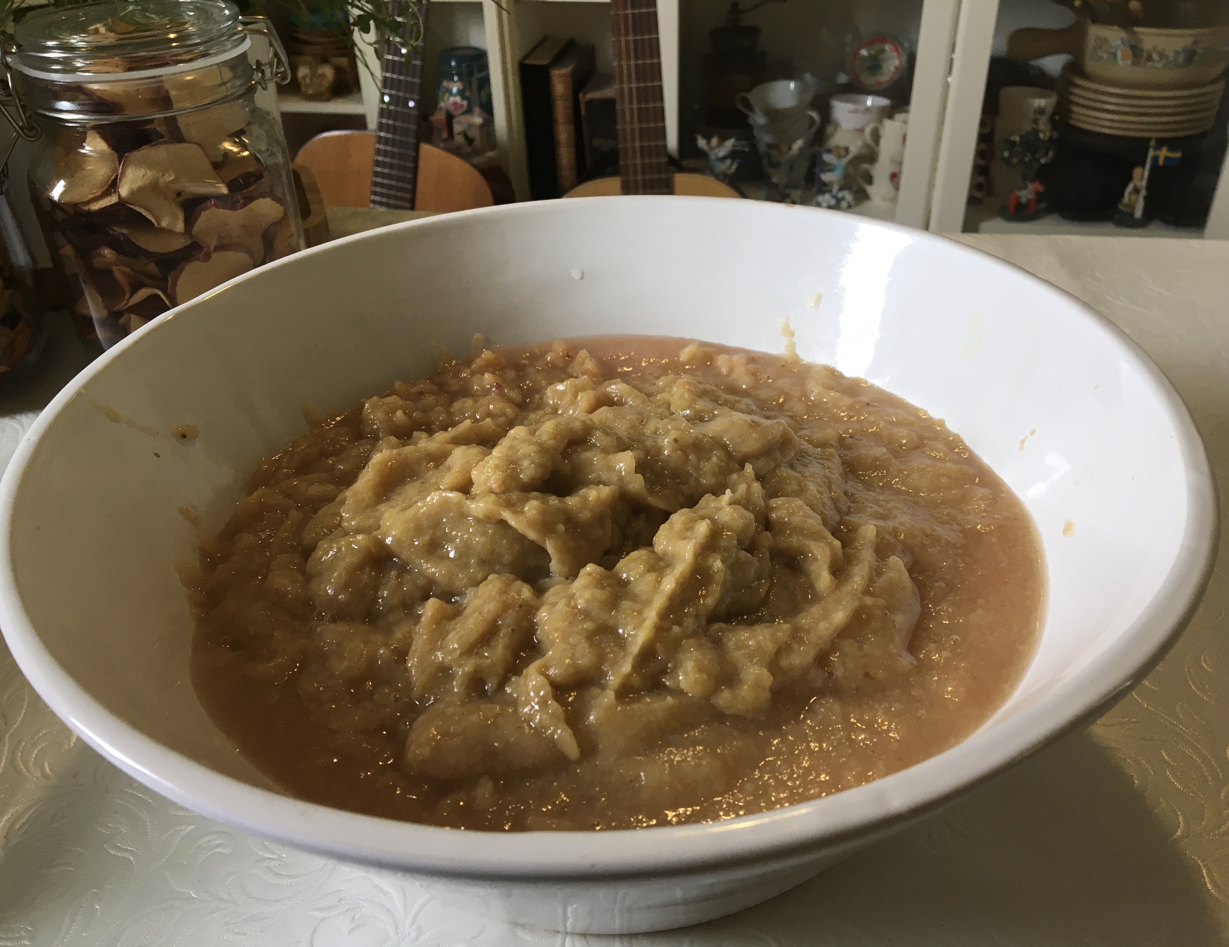 My applesauce is darker because I didn’t peel my apples and I used cinnamon.