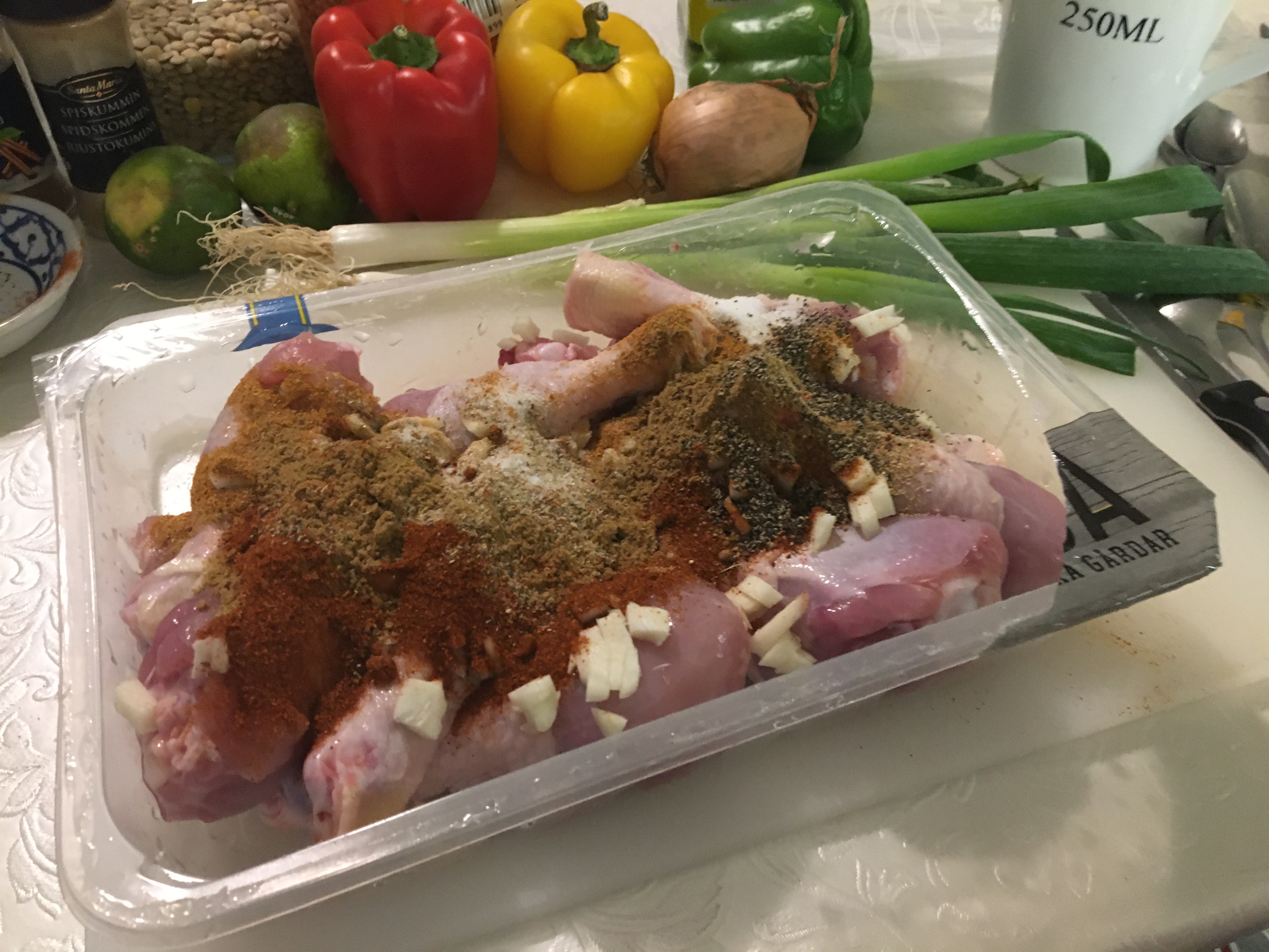 This Middle Eastern chicken is incredibly aromatic. The marinade is very quick to prepare and the chicken can be frozen in the marinade, than defrosted prior to cooking.