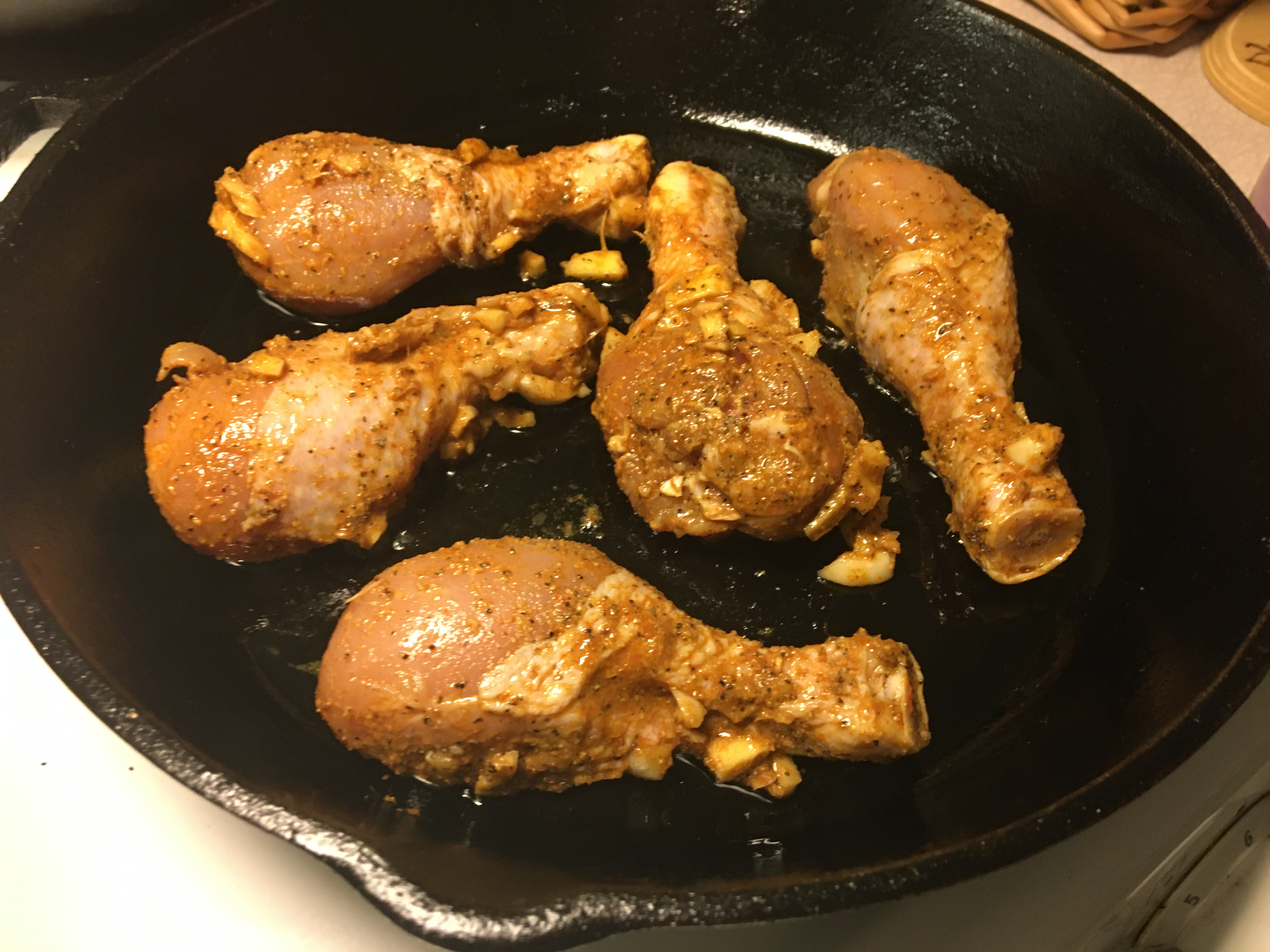 Heat a large heavy based pan on stove on medium high. You should not need to oil it because the marinade has oil in it and also chicken has fat. But if you are worried then oil your pan.