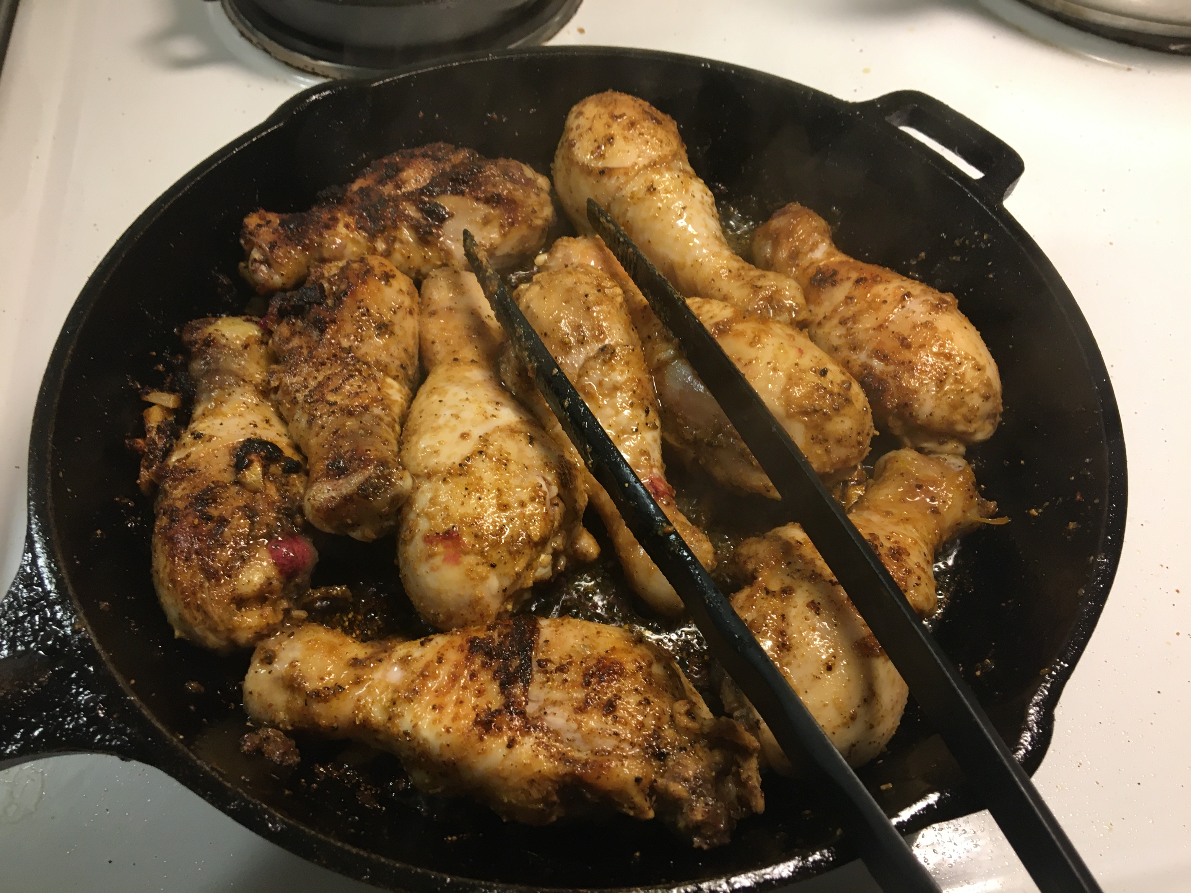 Place chicken in the pan and cook for 4 to 5 minutes until nicely charred, then turn and cook the other side for 3 to 4 minutes.