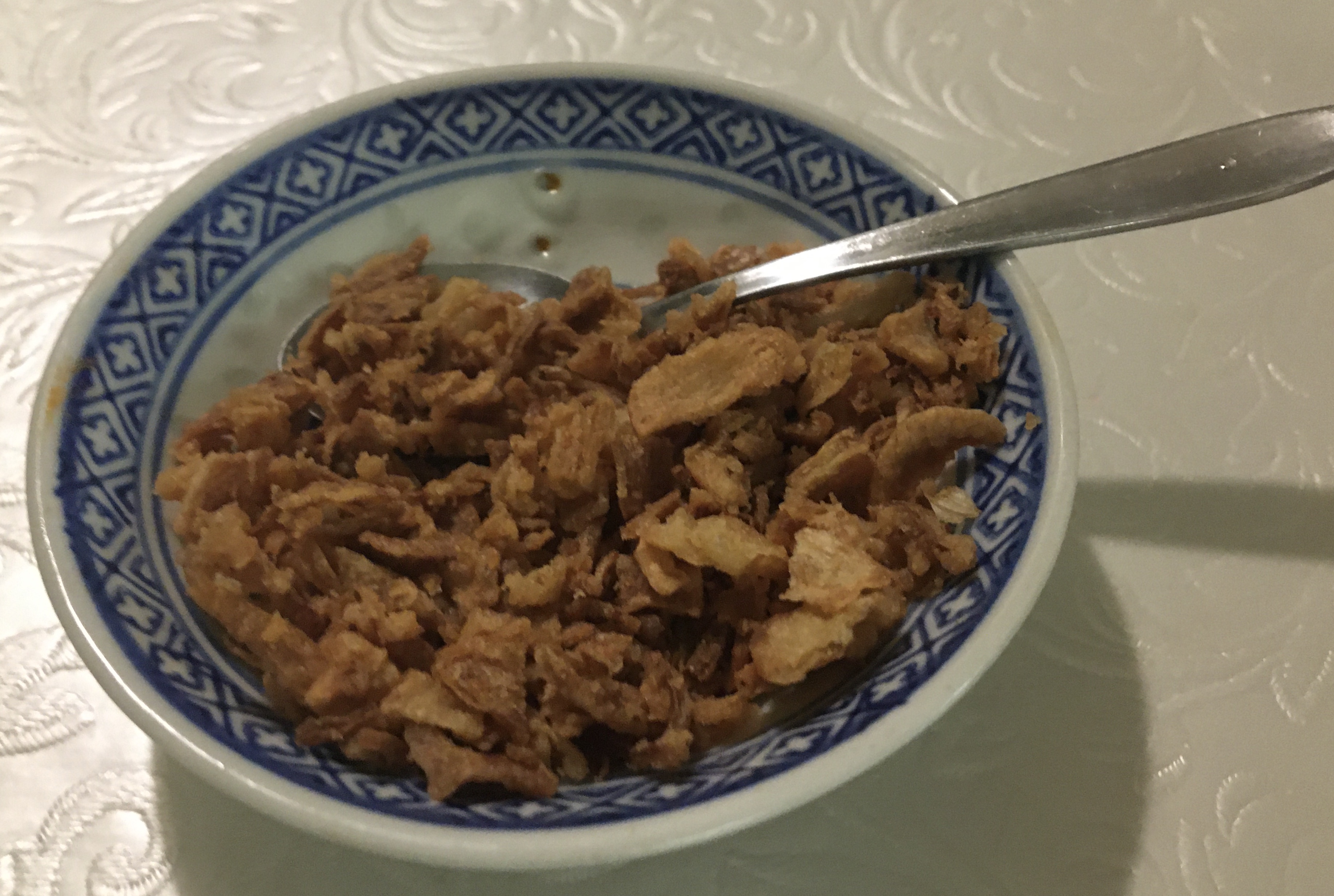 Reduce the heat to medium-high and carefully (it may spit!) add one-third of the sliced onion. Fry for 5 to 7 minutes, stirring occasionally, until the onion takes on a nice golden brown color and turns crispy (adjust the temperature so the onion doesn’t fry too quickly and burn).