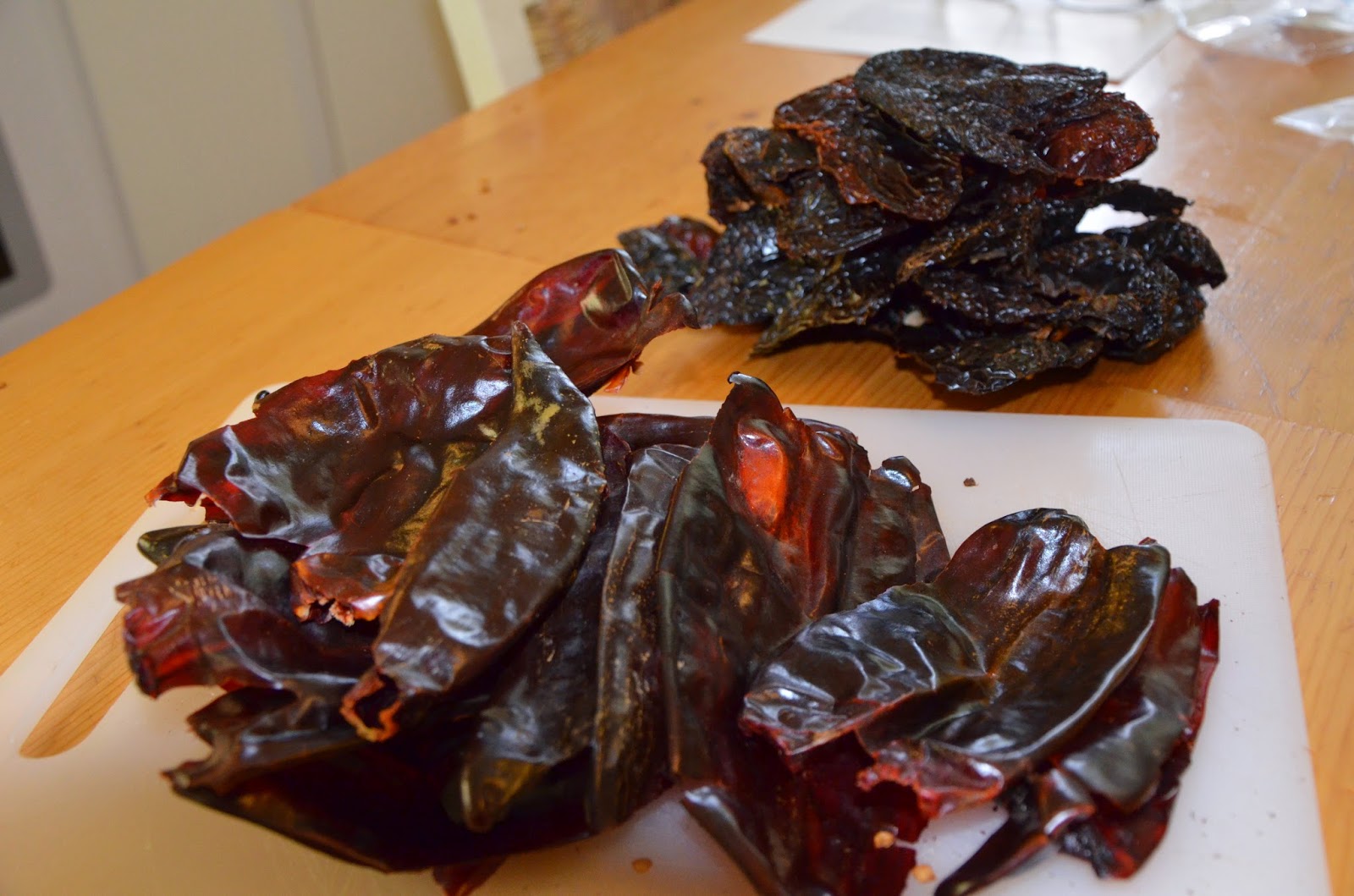 - 4 ounces (113 g) guajillo, ancho, or a combination of both, chili pods