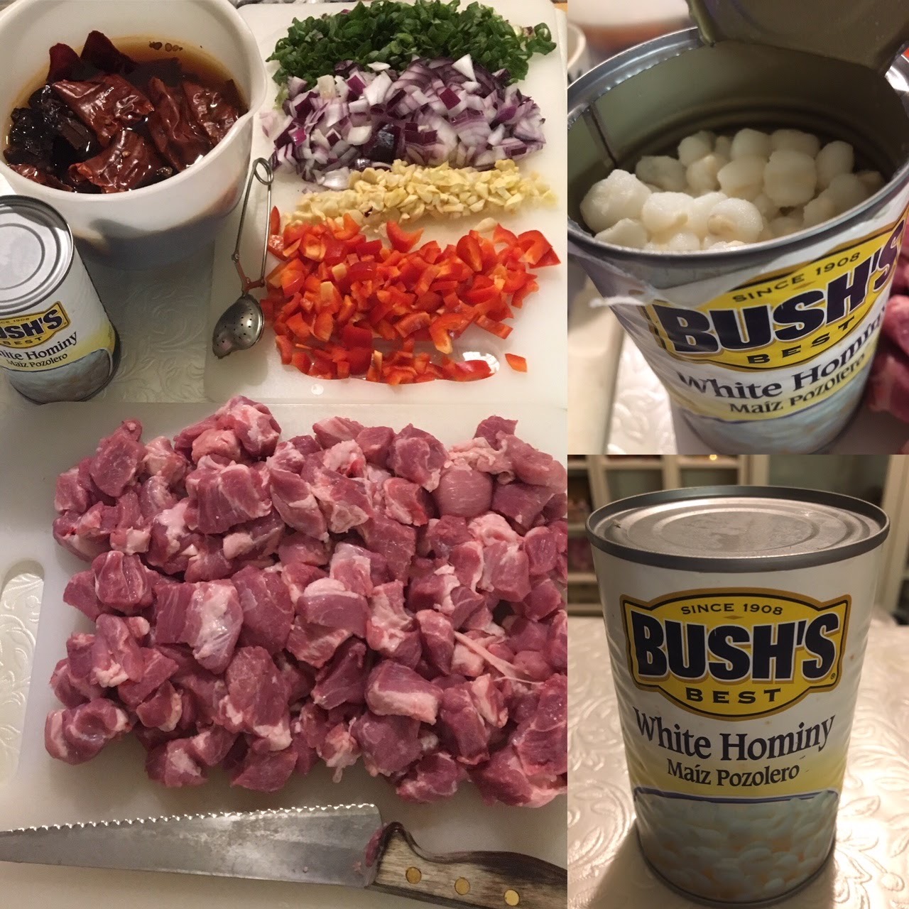 - 1 large (108 ounce, 6 lb 12 oz, 3 kg) can white hominy, drained and rinsed