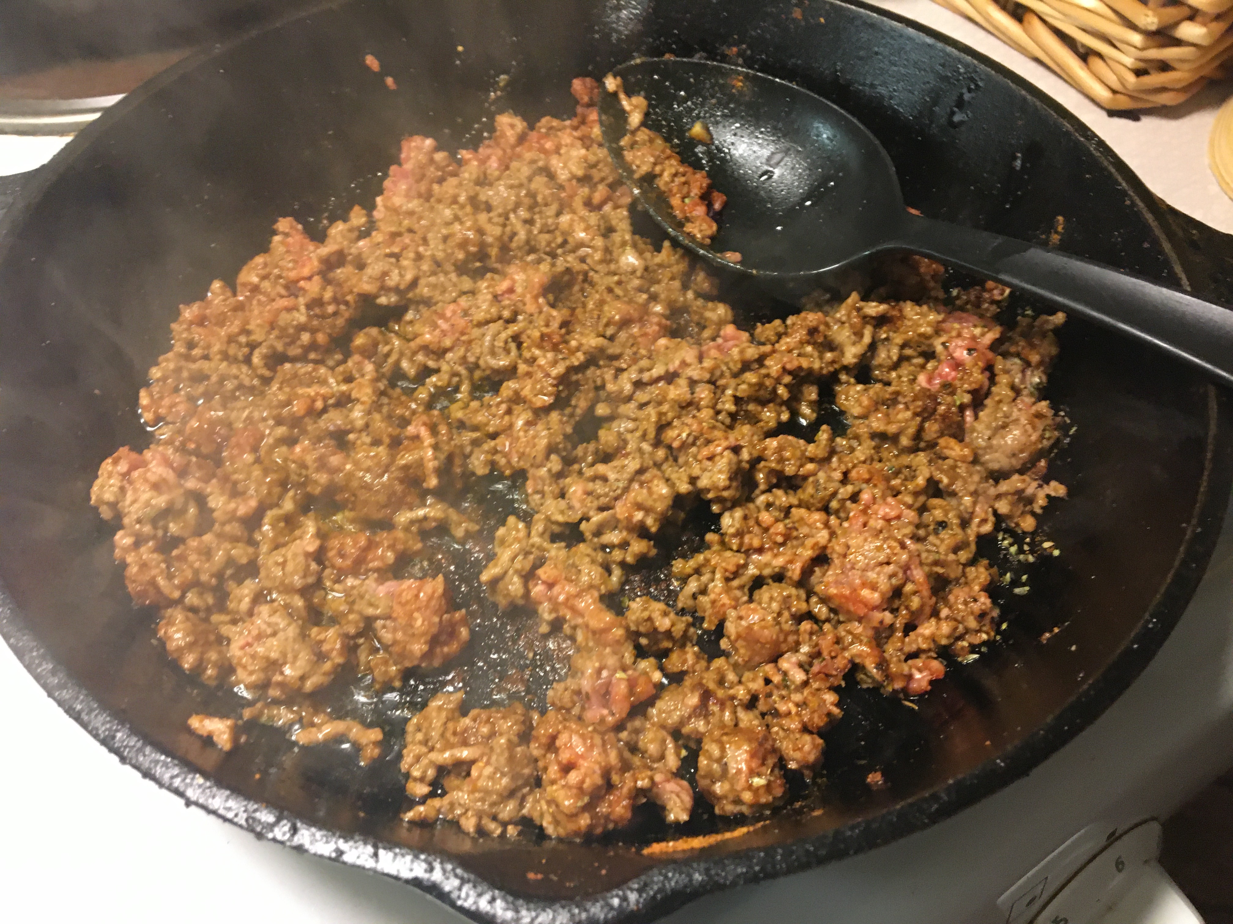 Heat 1 tablespoon of the oil in a large, high-sided skillet over medium-high heat until shimmering. Add the beef and cook, breaking up the meat with a wooden spoon, until browned and cooked through, 6 to 8 minutes. Add the cubed sausage and stir. Using a slotted spoon, transfer the meat and the sausage to a plate, then drain any fat from the skillet.