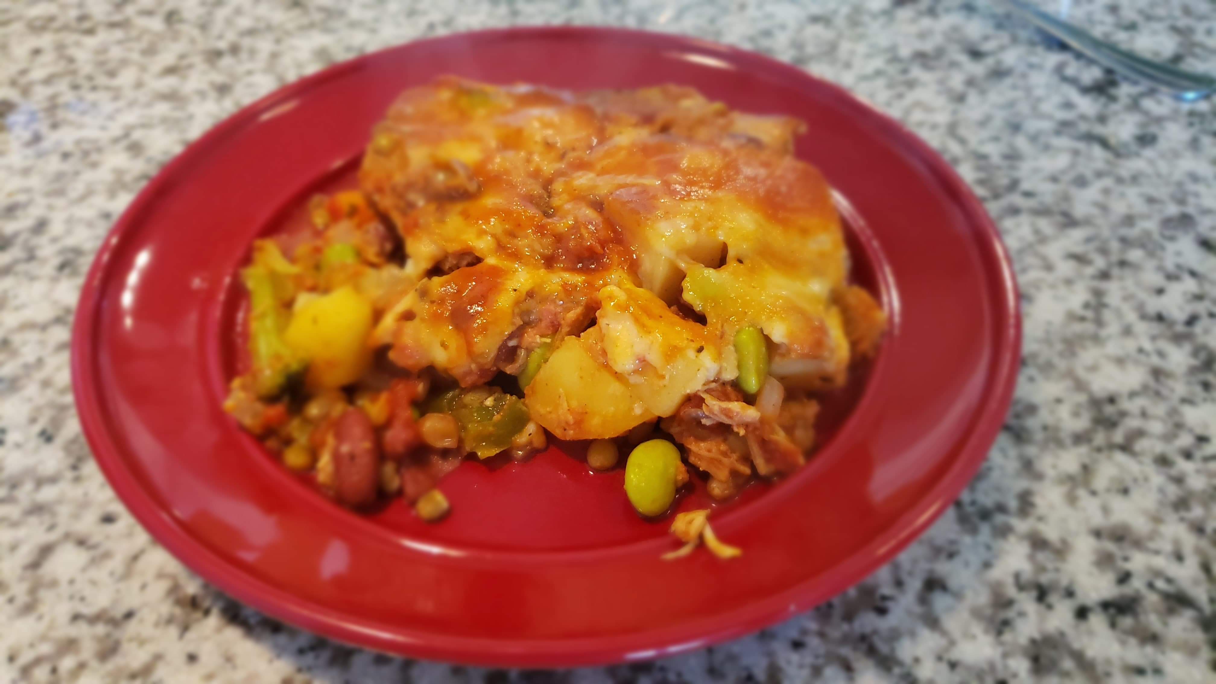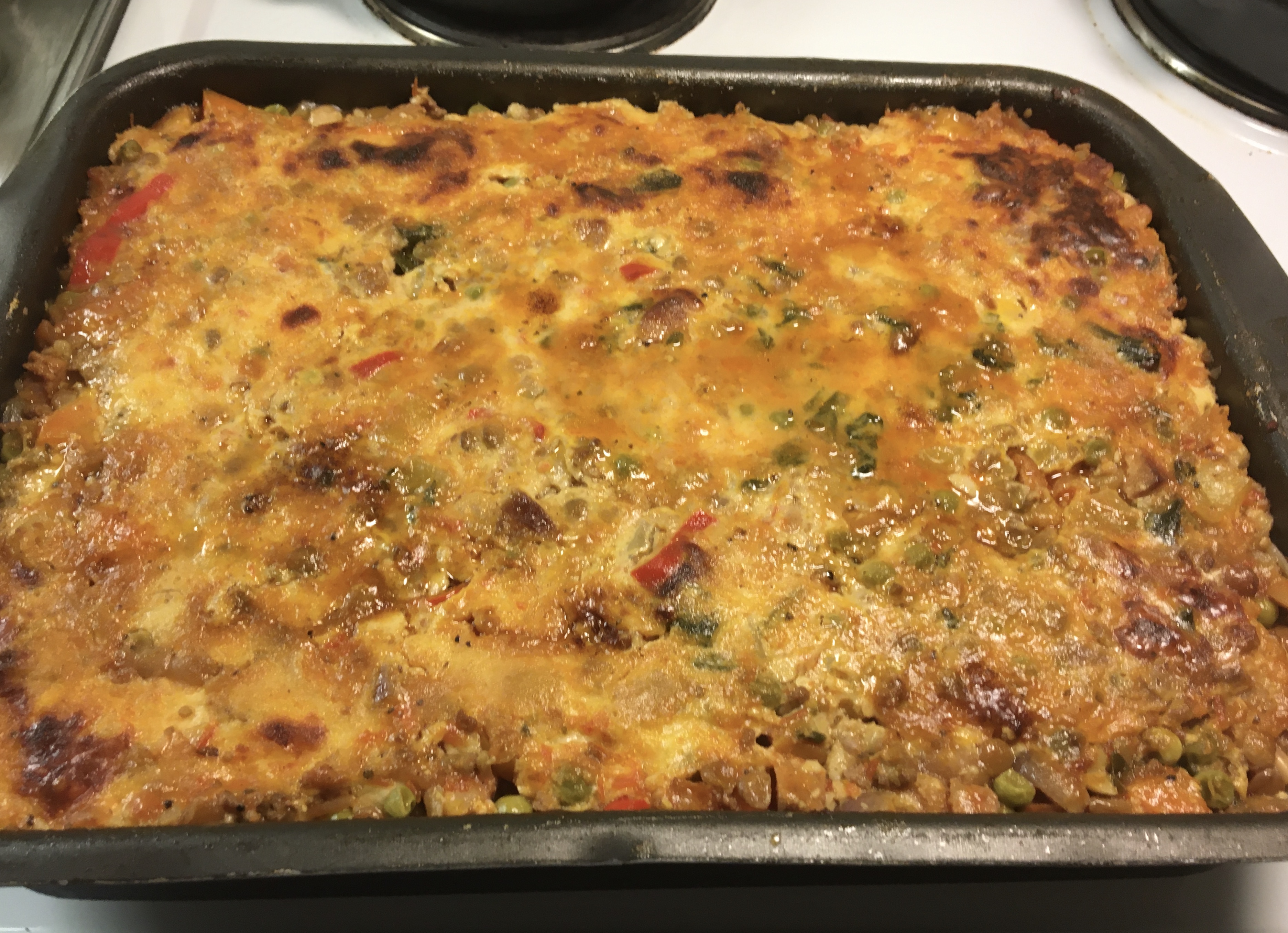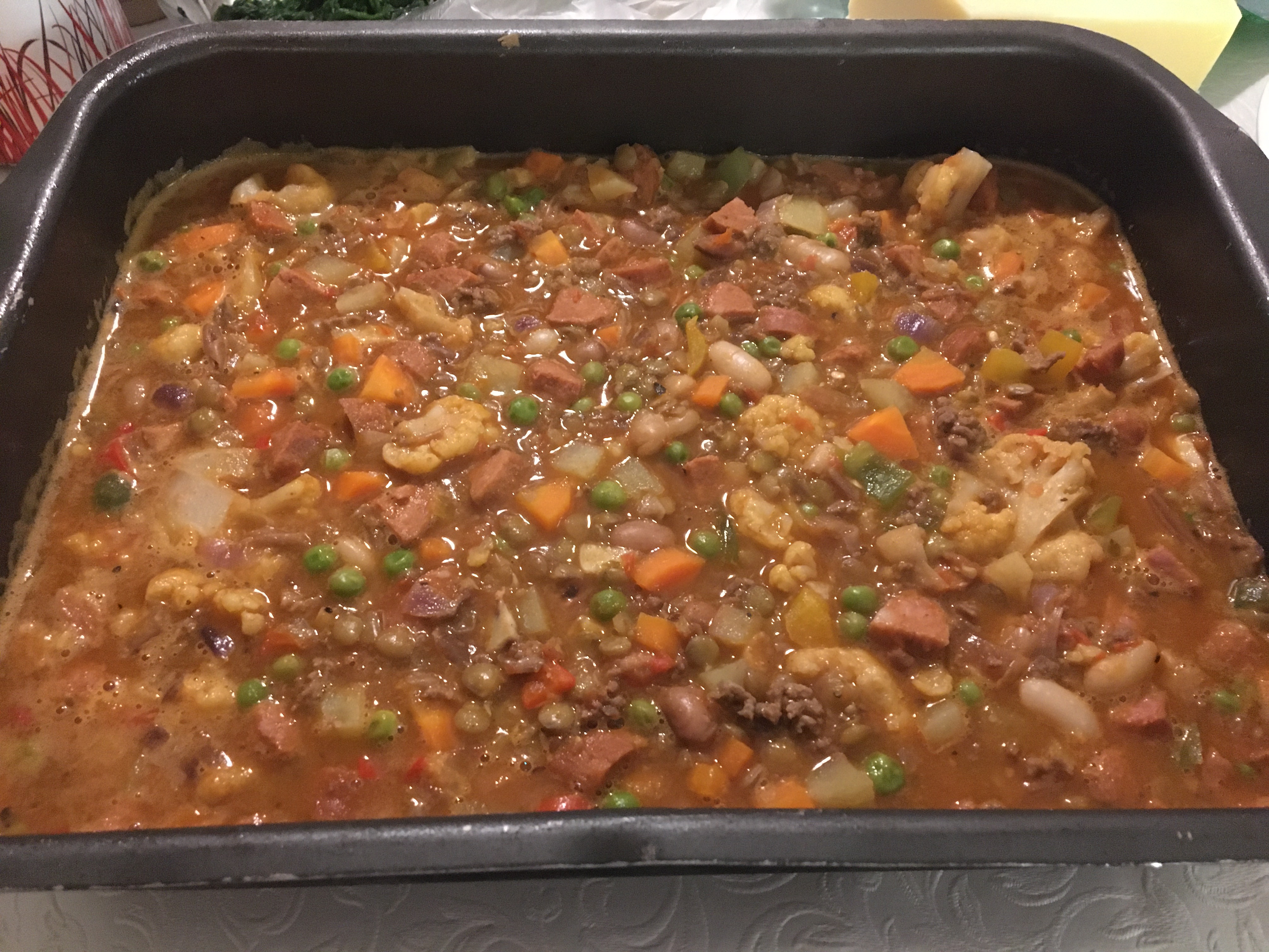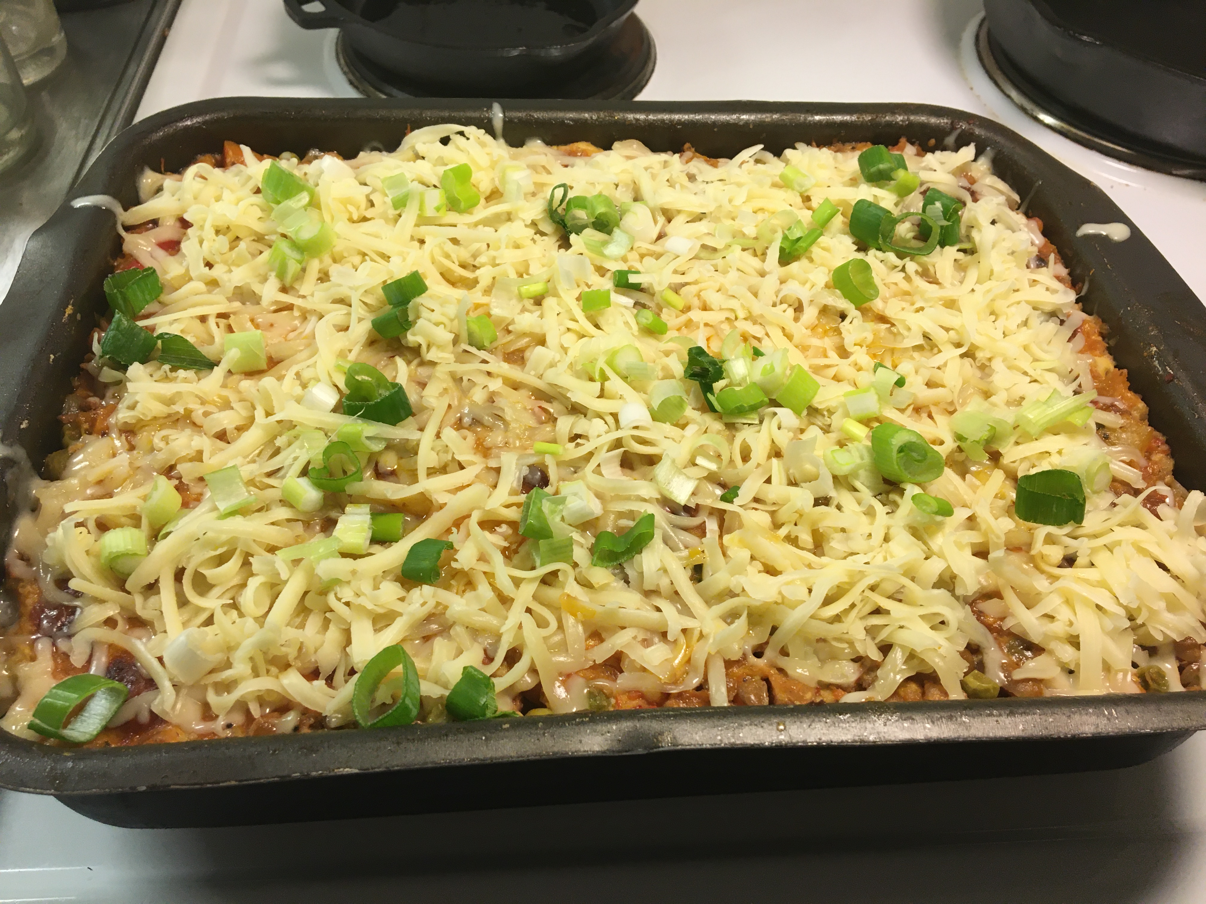 This casserole is healthy with lots of vegetables, lentils and beans and Mexican spicing that will suit every Taco and Chili Lover. I used ground beef and chorizo sausage in mine and Frida and Ciana had Chicken. It could be made totally vegetarian and taste great. The great thing with casserole is you decide what you put in.