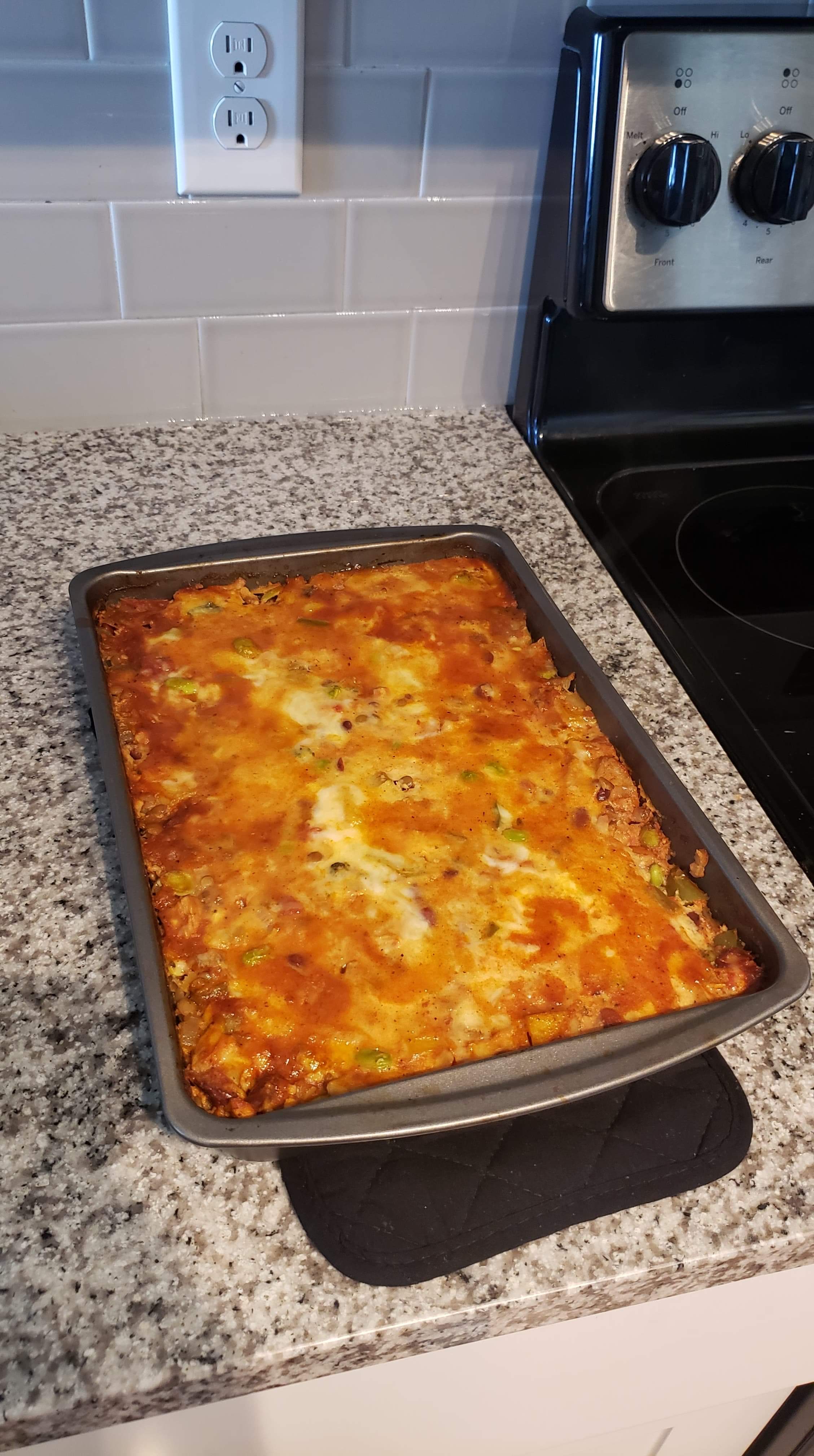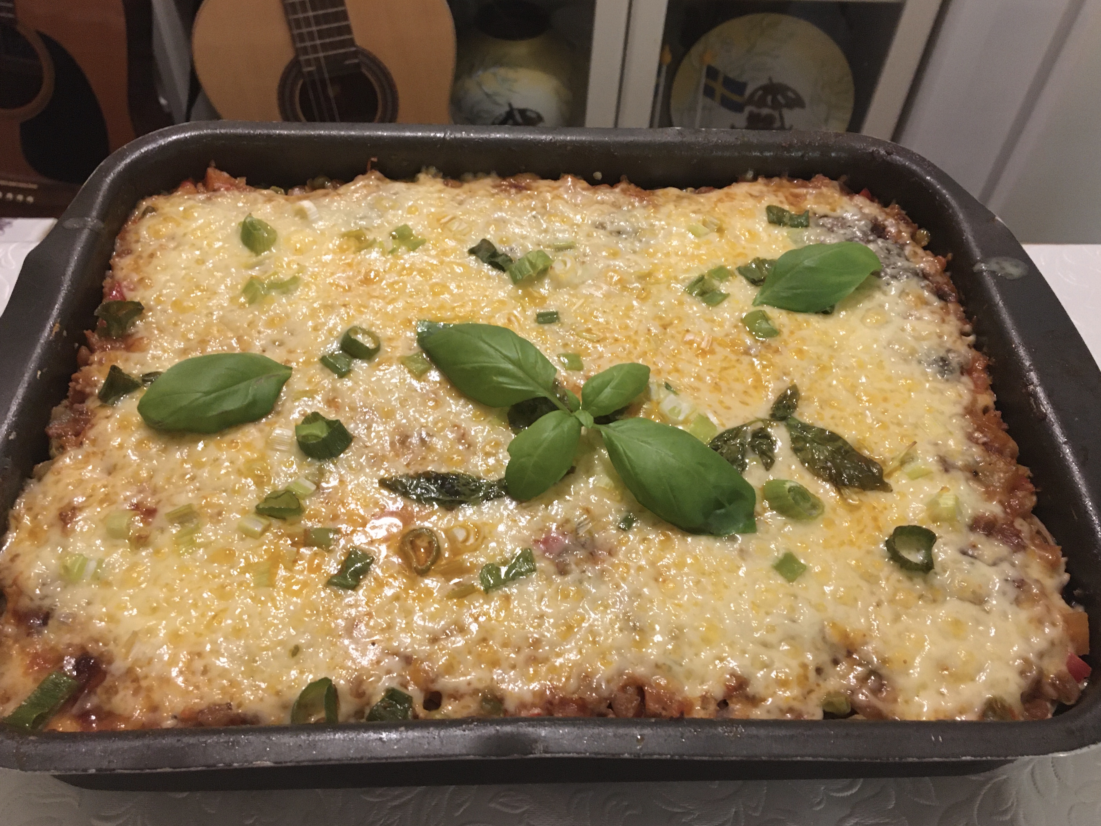 Tonight I cooked a Mexican Casserole online with Frida and Ciana in Frisco, Dallas Texas and me here in Sollentuna Sweden. For them it is Labour Day Weekend. So we made a special casserole we named ”Three Way Mexican Casserole.” It can be eaten as a breakfast casserole in the Holidays or a main course for dinner. For me I will have many lunches and dinners to look forward to.