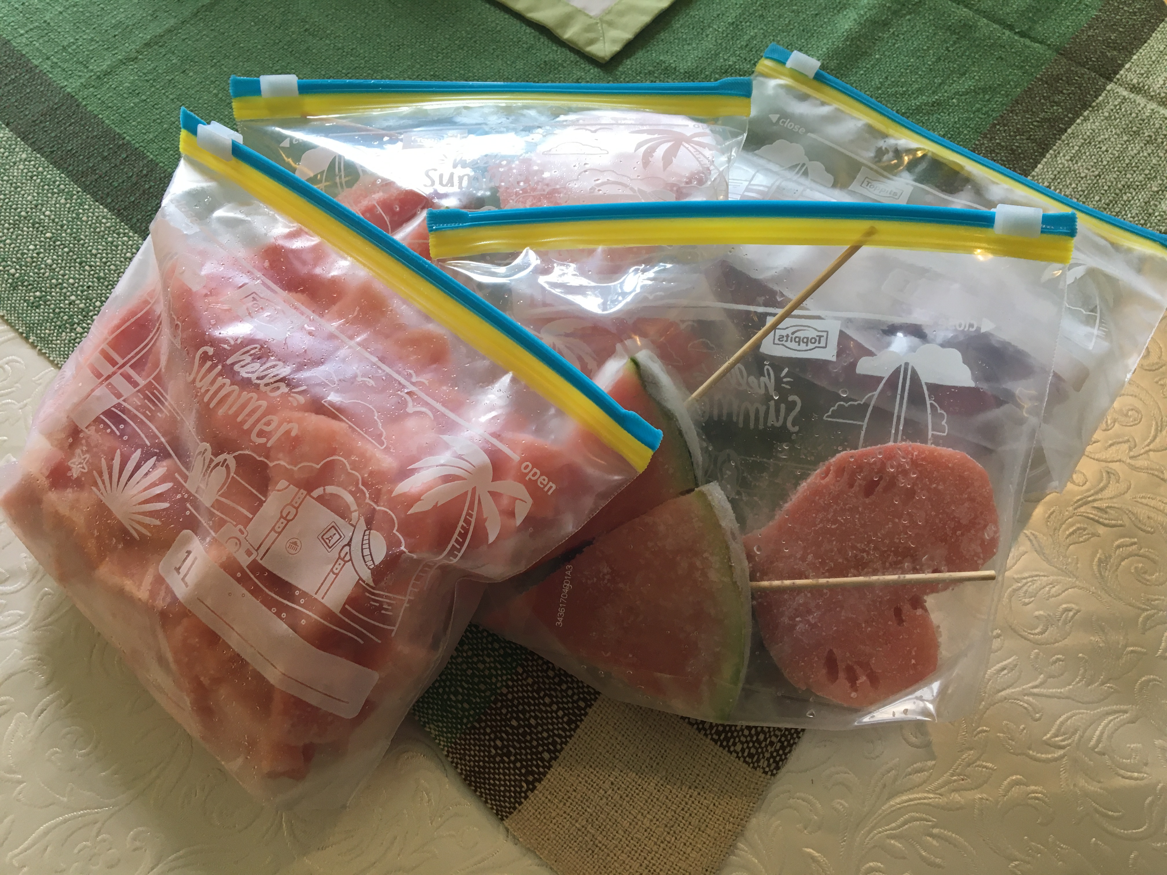Today is Watermelon Day😀! There is nothing better a warm day than a slice of watermelon. I love to take it with me to the beach or on a picknick. However here is a tip to save a 🍉 if you need to or want a great cold drink or snack! You can freeze watermelon. Cut small cubes and freeze and use them as ice-cubes in a drink or just a glass of water. Cut them in icecreamshapes and stick a Popsicle stick in each. Freeze and you have a watermelon icecream!