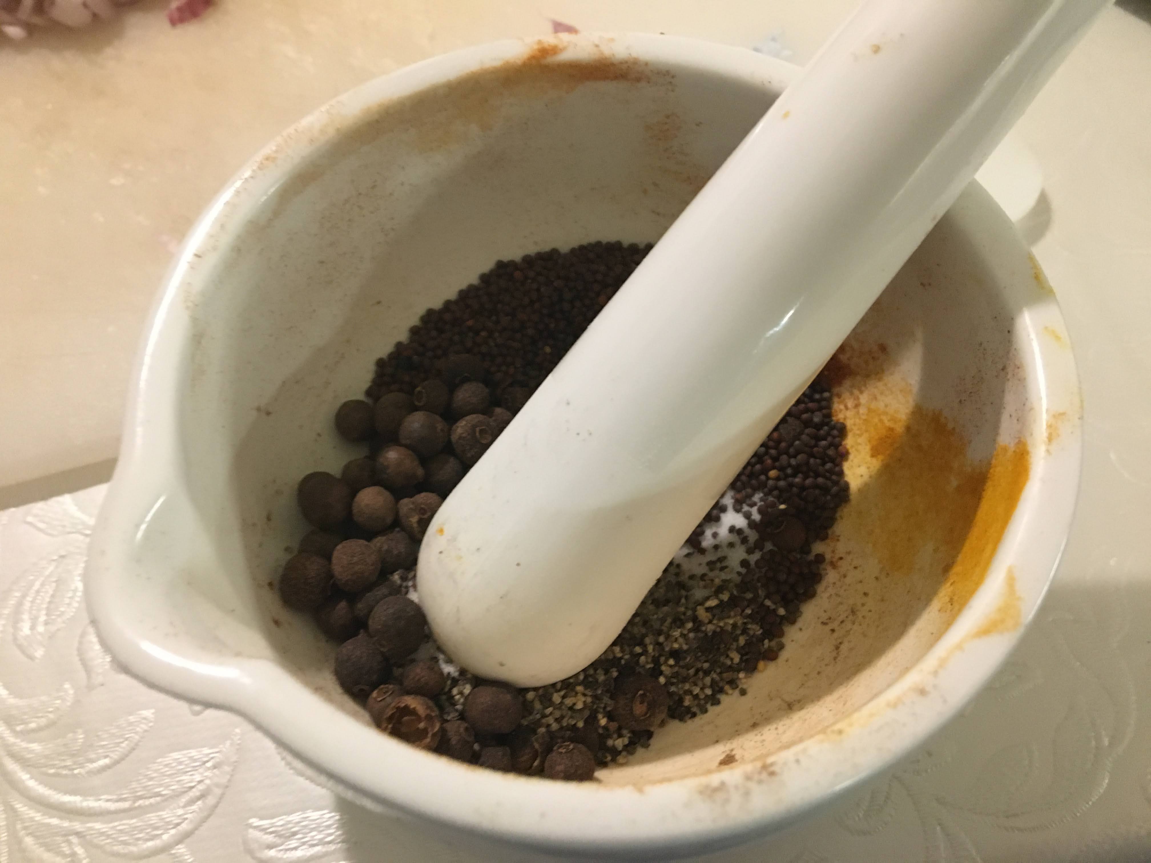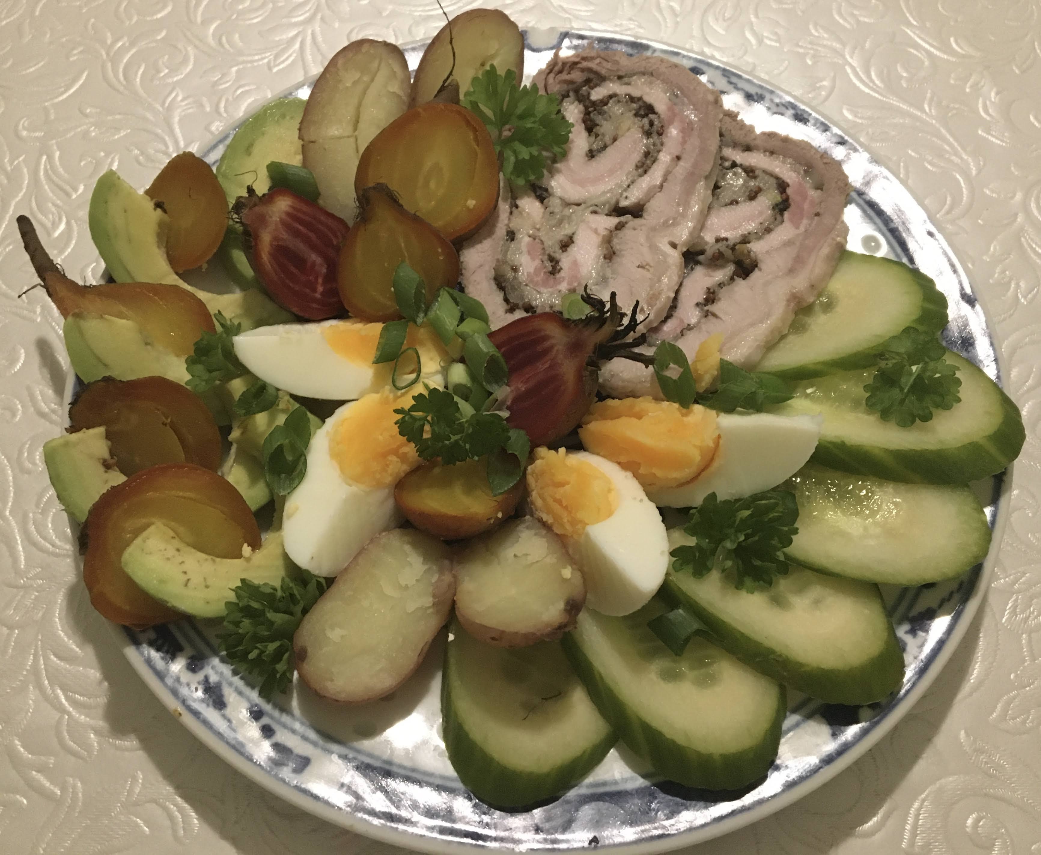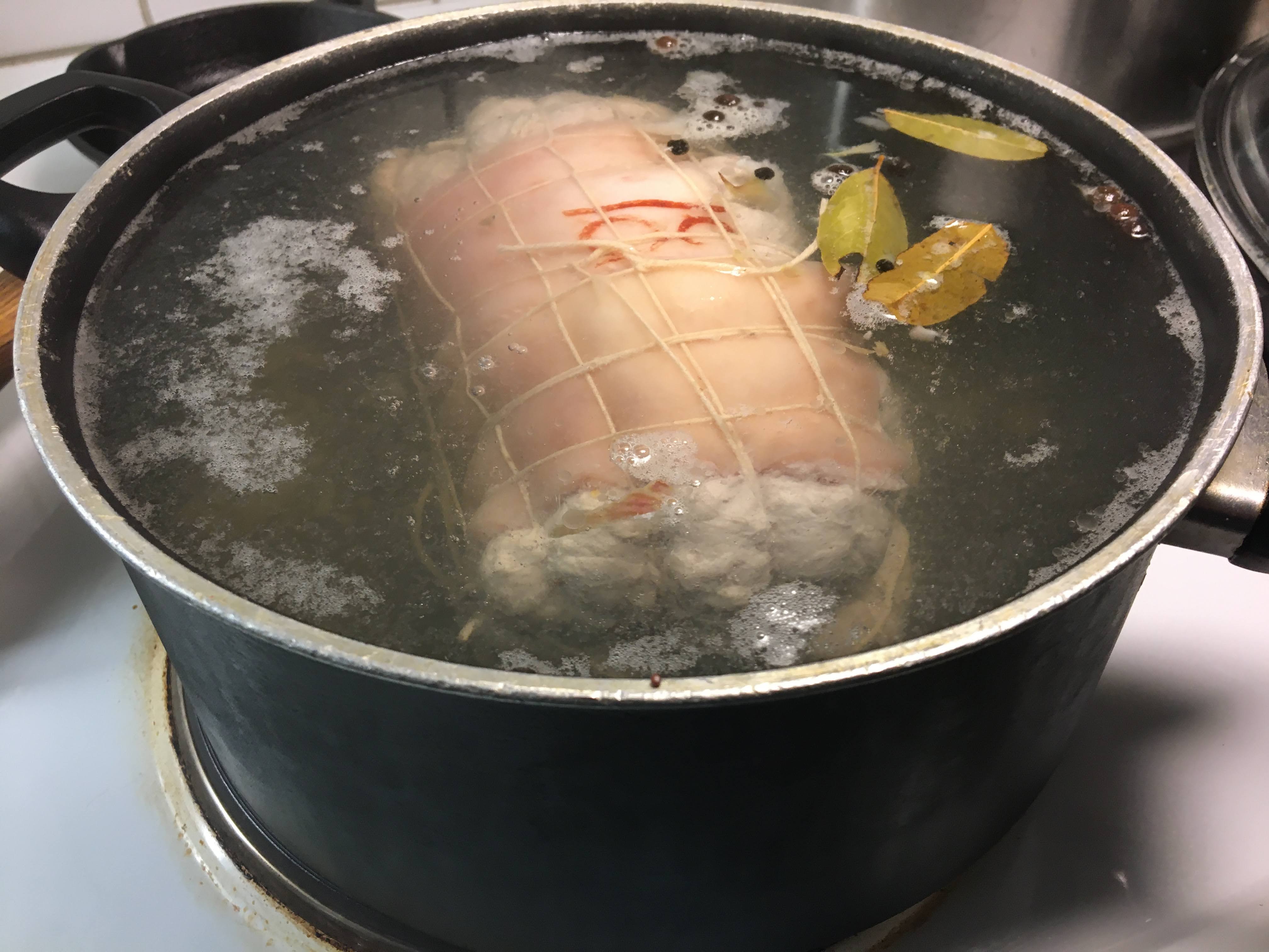 Growing up in Norway on a farm we used to slaughter a pig for Christmas. From the meat we had food throughout the coming year. My mom used everything on the pig. I now tried to make one special pressed ham she would make especially for the holiday. We would eat this as cold cut on bread for breakfast and on sandwiches as an evening meal coming in from the barn. The spices made the kitchen smell Christmas.