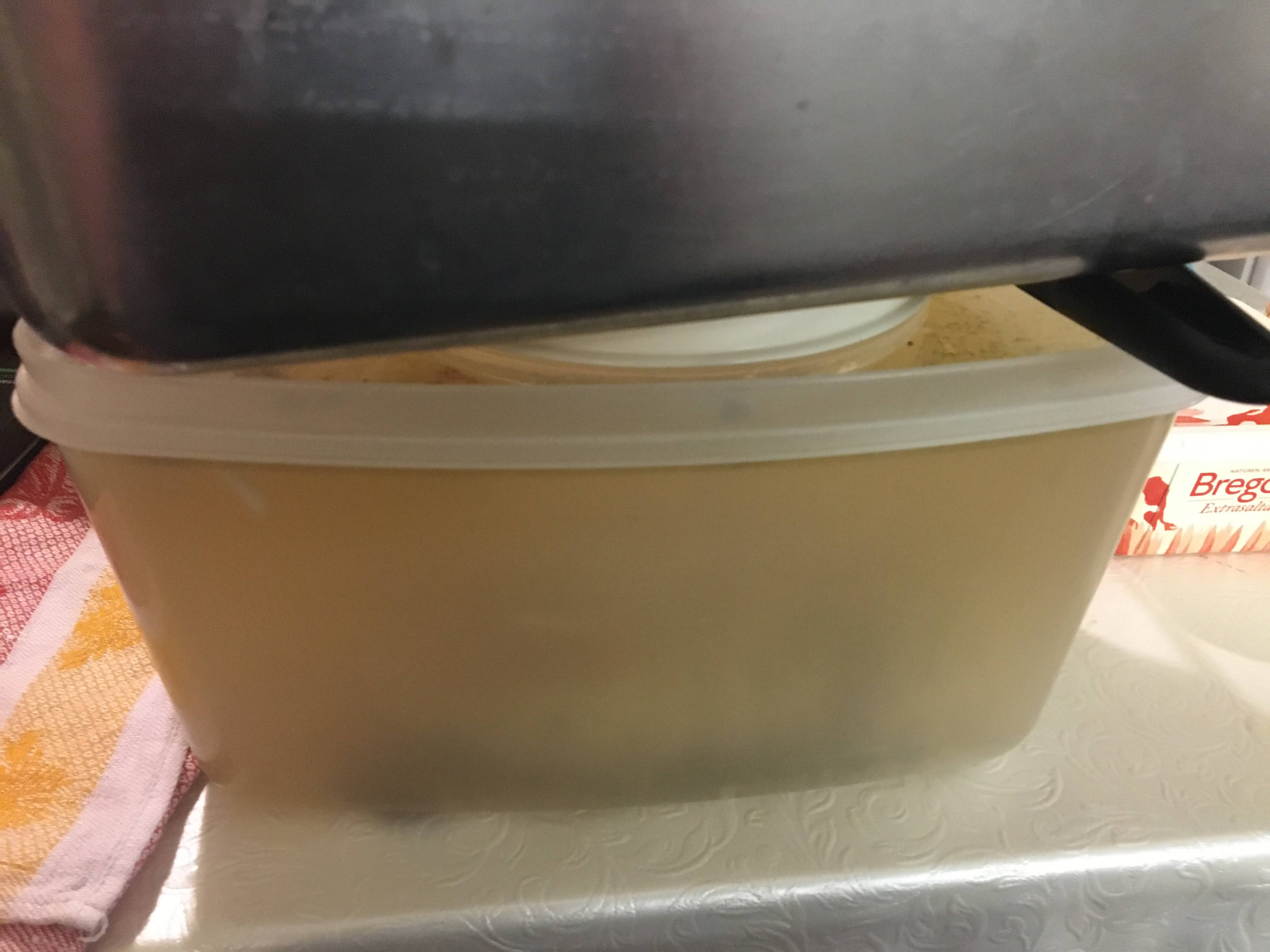 The broth will solidify. After the roll has been under pressure, remove it from the solidified broth. Wrap it in foil and store in the refrigerator. Now you can cut thin slices that you can have as a cold cuts on sandwiches or as a cold cut for the buffet table.