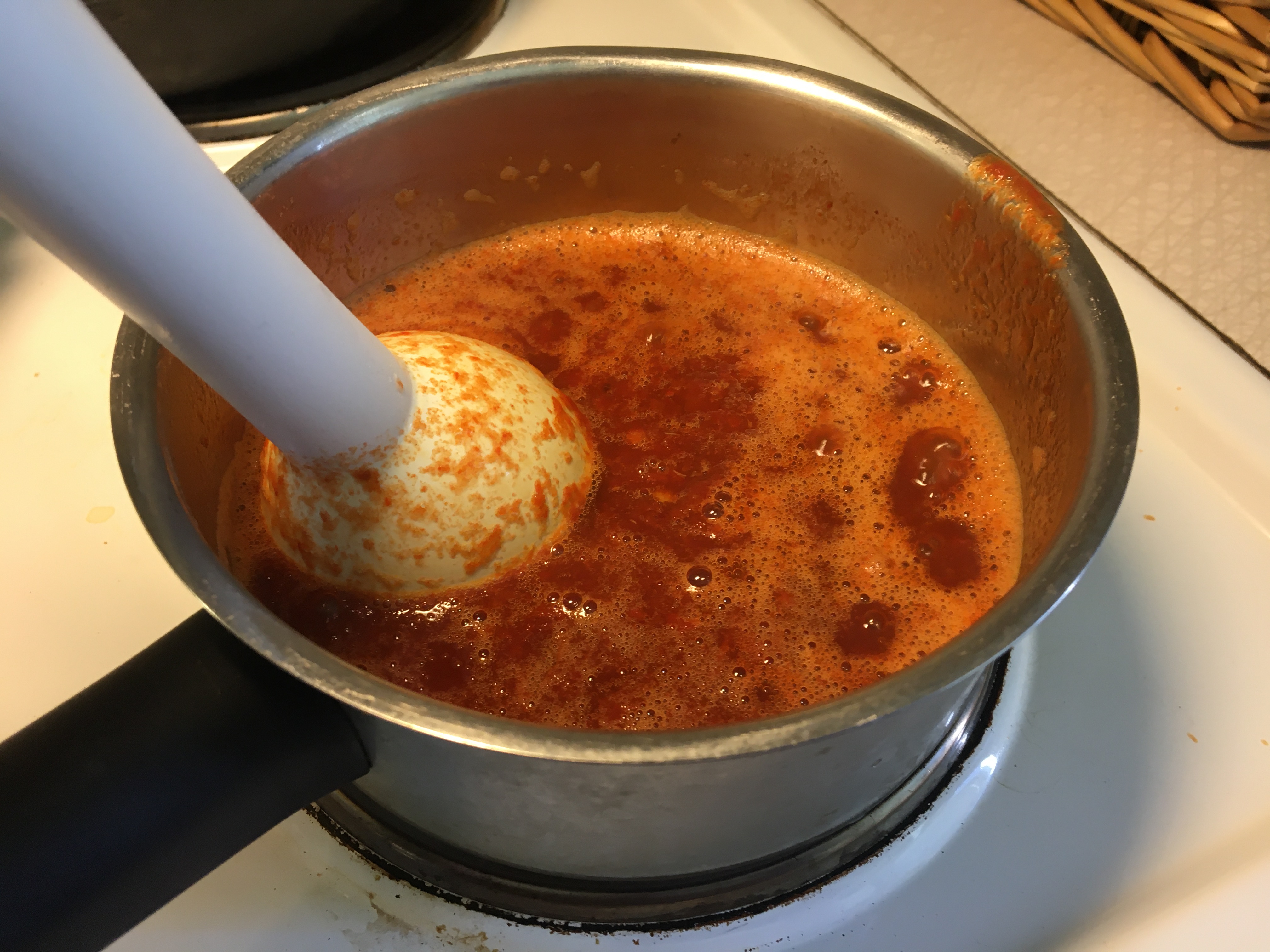 Pour the blended mixture into a saucepan and simmer (covered) on a low heat for 20 minutes.