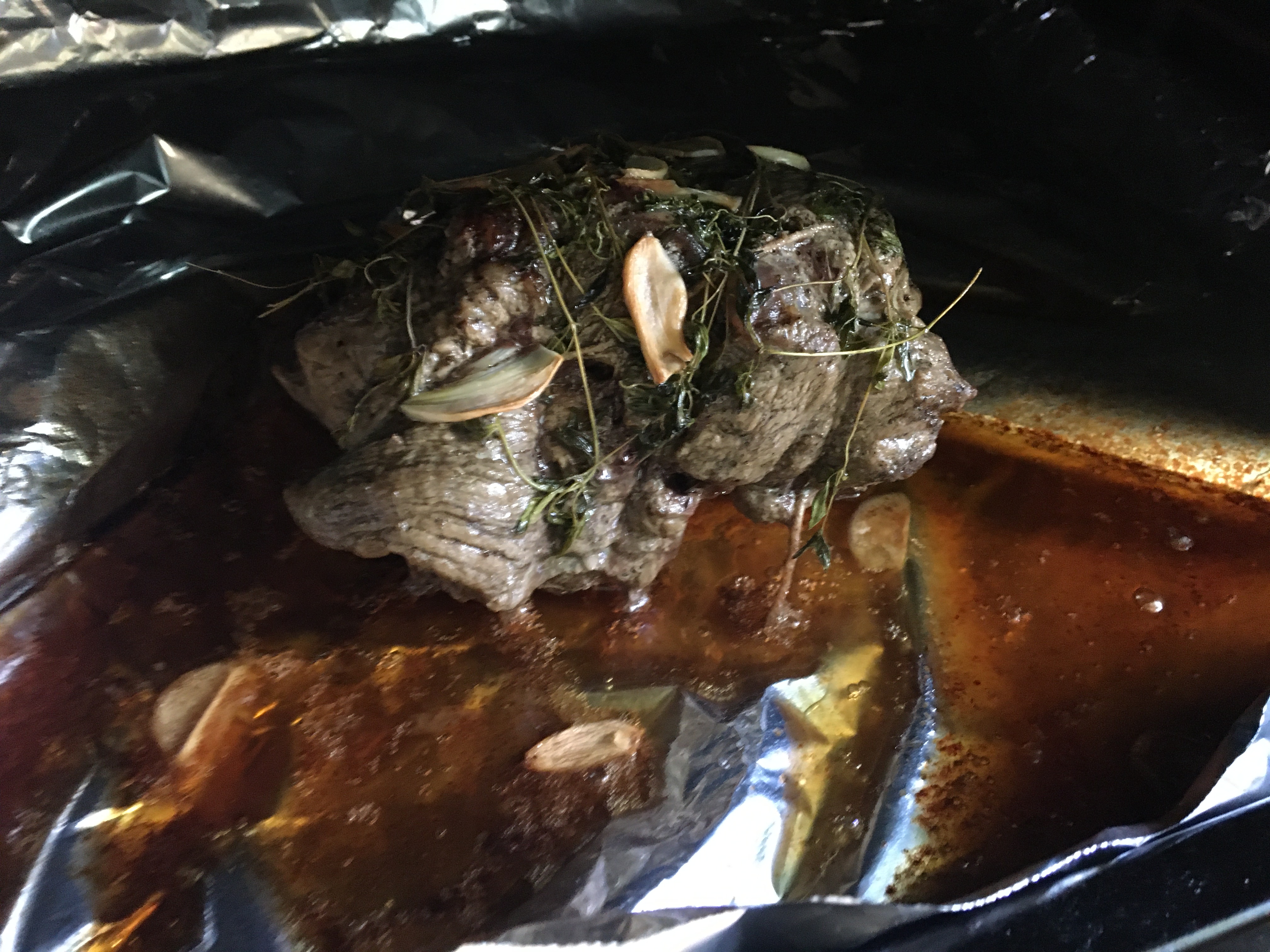 When the roast is done, leave to rest covered in the foil for 20 minutes.