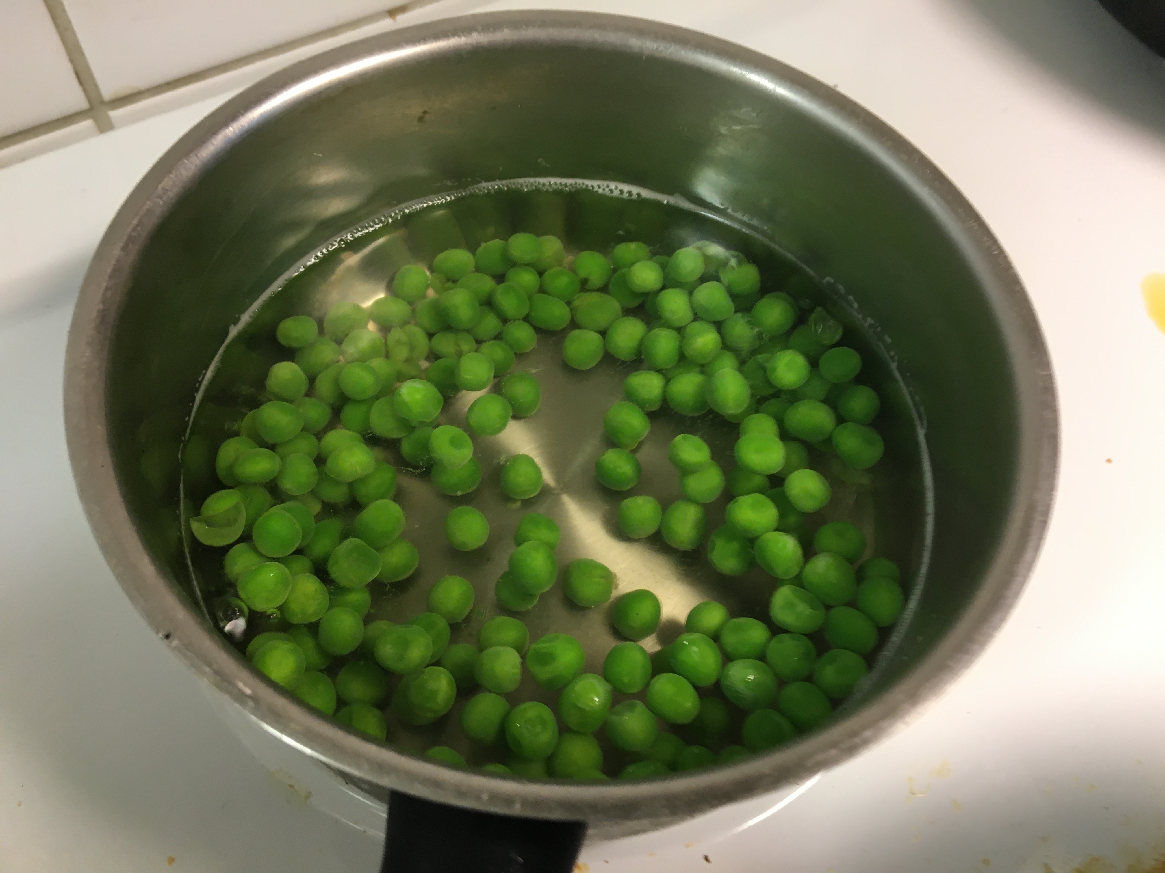 Divide the sugarsnaps lengthwise, chop the almonds and rinse and chop the parsley.