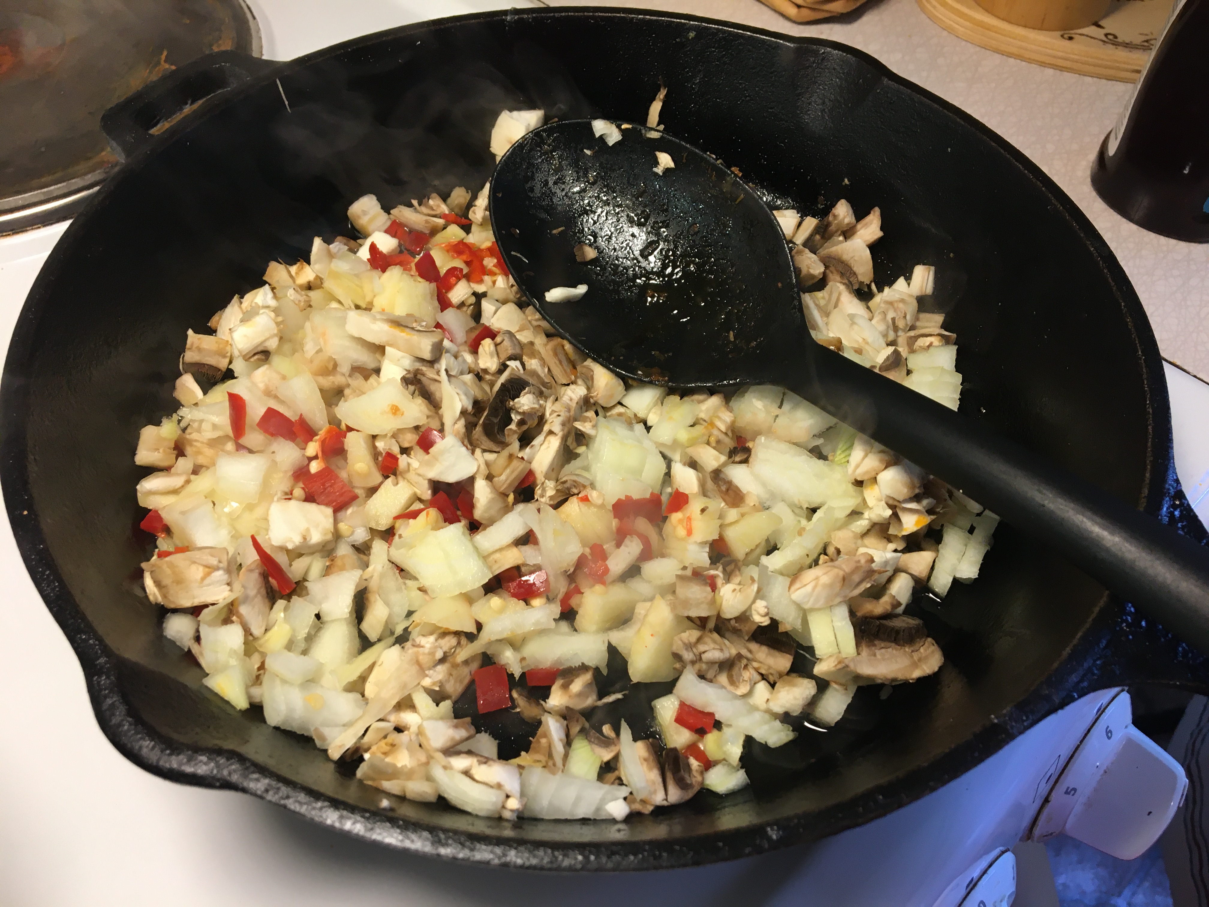 In a skillet over medium heat cook chopped mushrooms until brown and most moisture has been released, about 3-5 minutes. Set aside to let cool.