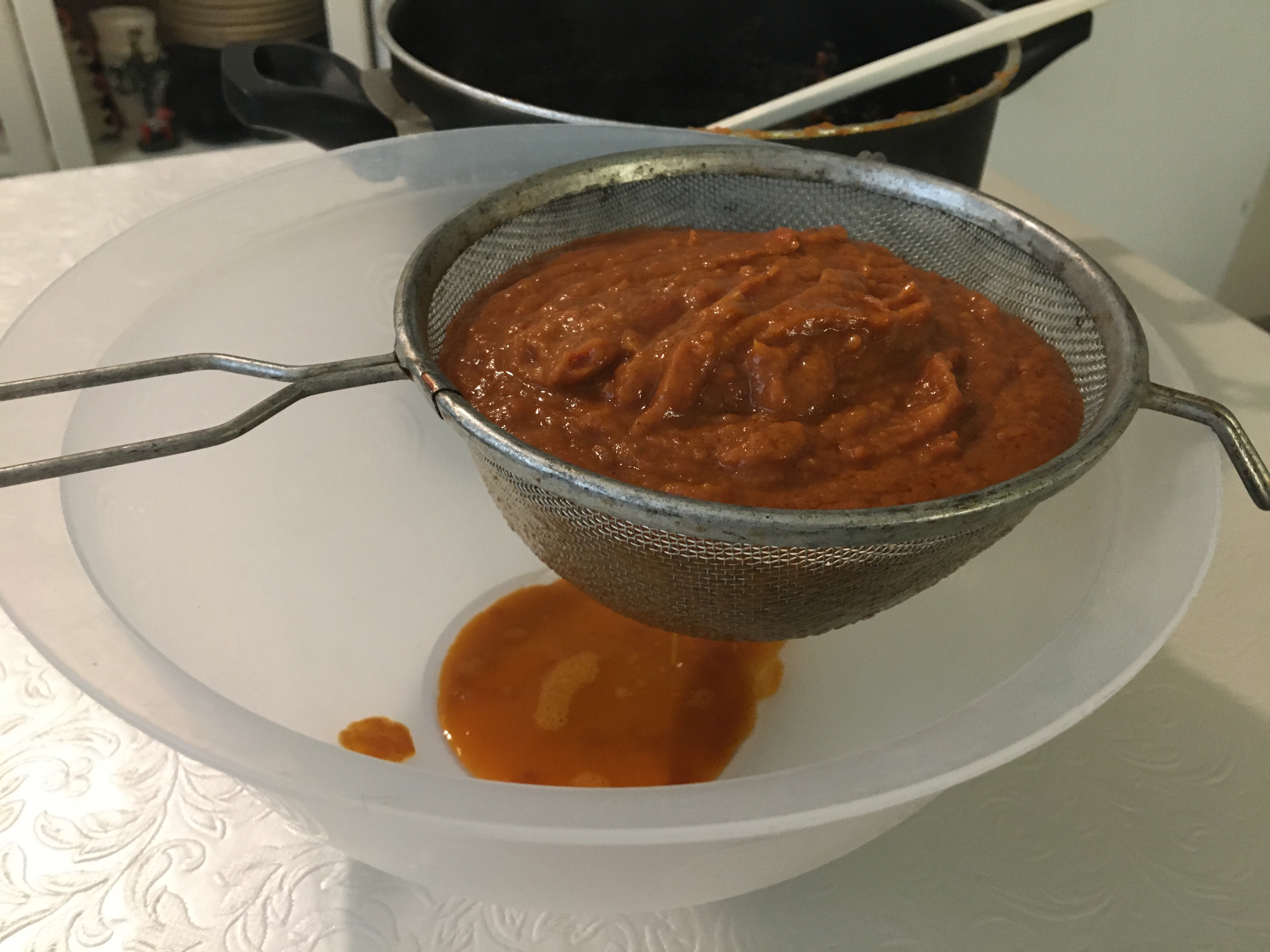 If you have fresh tomatoes you can skin them before roasting. To do that cut a cross in one end. Put them in boiling water for a minute. Take out and place in a bowl with icecold water (put icecubes in). Then it is really easy to remove the skin.