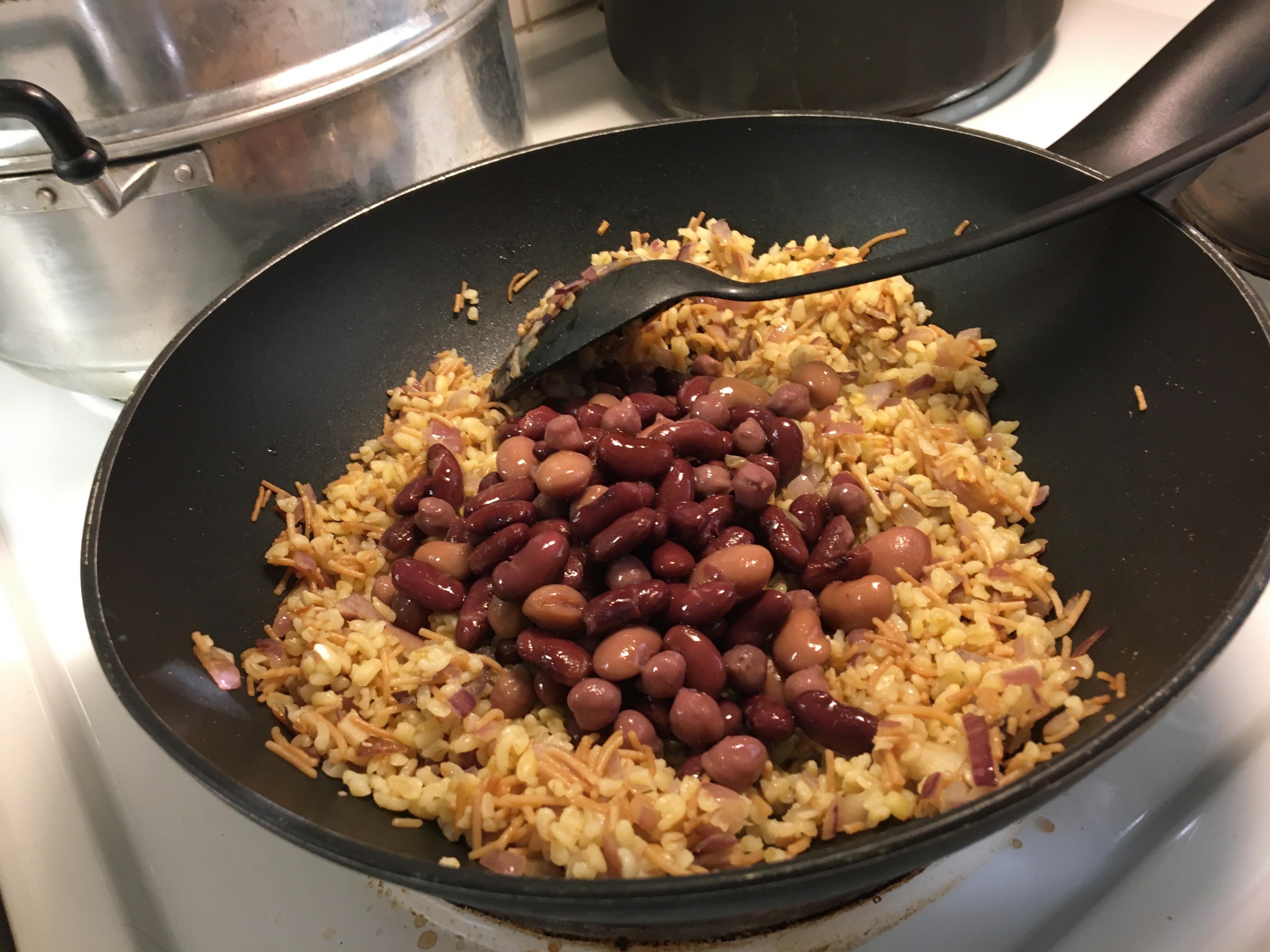Drain and rinse the mixed beans and add to the pan.