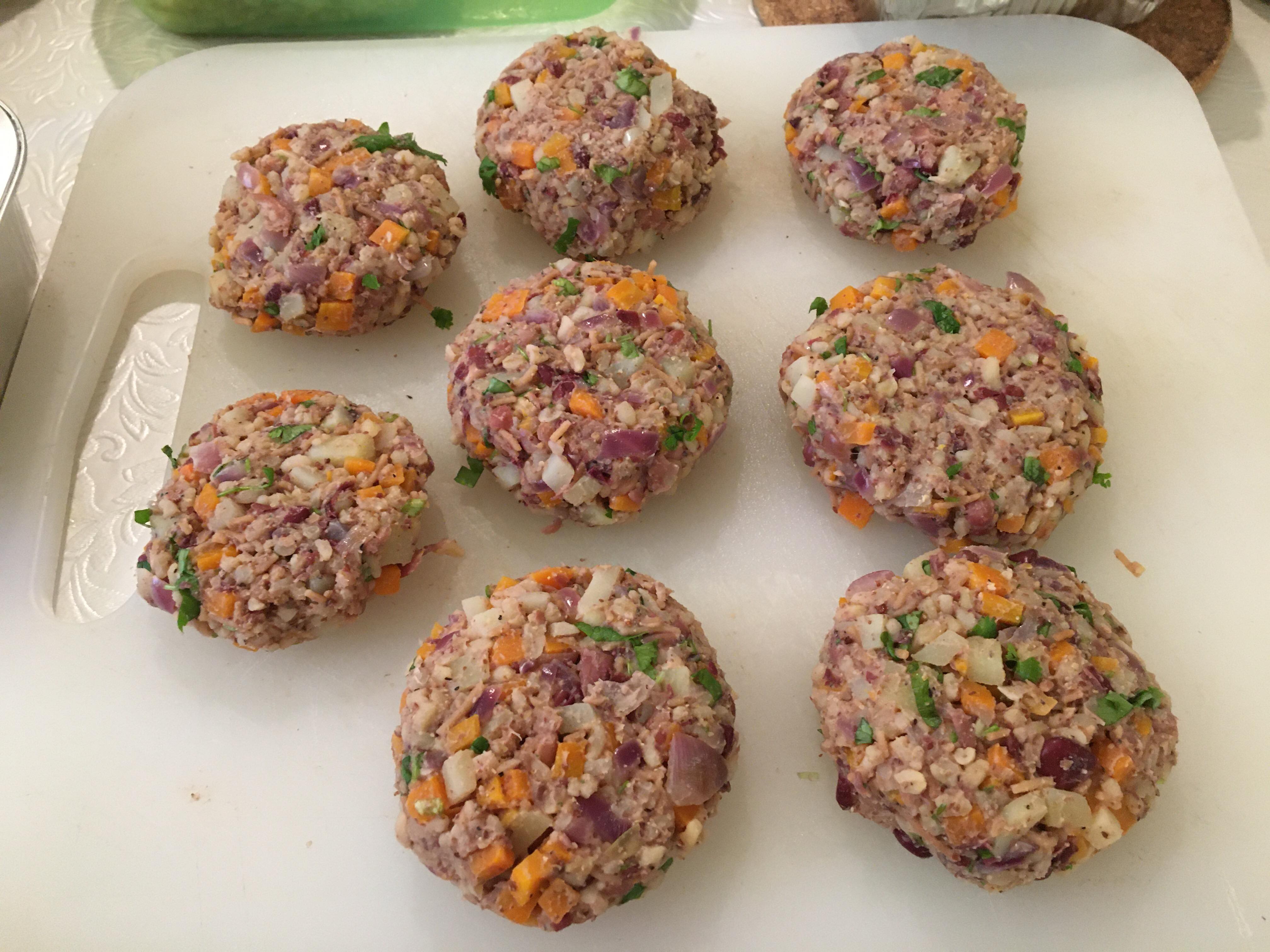 Mix the sweet potato into the mixture, add 1 tablespoon of tamari, Chop coriander including the stalks and add to the mixture and mix well, then form into 4 patties.