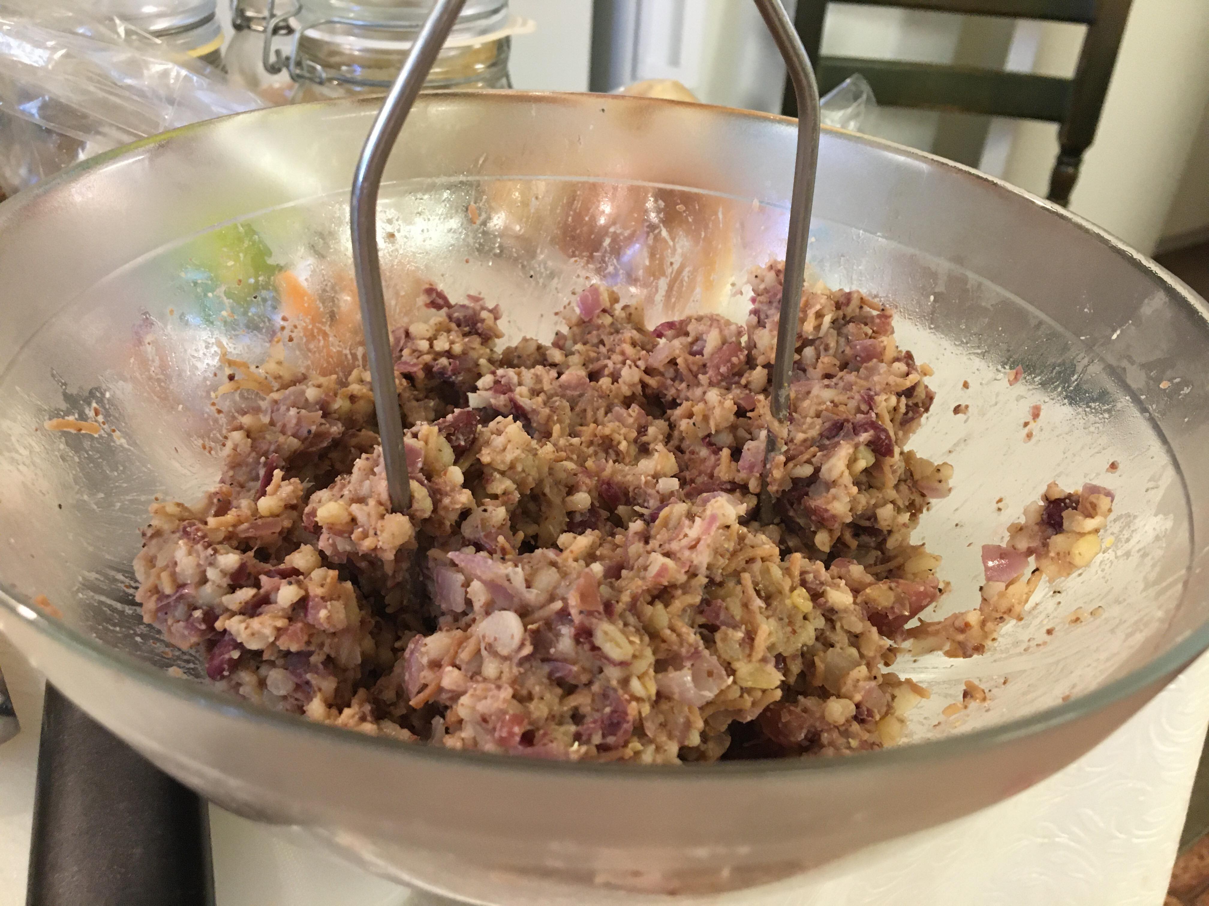 Transfer the burger mixture into bowl, mash together.