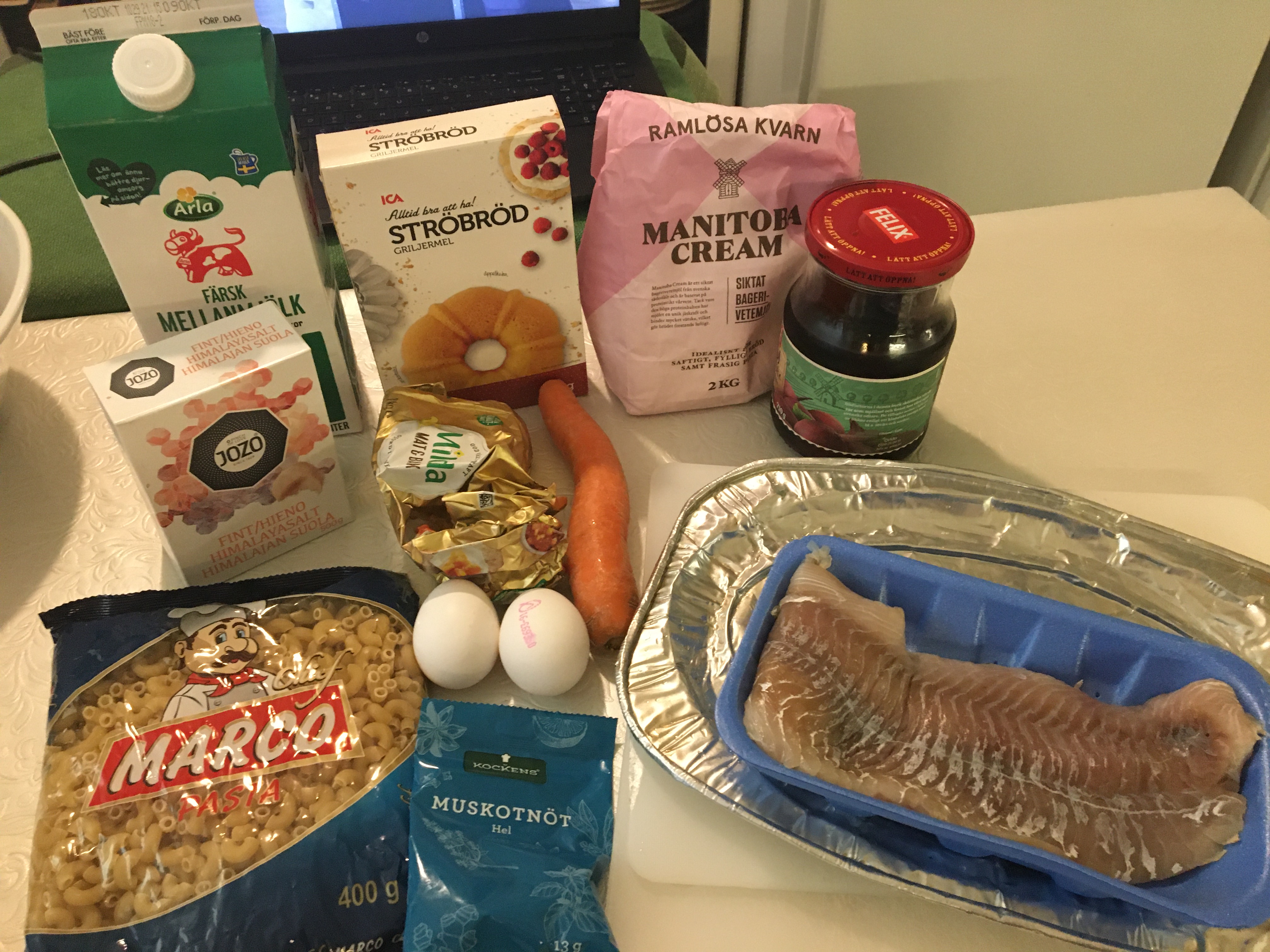 Ingredients for “Fiskegrateng” (Fish and Macaroni Casserole)