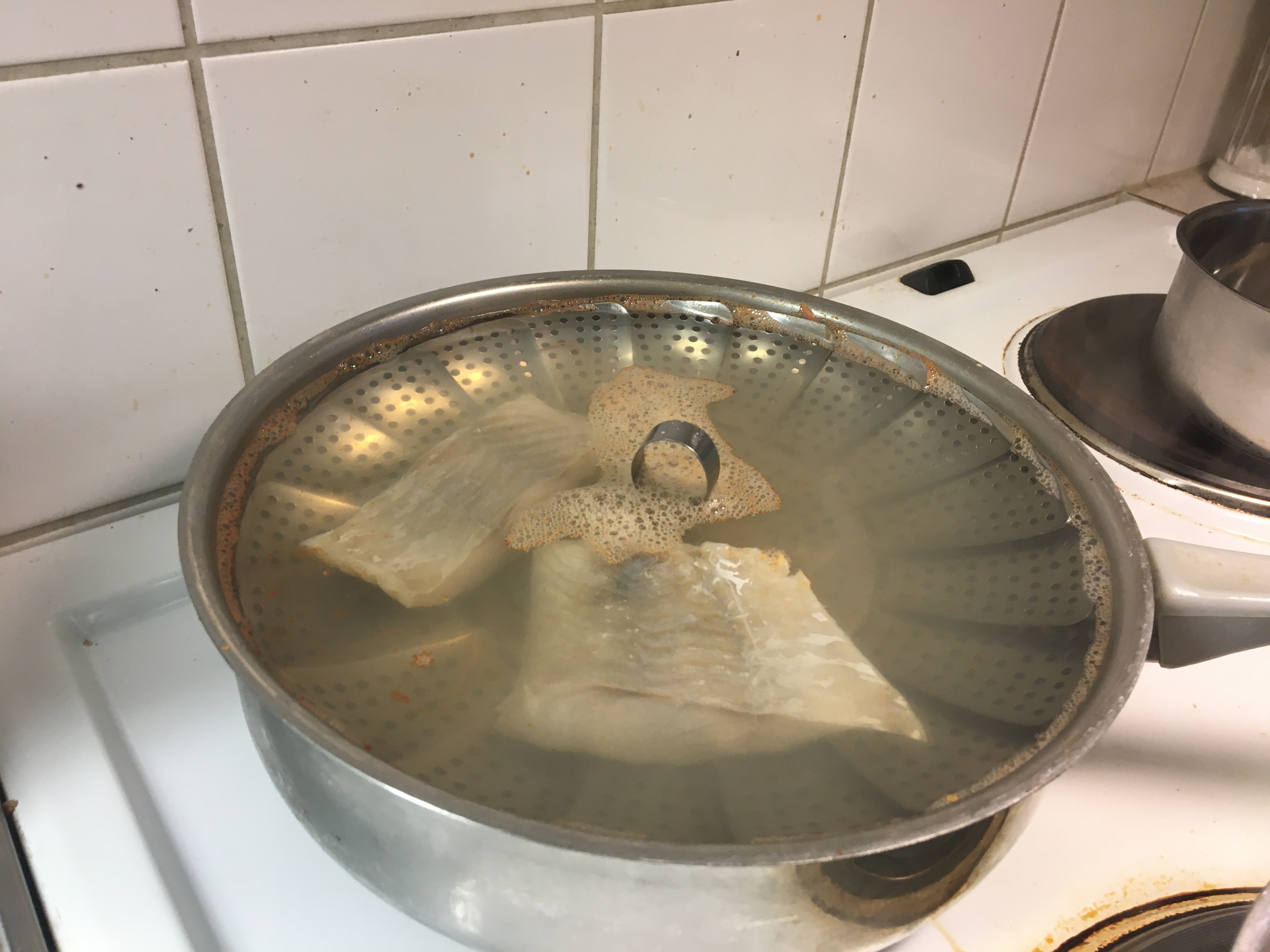 Following my mothers recipe from the restaurant kitchen it is as always large quantities. She made from both fresh fish and with already cooked fish. Now I am using fresh fish.