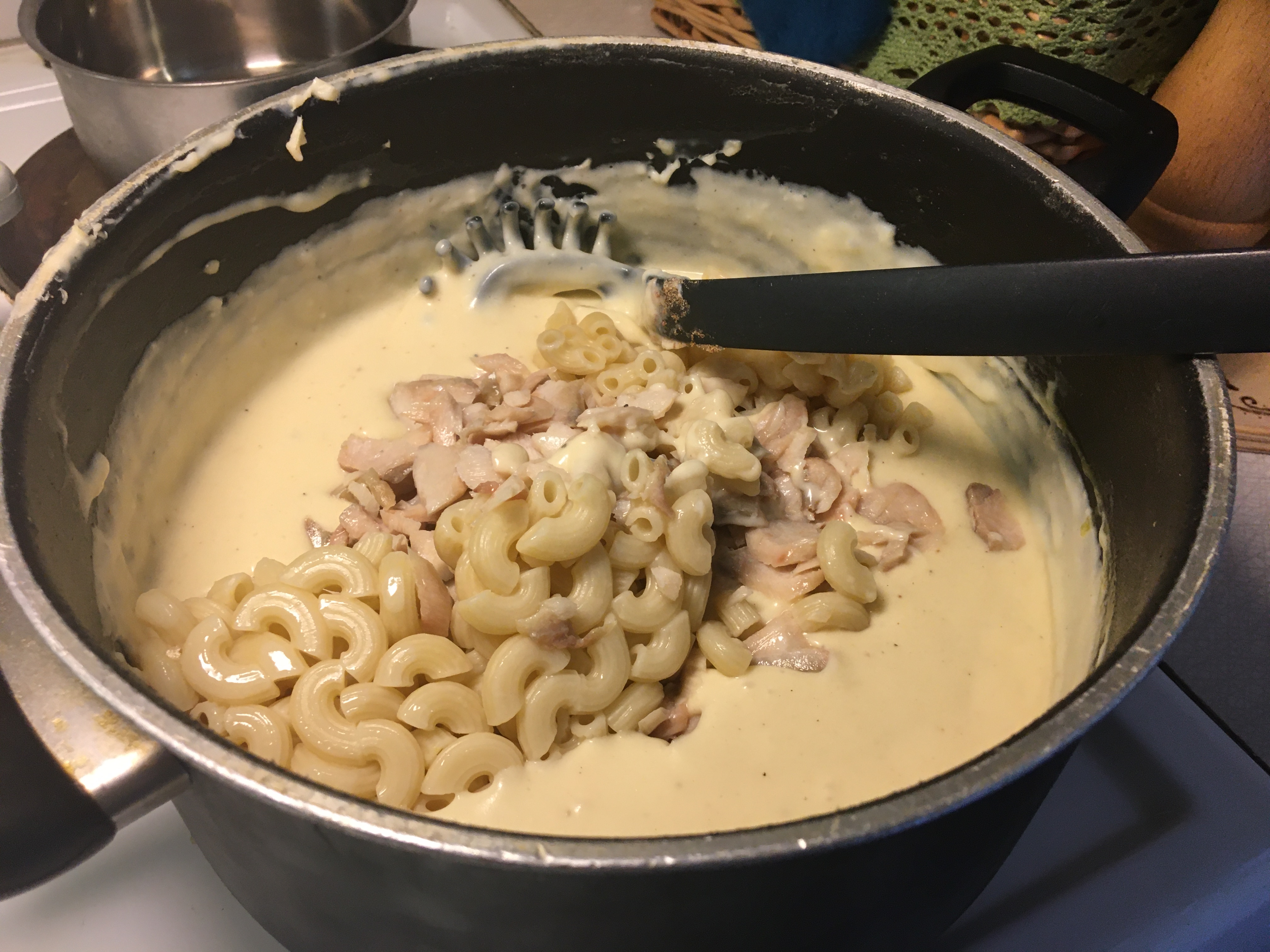 “Fiskegrateng” is a dish my mother used to make as an everyday meal to make use of leftovers from fish. It is a casserole with fish, macaroni and Bechamelsauce. It is served with potatoes and carrots and even beetroot and topped with clearified butter or just melted butter. It could also be made with fresh fish. However it was an economical way to use all leftovers and make a new dish. Also in Norway fish is actually on the menu at least three days a week if not four. This caserole is really low budget especially if using leftover fish.
