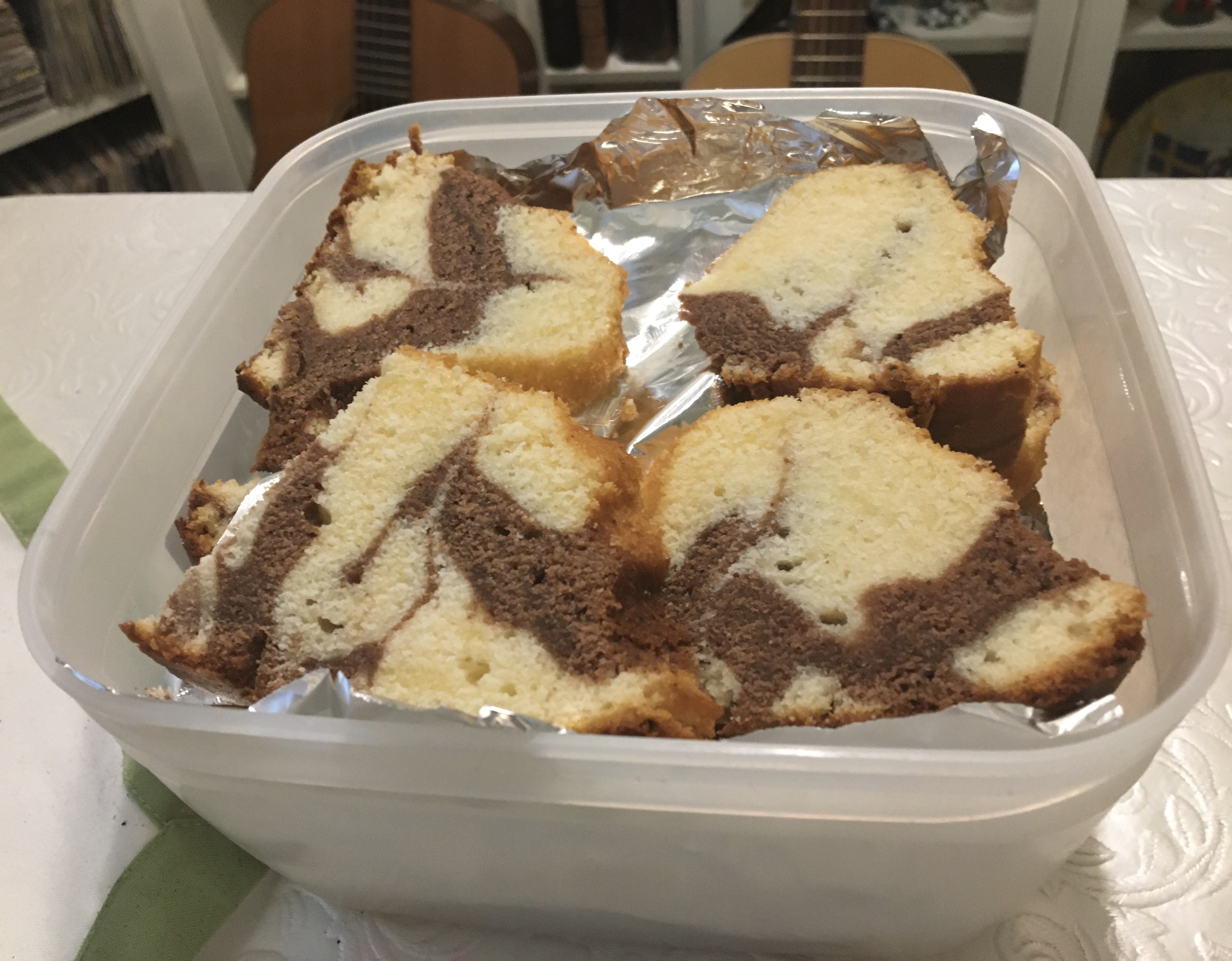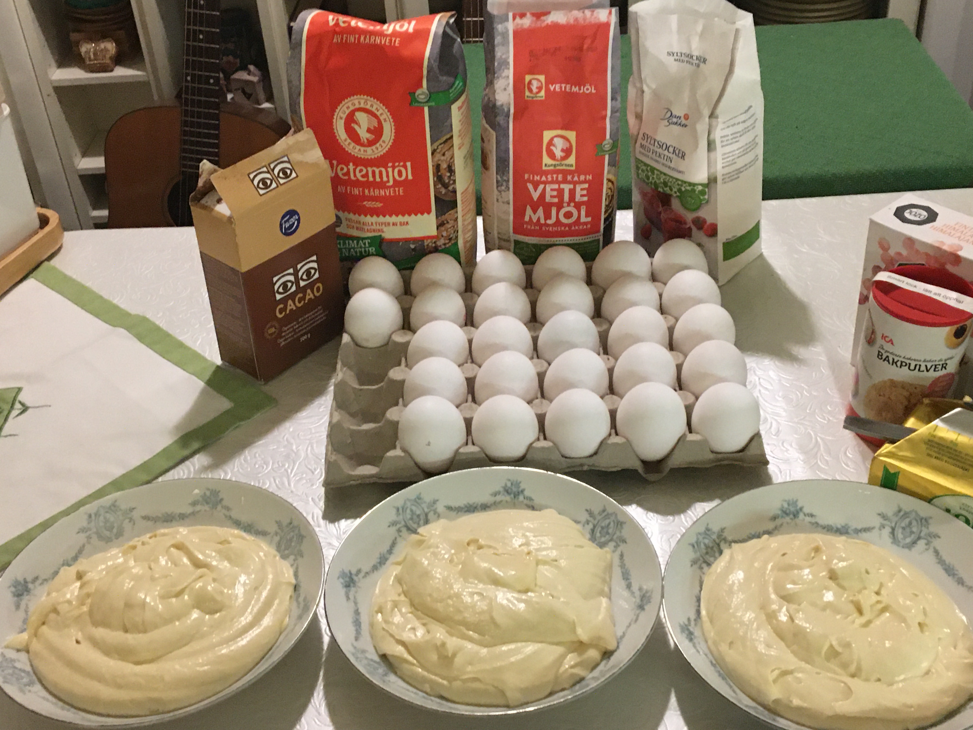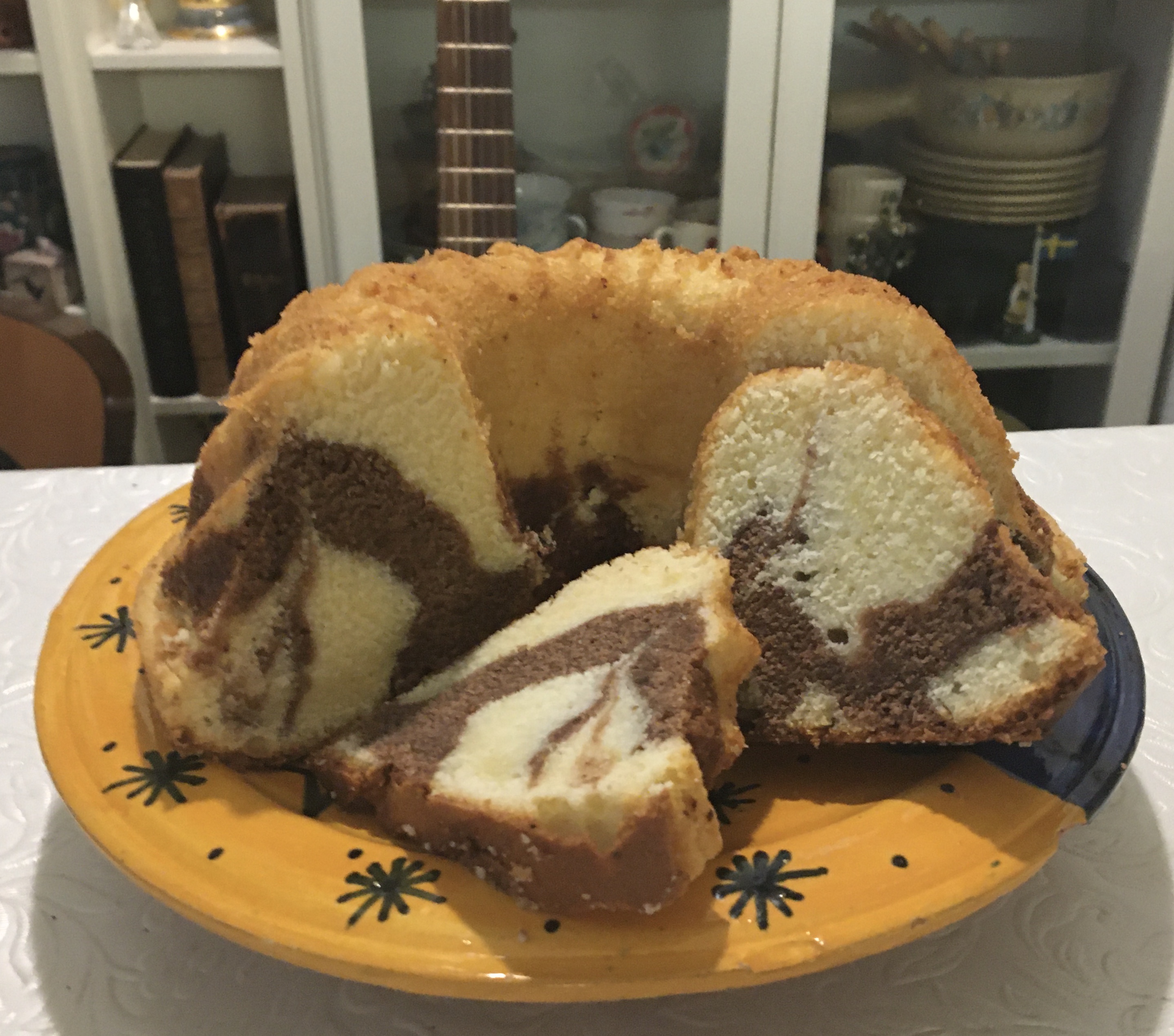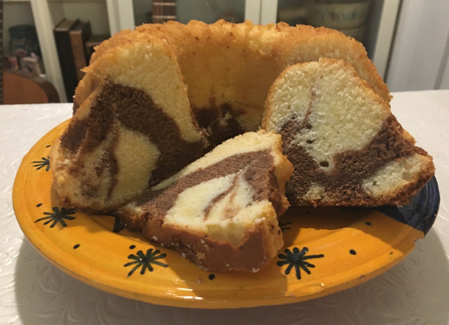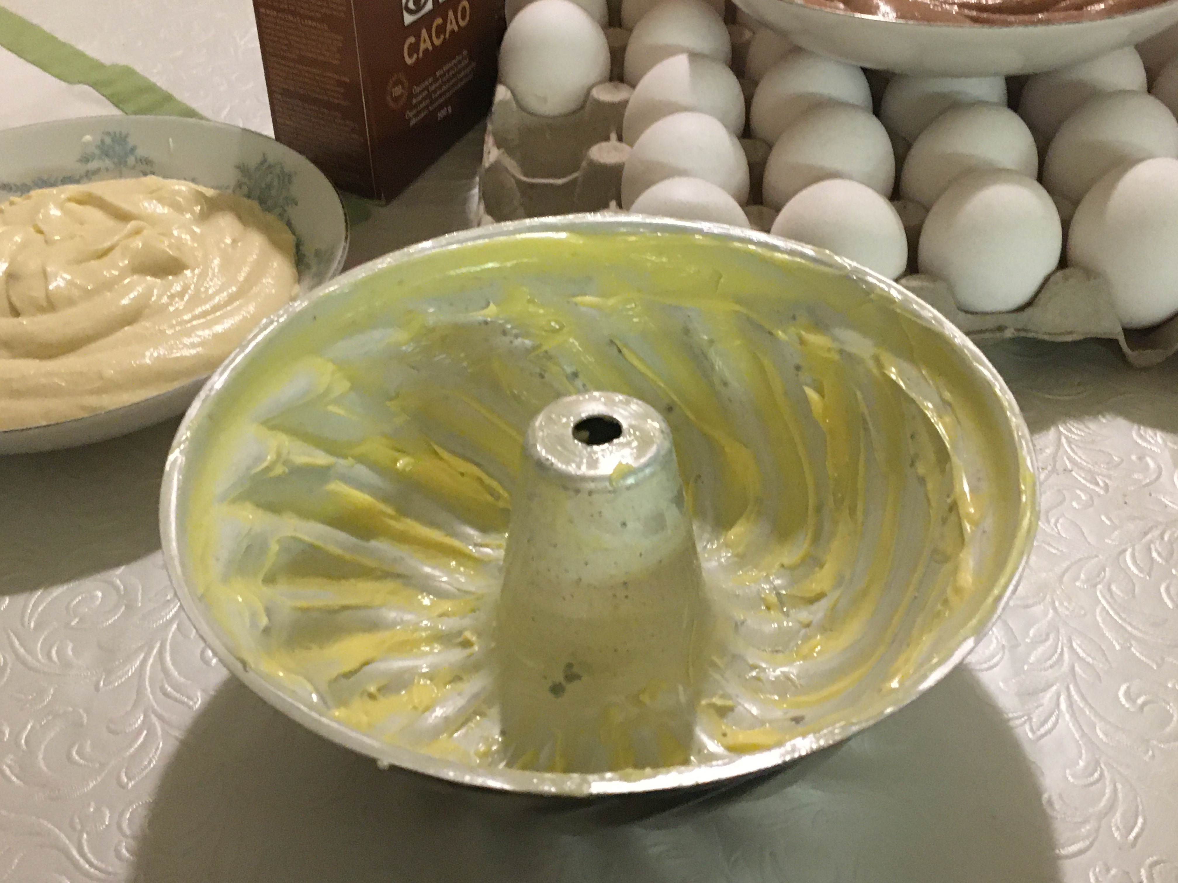 My mother used to make Marble Cake. I thought it was very impressive when I grew up, how she could make the pattern inside the cake. I cannot remember I have made this since I moved from Norway actually when I was young. So I wondered if it is still being made. As I searched for it I found it is made but referred to as “An Old Fashioned Formkake”. Formkake is a Norwegian term for a lot of coffee cakes that you bake in a pan and than cut in smaller pieces. So this is one out of many. Anyways the marble is what is special with this one. Growing up my mother used to cut it and serve it like it is without any any decorations. I see when I have tried to find people making this cake today that some sprinkle icing sugar or cocoa over. Some make icing and decorates the cake before cutting. Some even poured chocolate sauce on. However I want to make it like my mother used to so I just serve it like it is, just the cake. Last night I recreated my mothers Marmorkake.