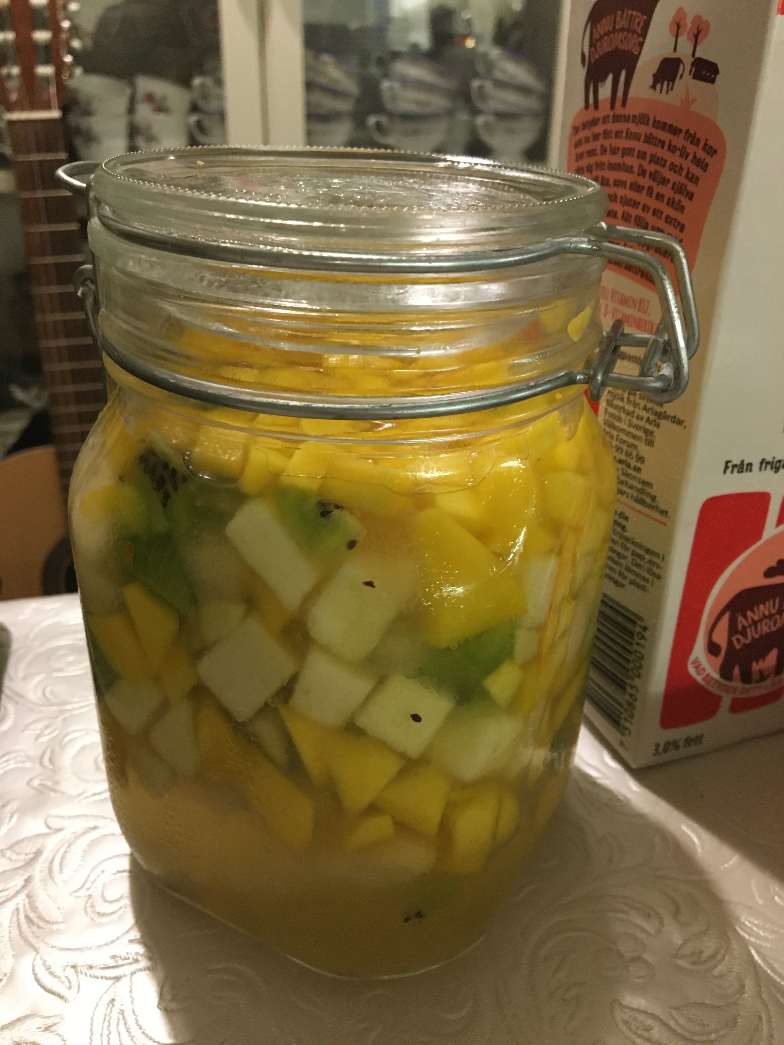 - 1 can mixed tropical fruit, drained (Reserve liquid) and diced (I didn´t have the canned so I made my own from pears, apples and mangos I had and I made my own syrup. I prepared this the day before).