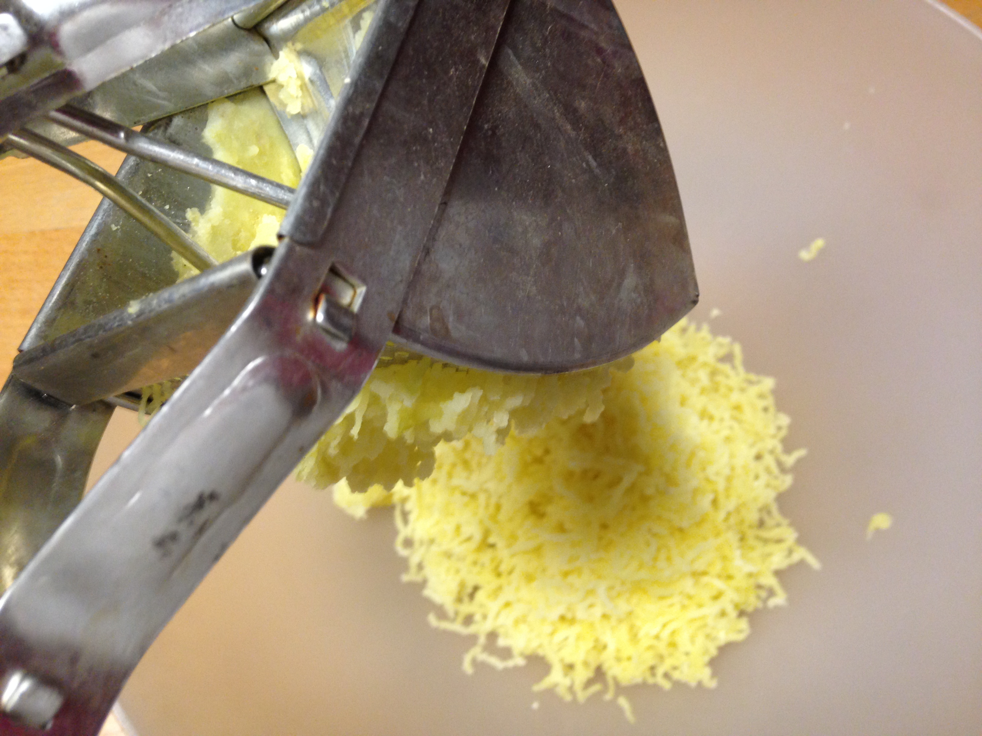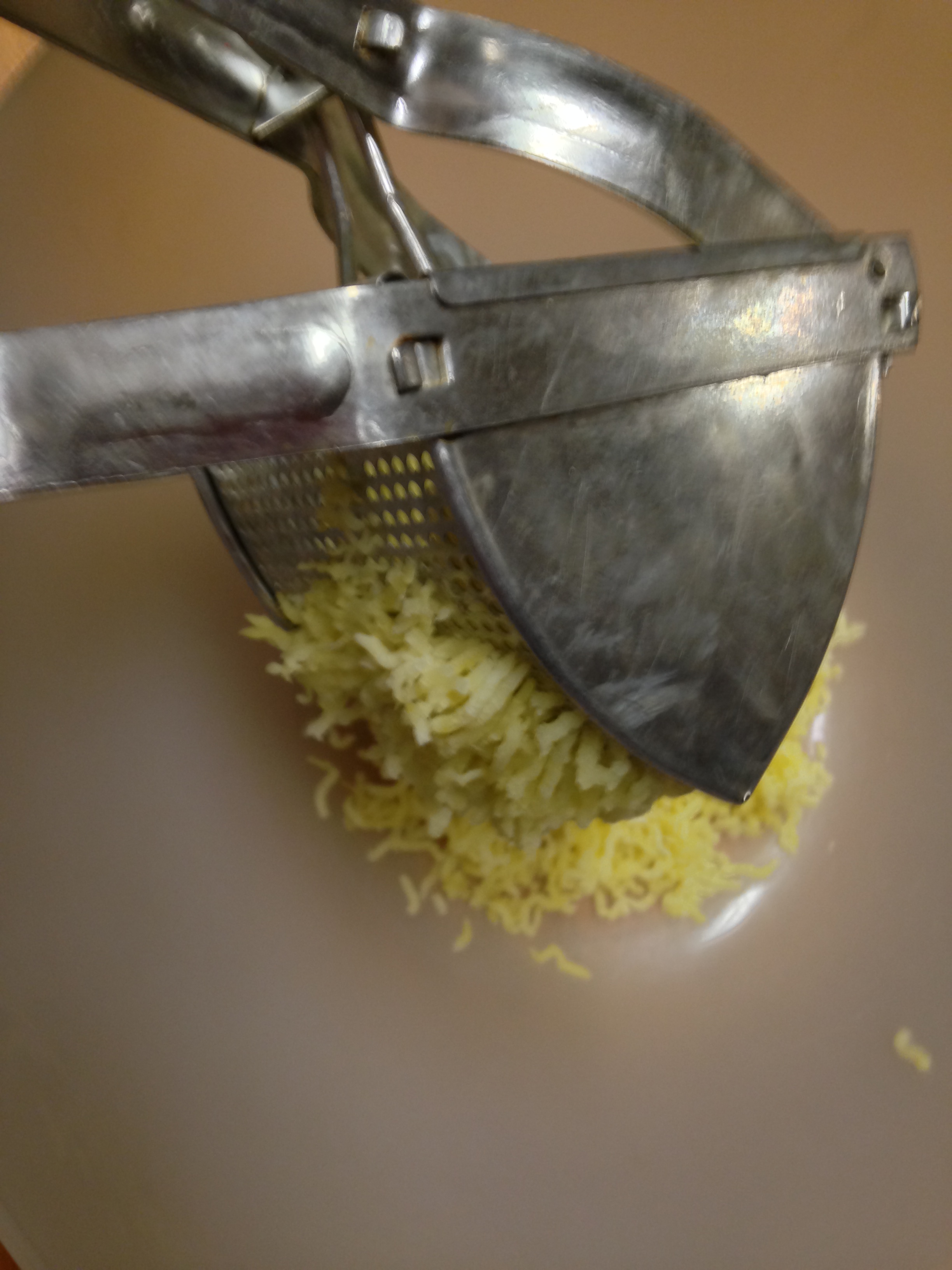 Peel and cook potatoes if you don´t have leftover potatoes.