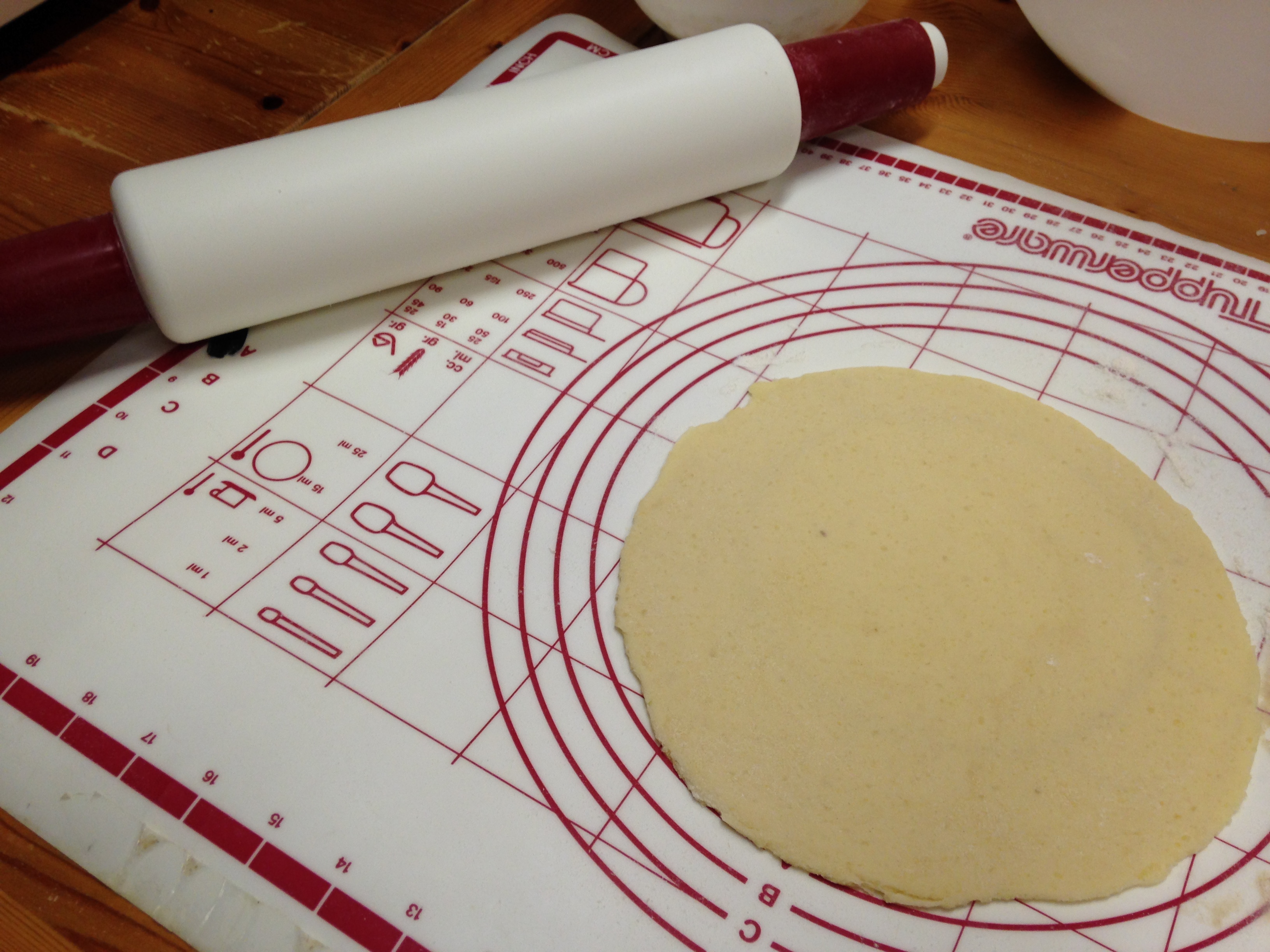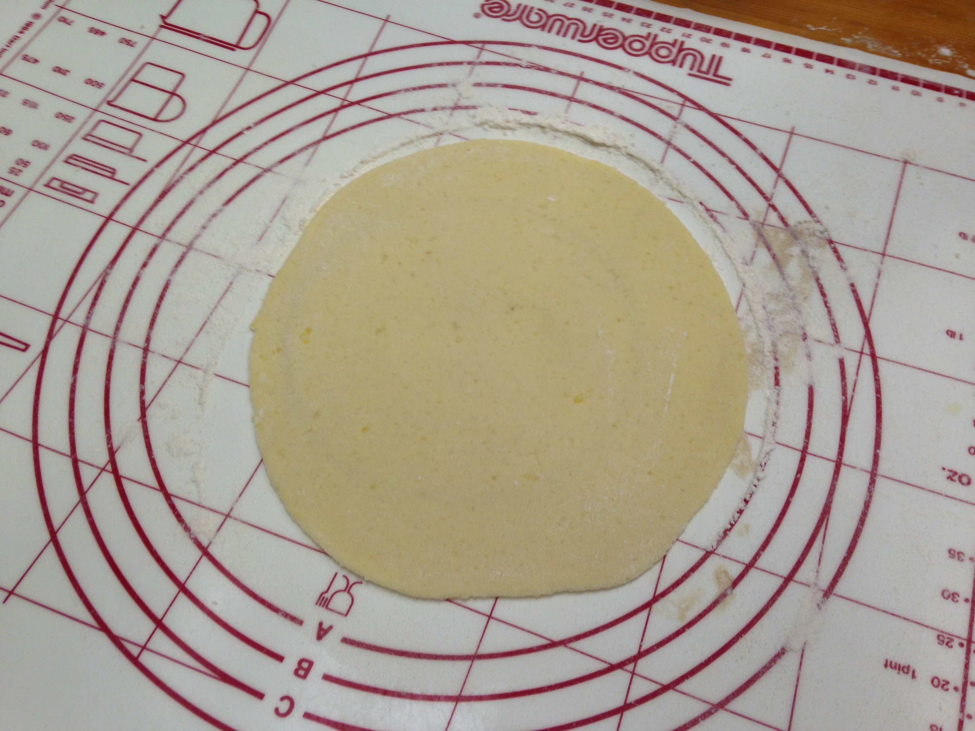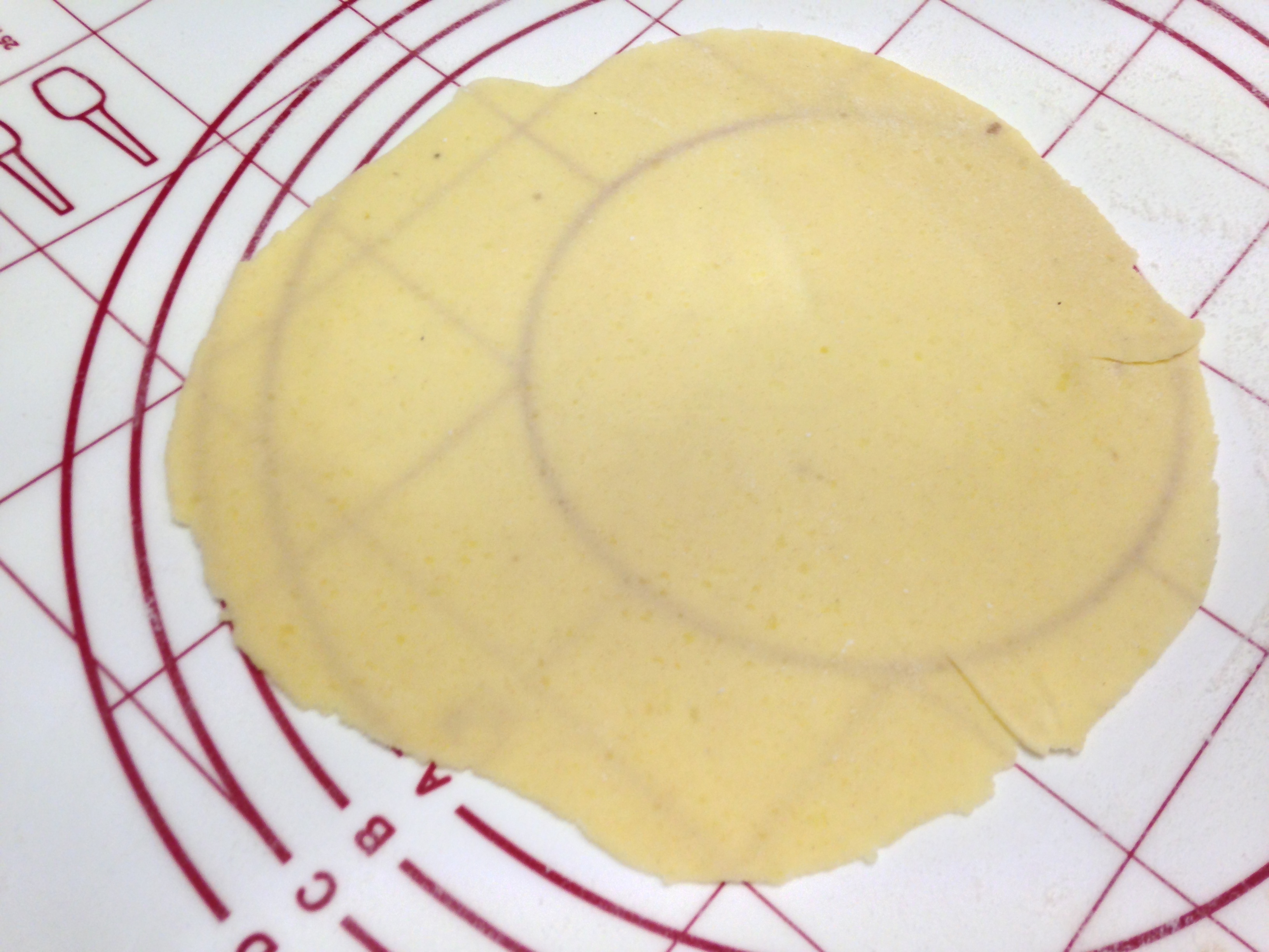 Roll out very thinly on lightly floured board (covered with pastry cloth). Use rolling pin cover or else will stick to pin. Use as little flour as you can when rolling rounds out. Use about 1/3 cup of potato mixture when making rounds.
