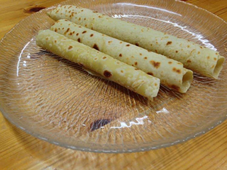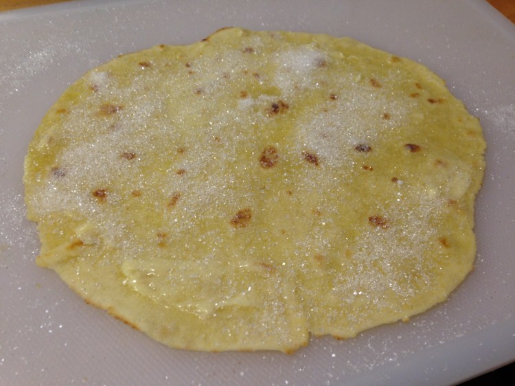 The most common is to smear it with butter and sprinkle with suger, than roll and eat.