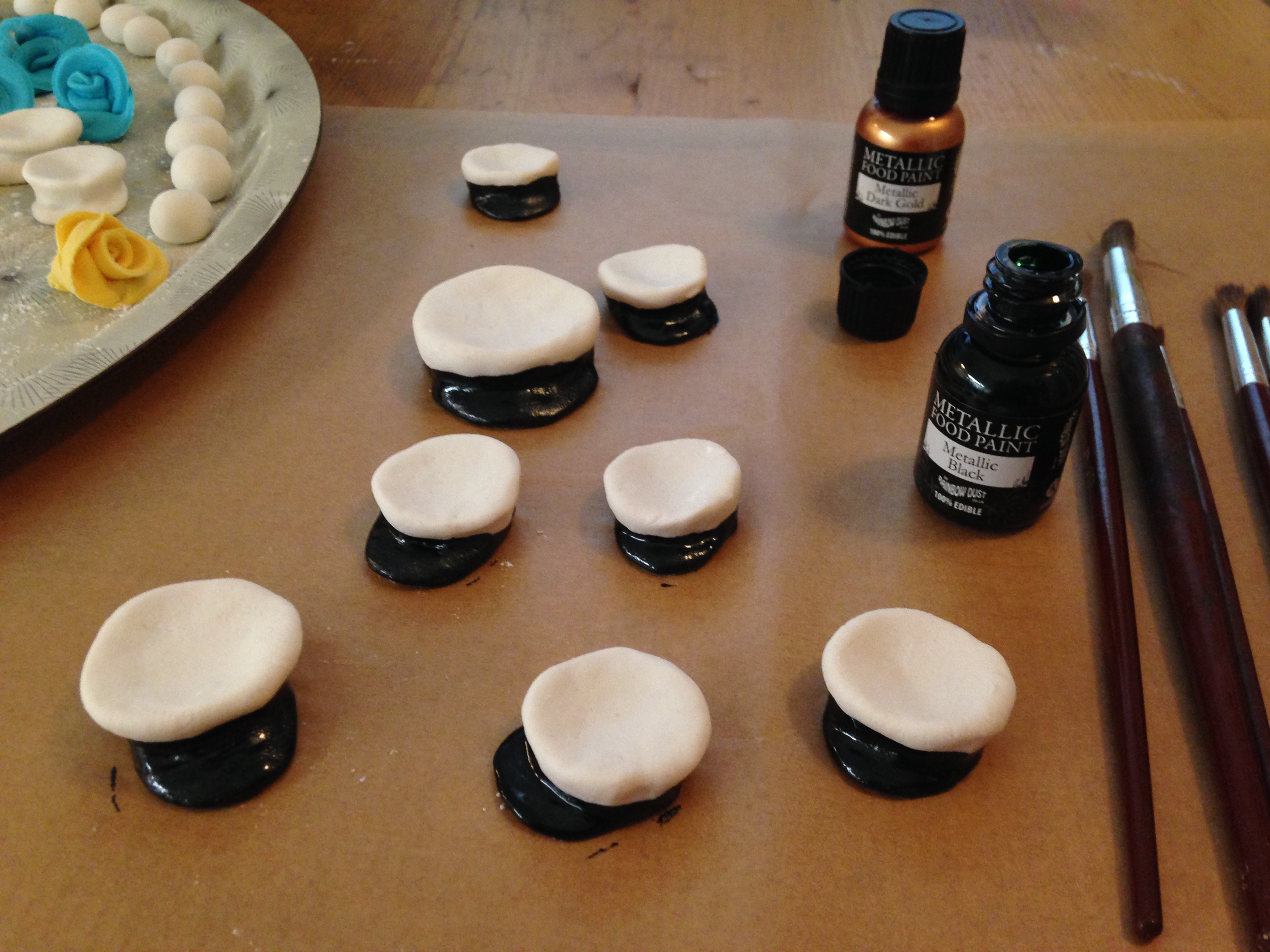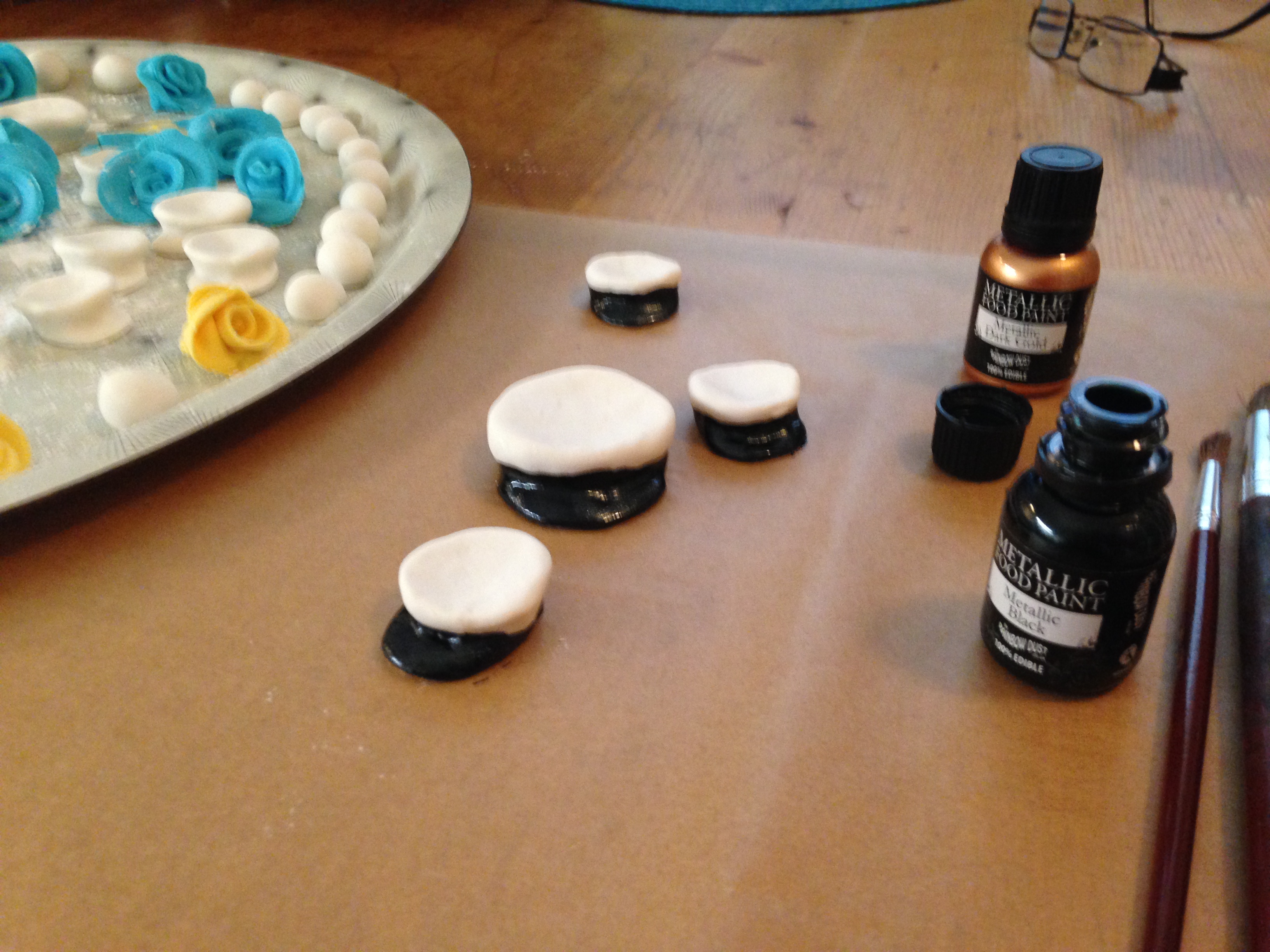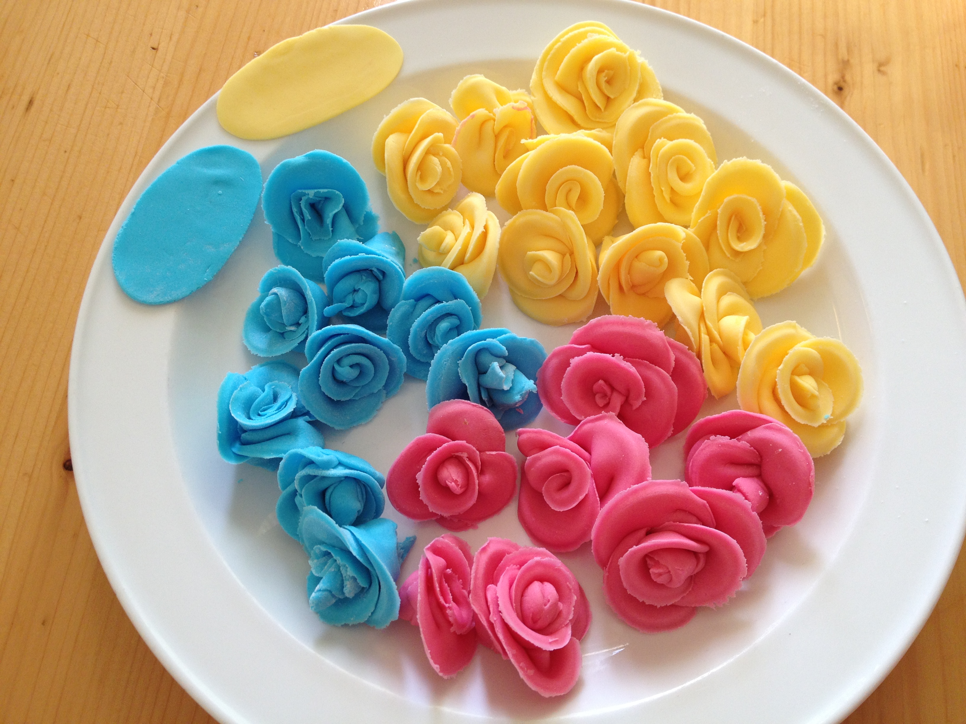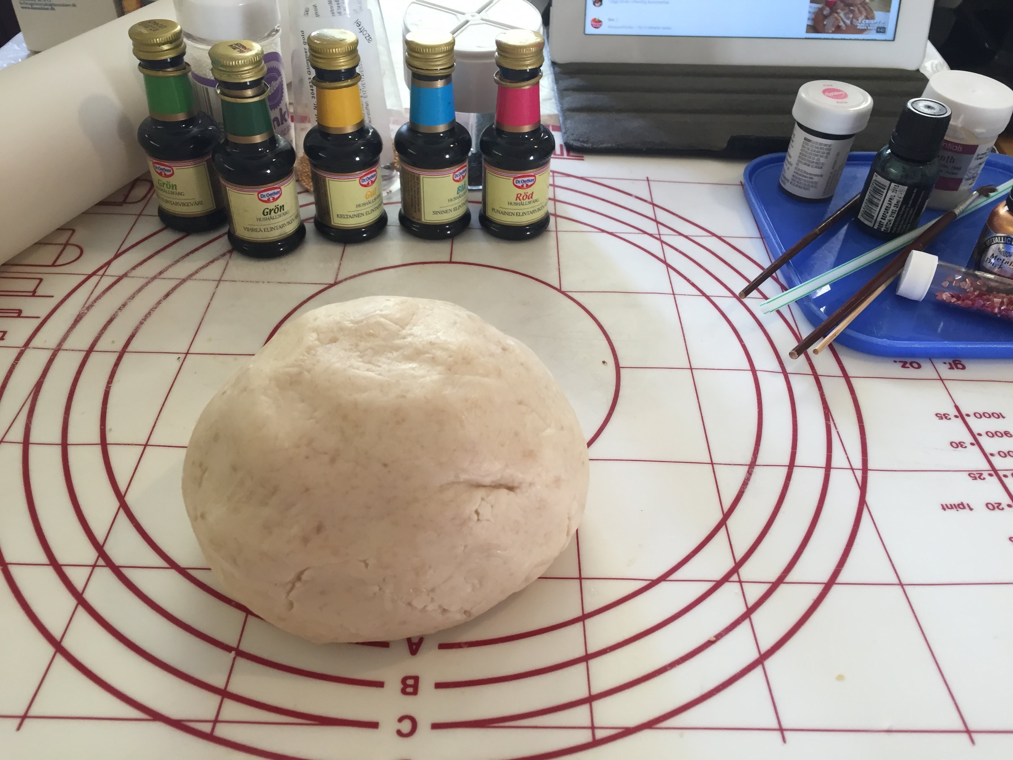 When you have the wished consistency take some small parts and color with food color for the decorations.